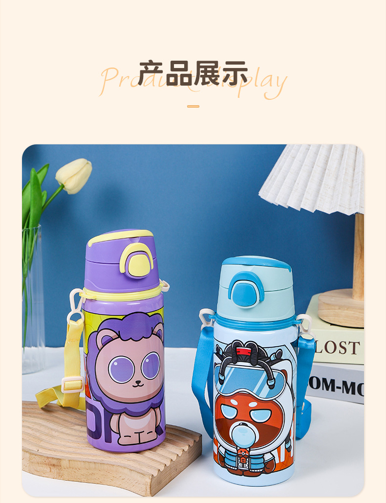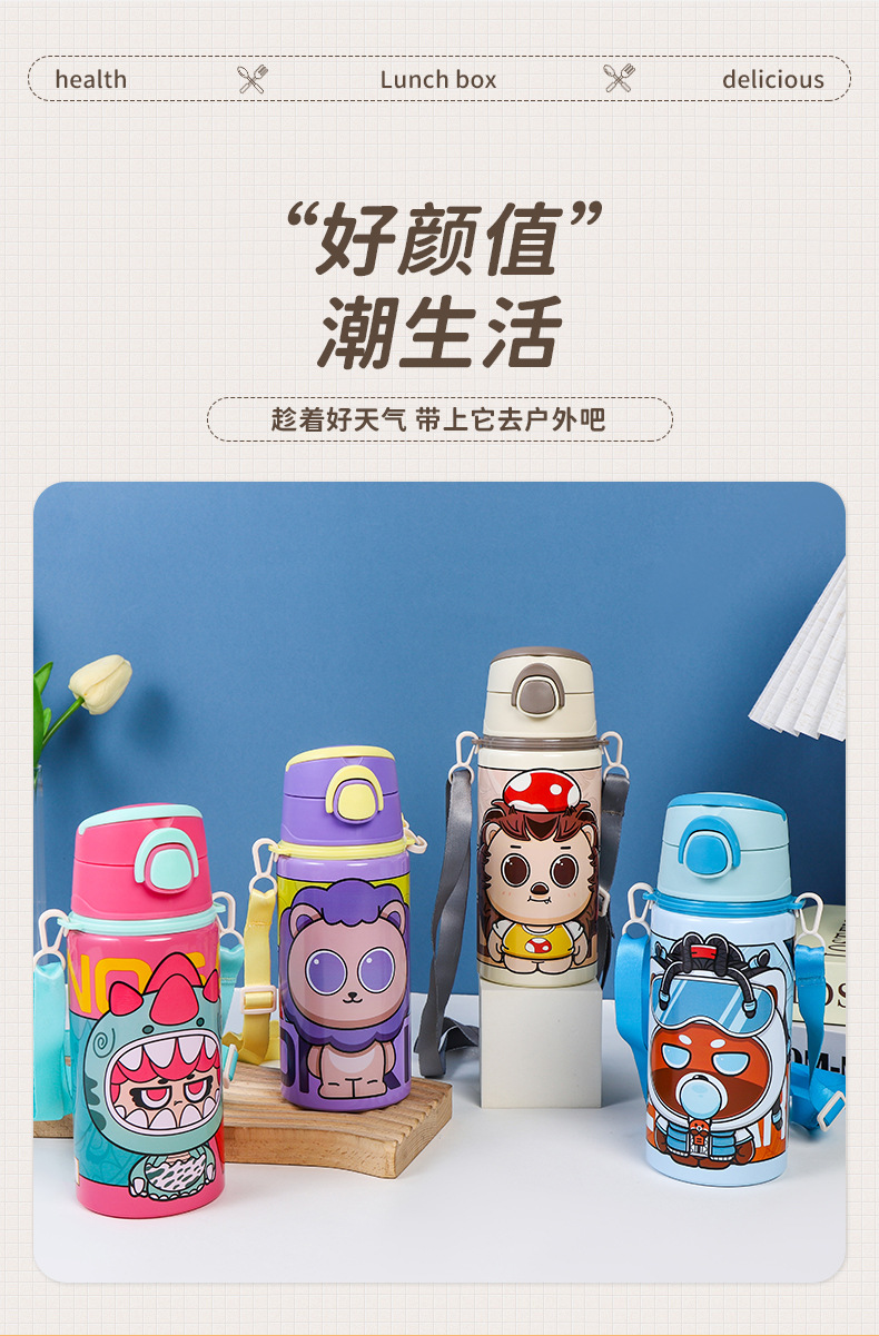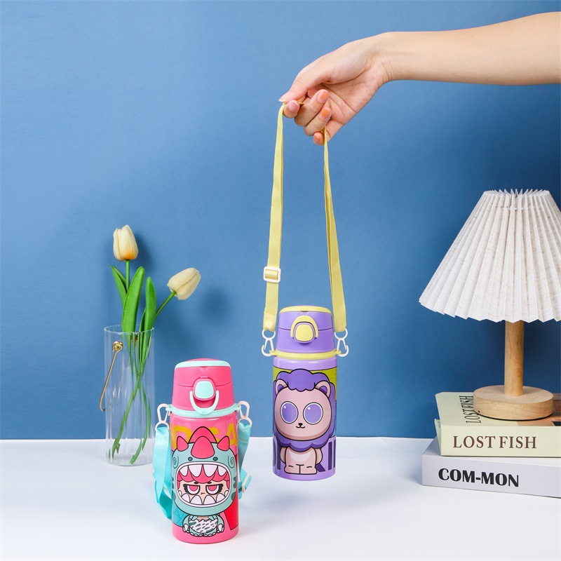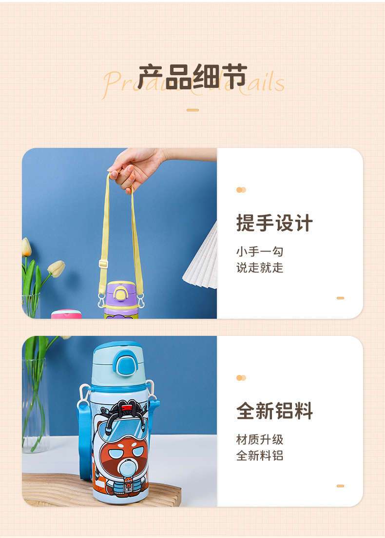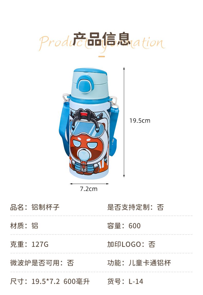 2024跨境新款卡通可爱铝制水杯厂家直供学生便携带提绳大容量水杯