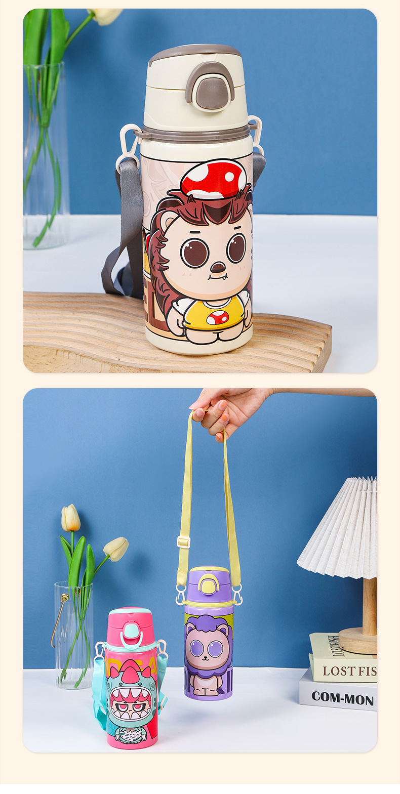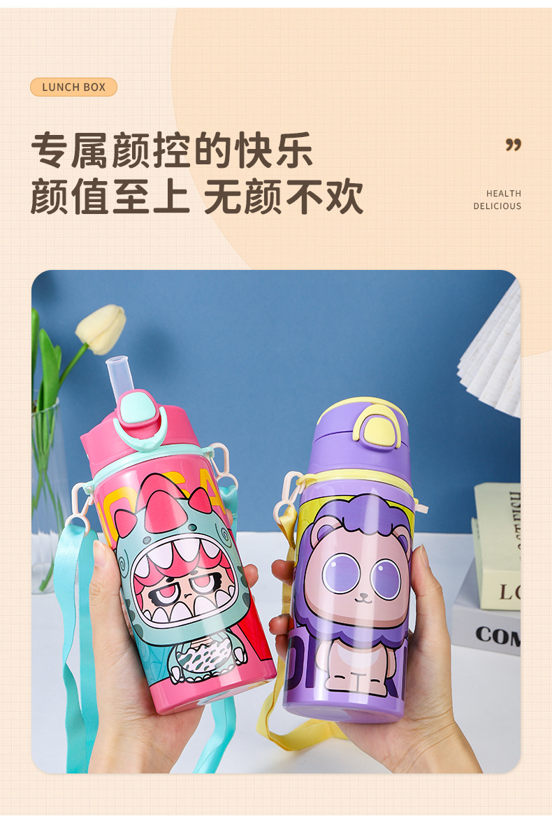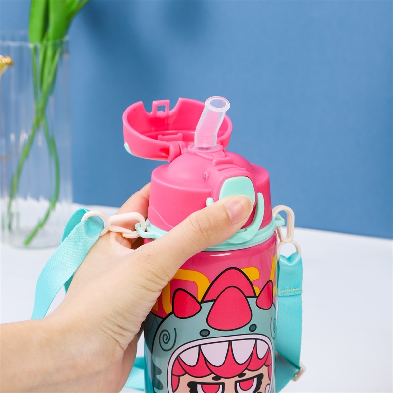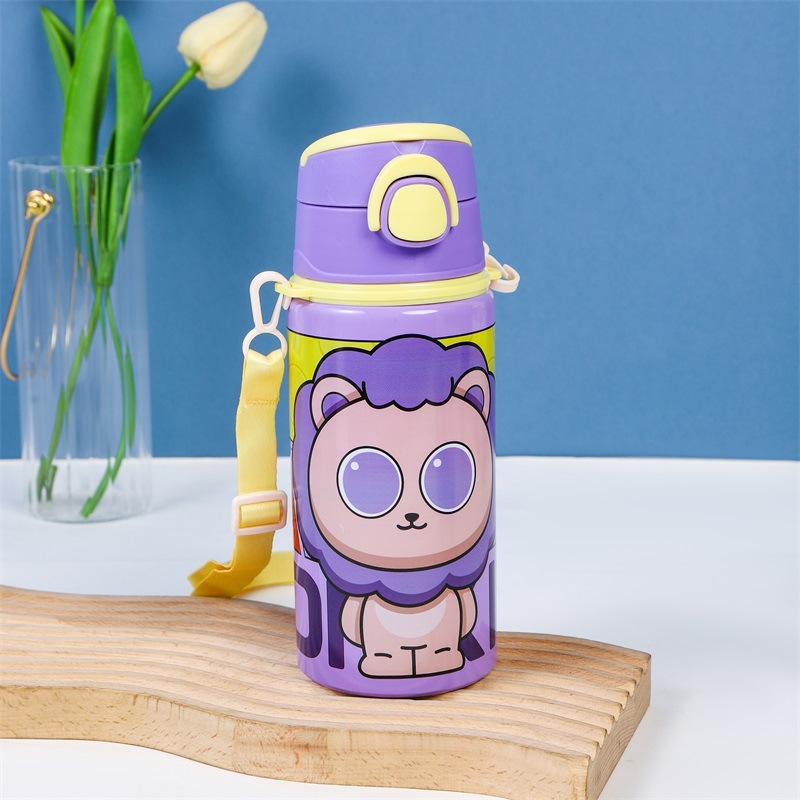 2024跨境新款卡通可爱铝制水杯厂家直供学生便携带提绳大容量水杯