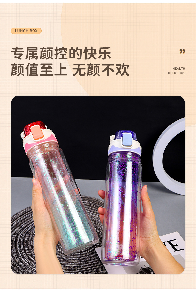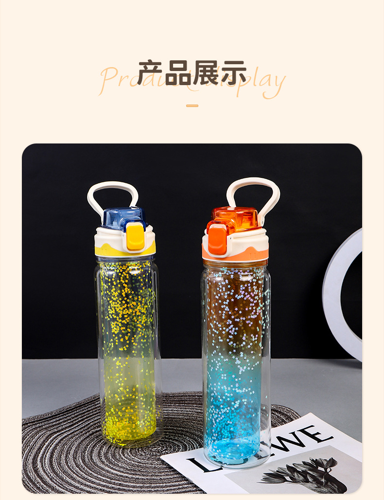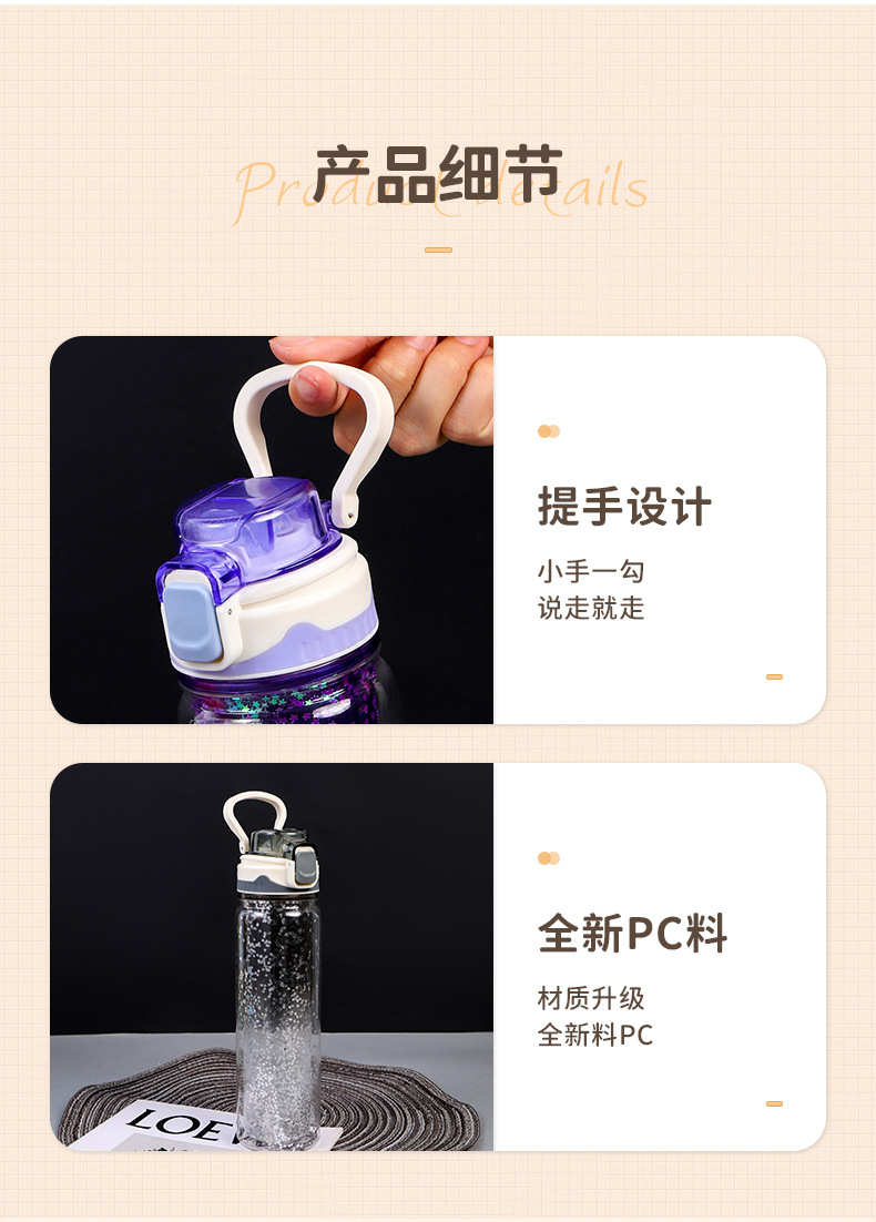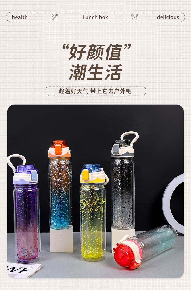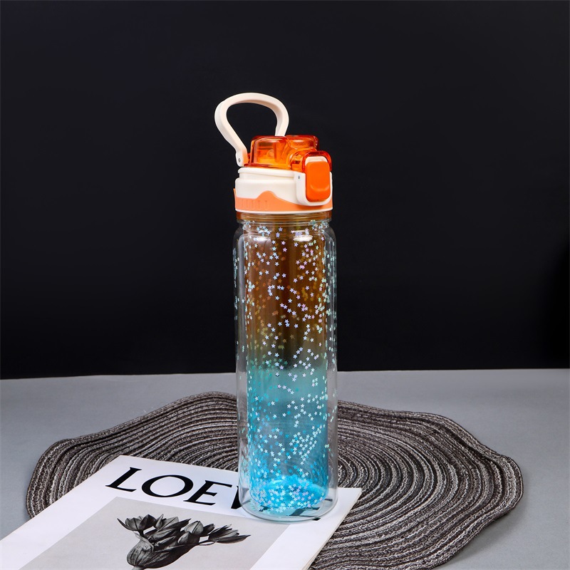 2024新款简约渐变色大容量水杯户外运动便携带环耐高温塑料水杯