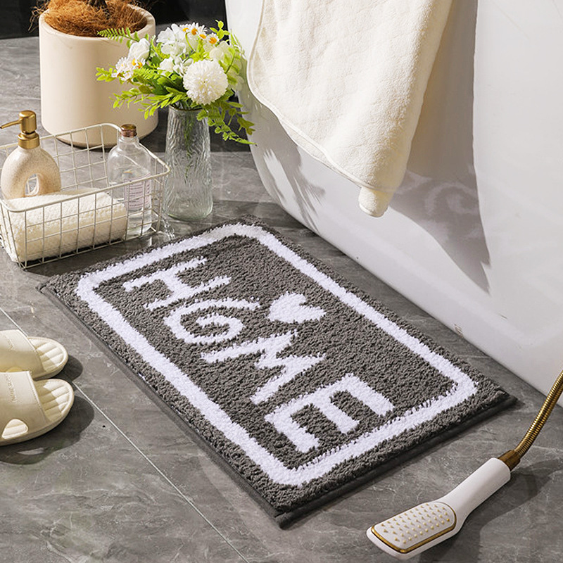 简约英文提花字母吸水地垫门垫家用植绒脚垫卫生间吸水防滑浴室垫