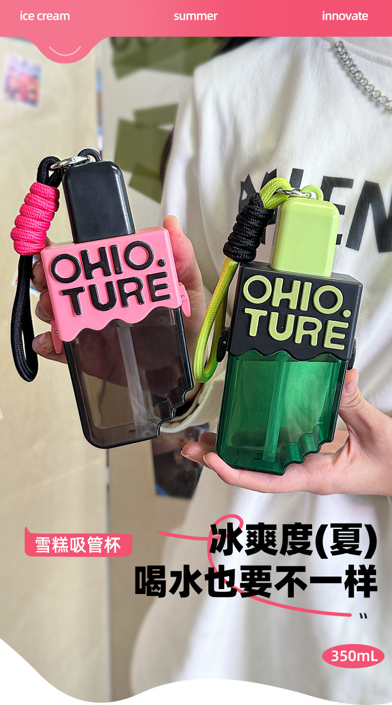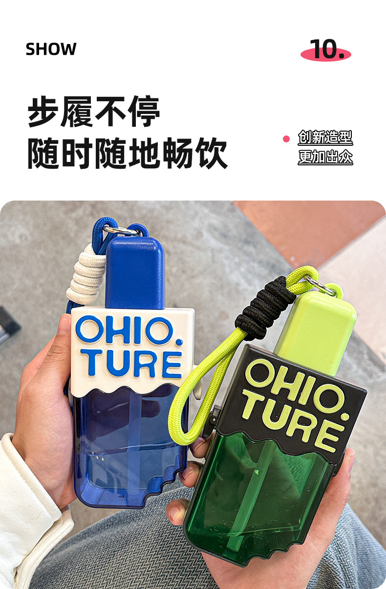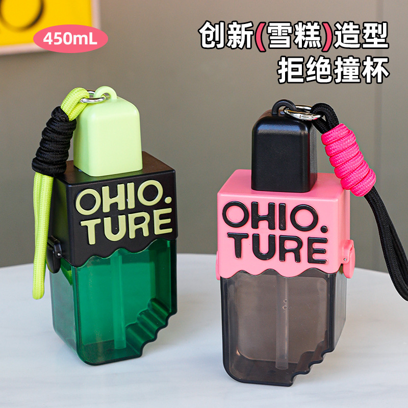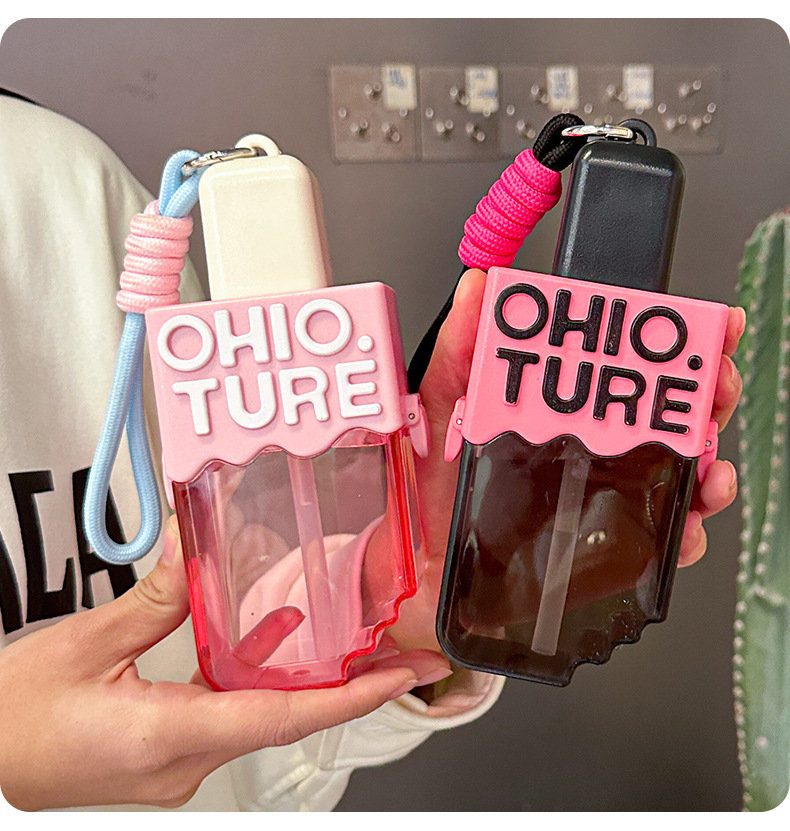 厂家直发新款多巴胺棒冰杯塑料杯提绳男女生大容量便携水杯雪糕杯