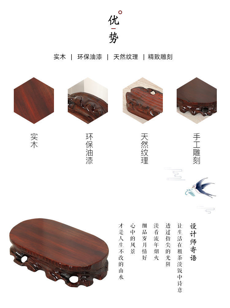 实木底座摆件长方可挖槽茶壶花瓶盆景工艺品玉石头文玩源头厂家