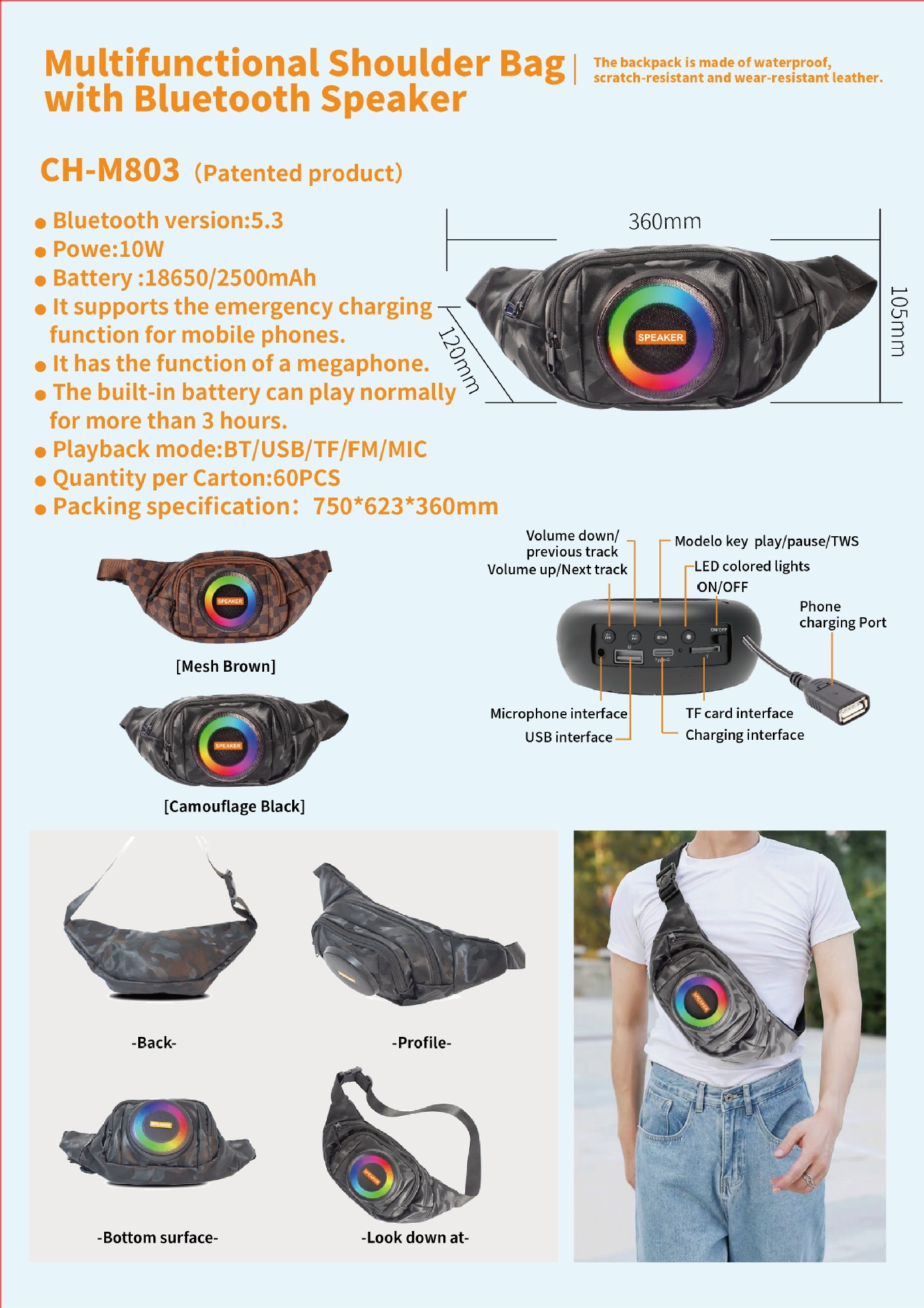 CH-803 户外便携式腰包音箱包蓝牙扩音器专用多场景无线蓝牙音箱