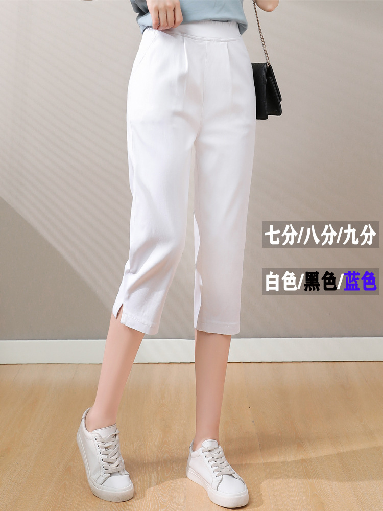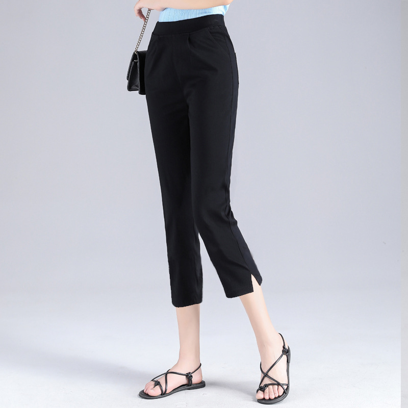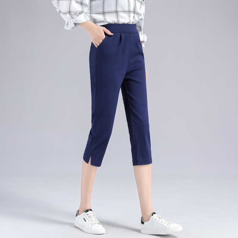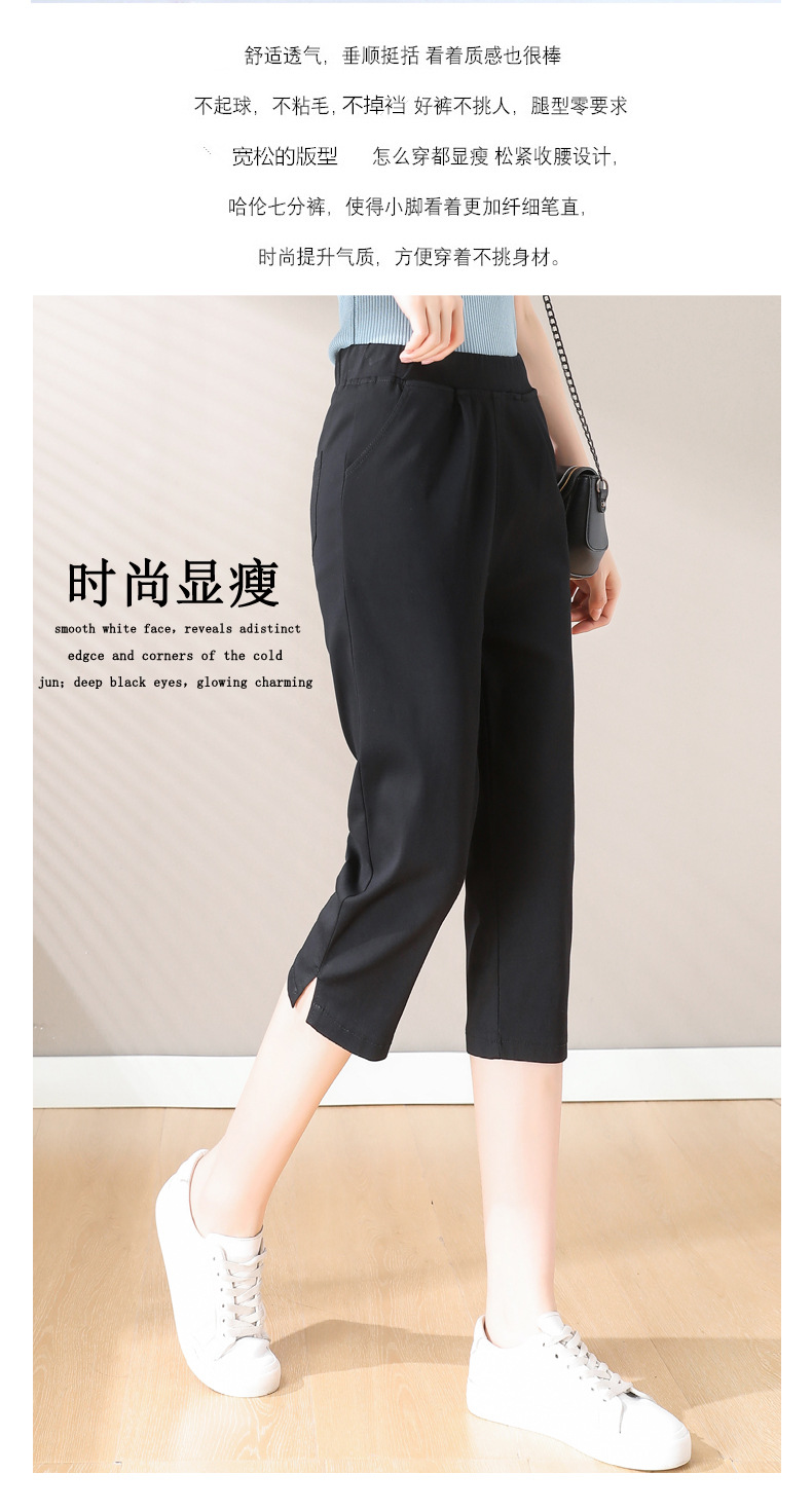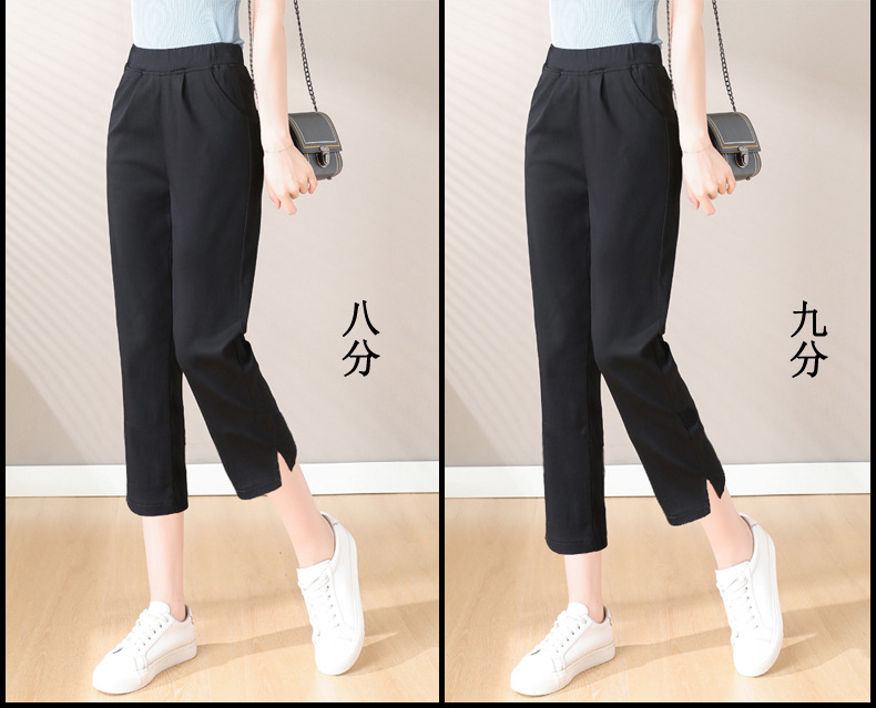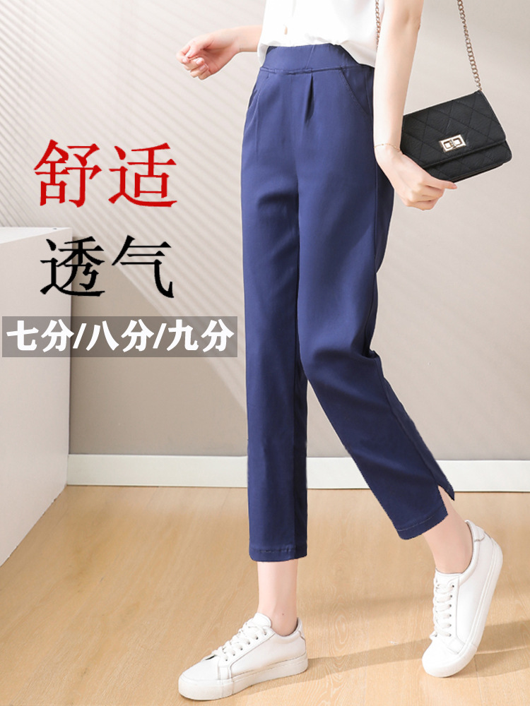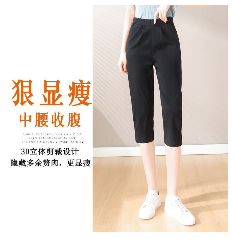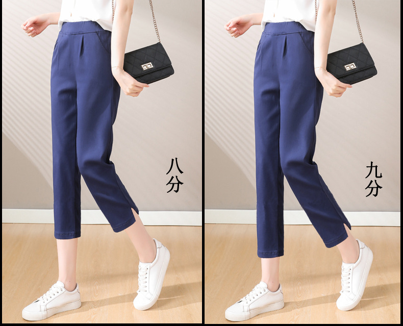 松紧腰弹力八分七分九分裤女夏季薄款宽松哈伦大码洗水棉休闲裤子