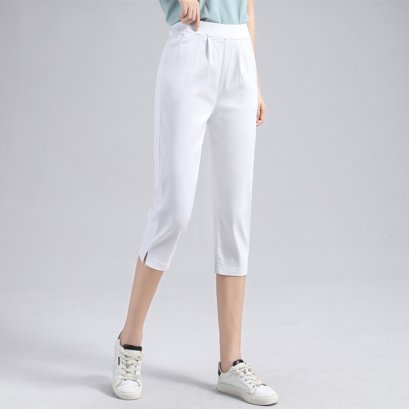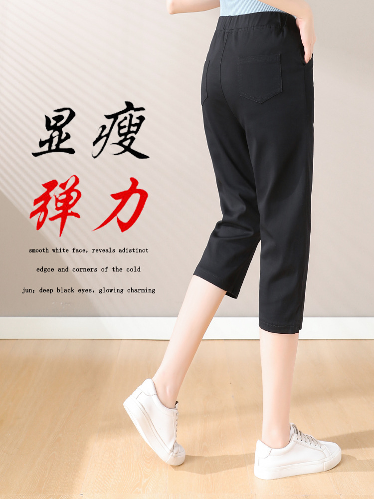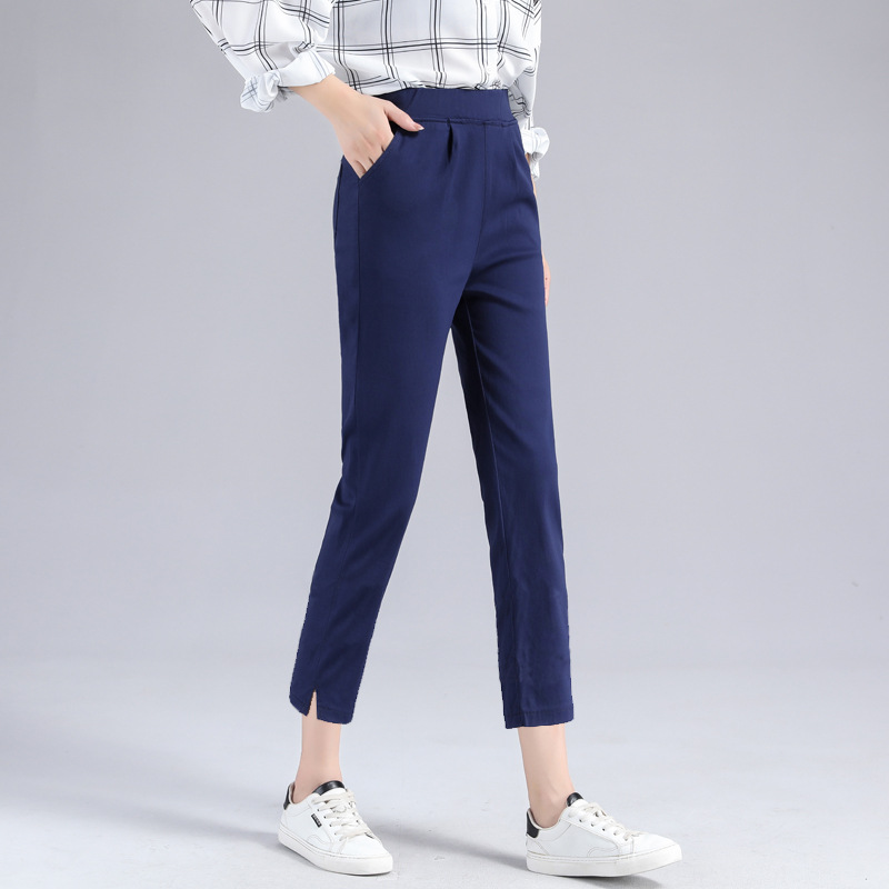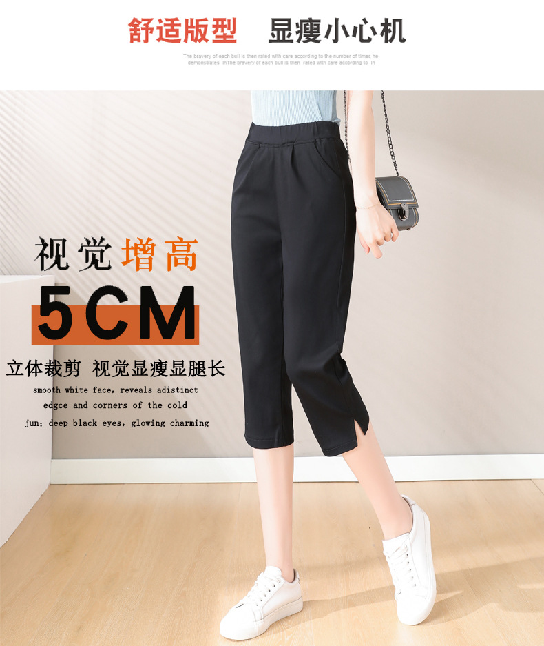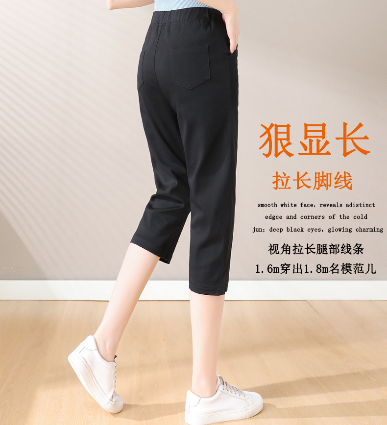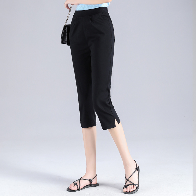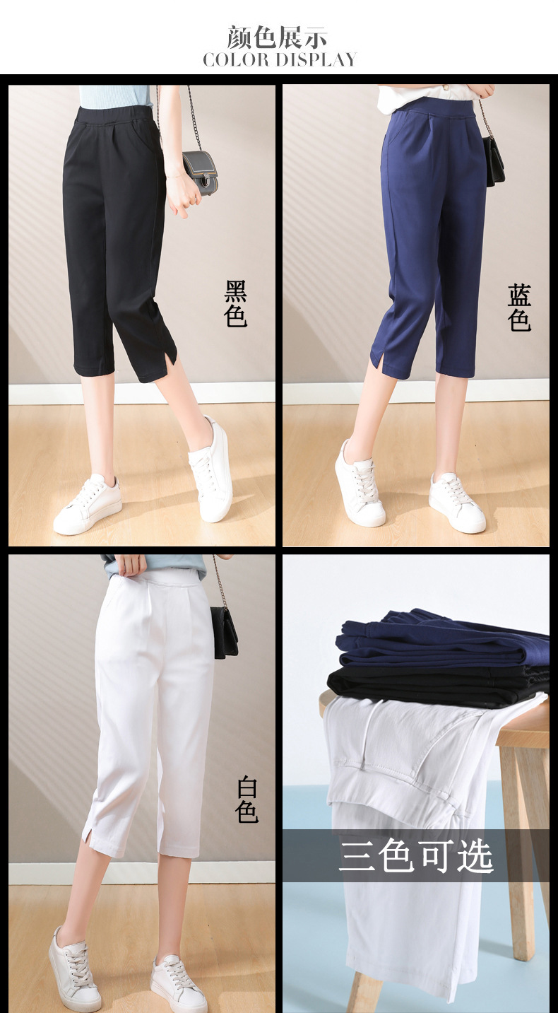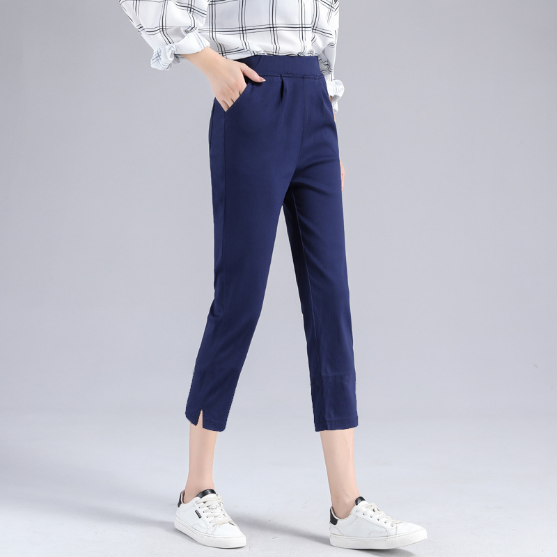 松紧腰弹力八分七分九分裤女夏季薄款宽松哈伦大码洗水棉休闲裤子