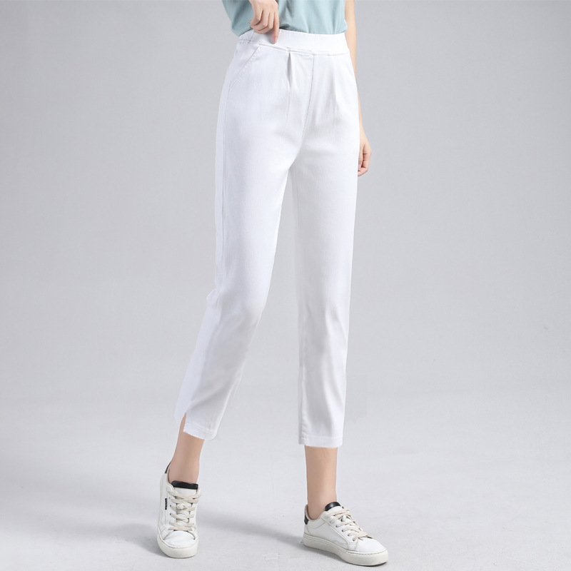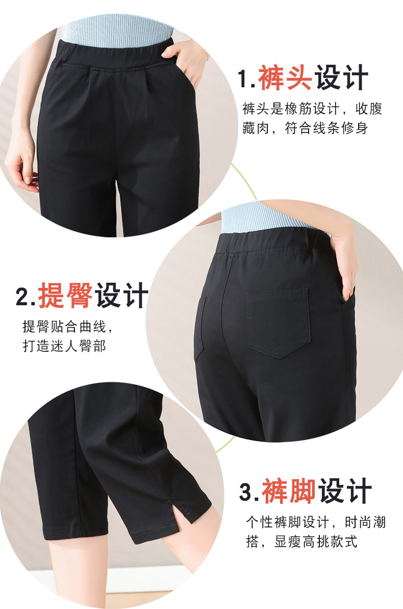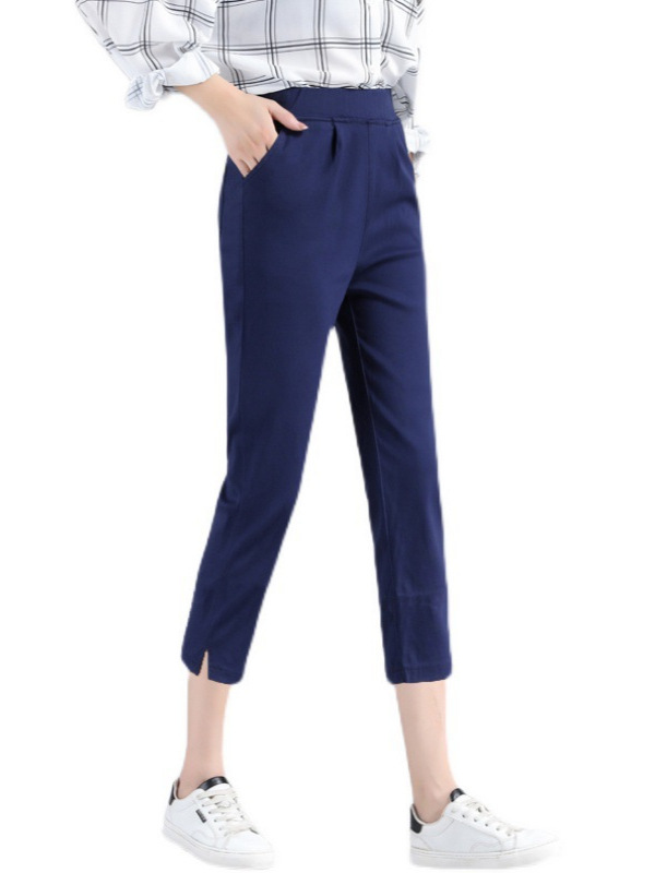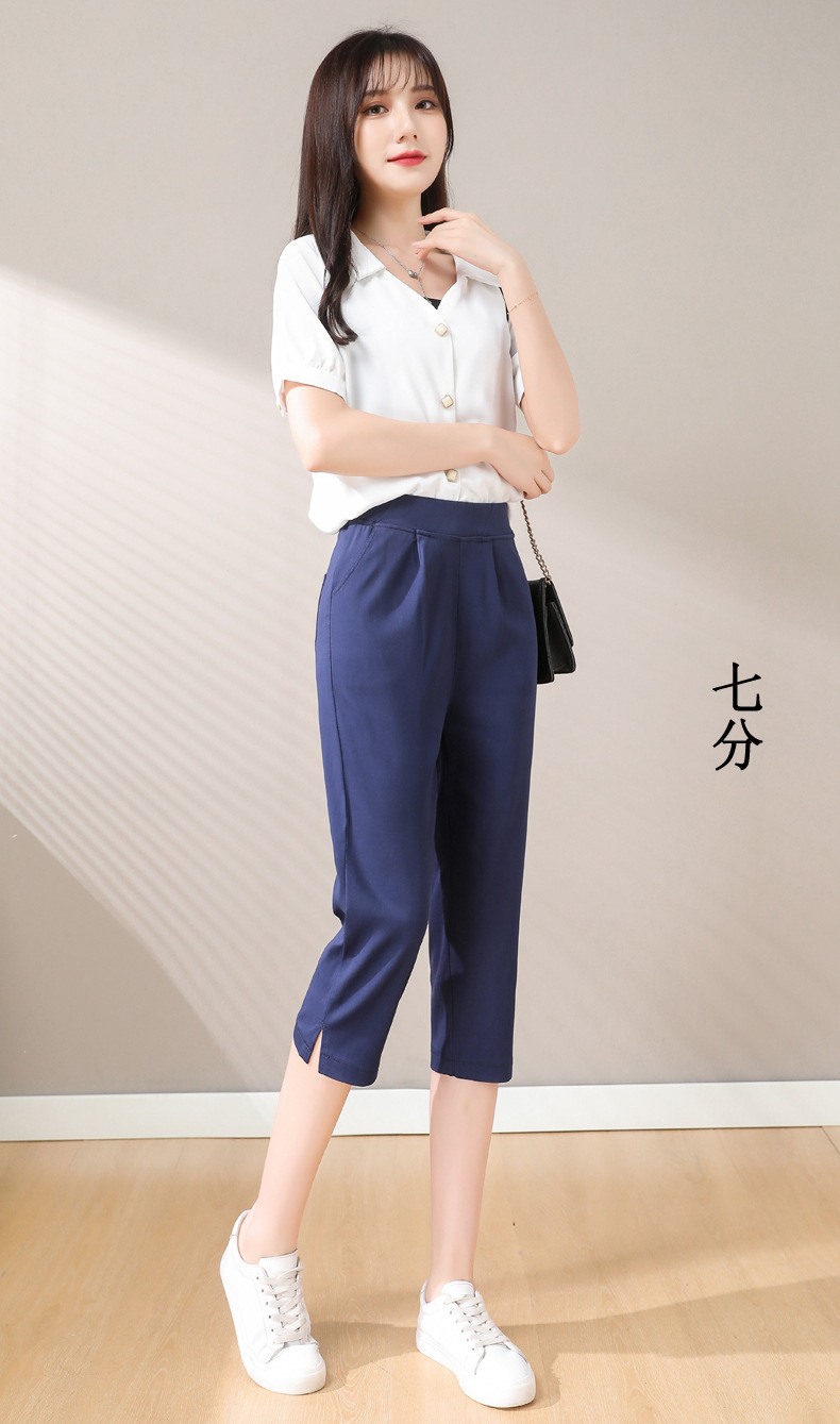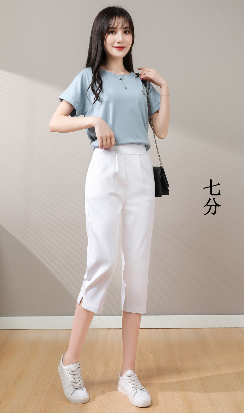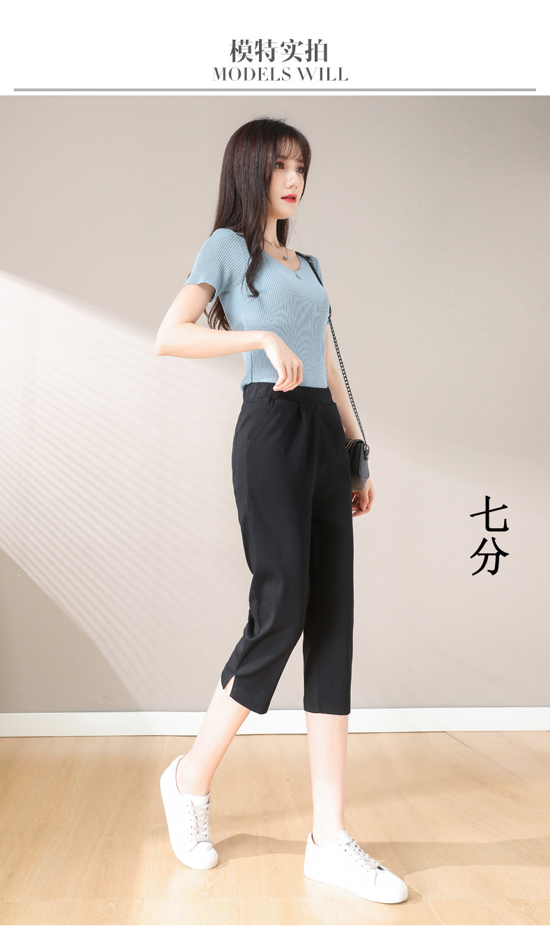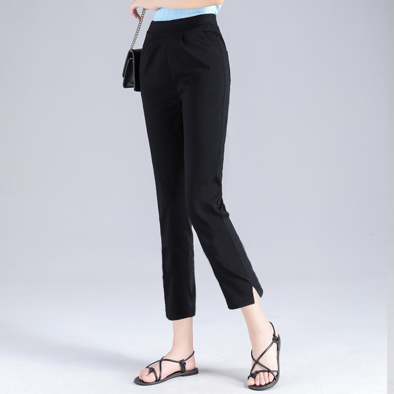 松紧腰弹力八分七分九分裤女夏季薄款宽松哈伦大码洗水棉休闲裤子