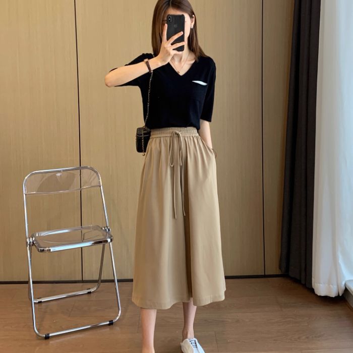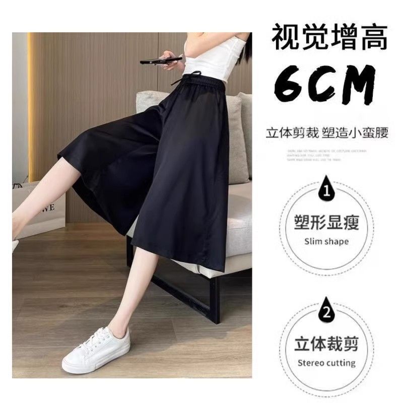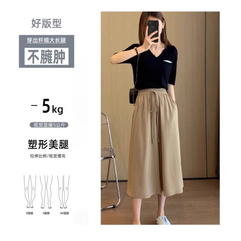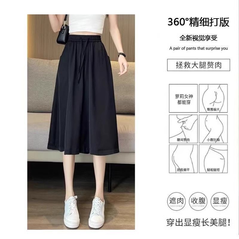 冰丝七分裤女夏季薄款2024新款小个子大码胖mm阔腿裤休闲a字裤裙