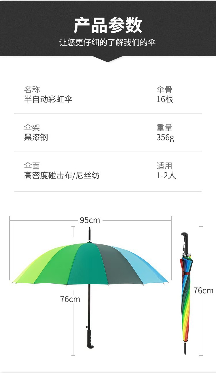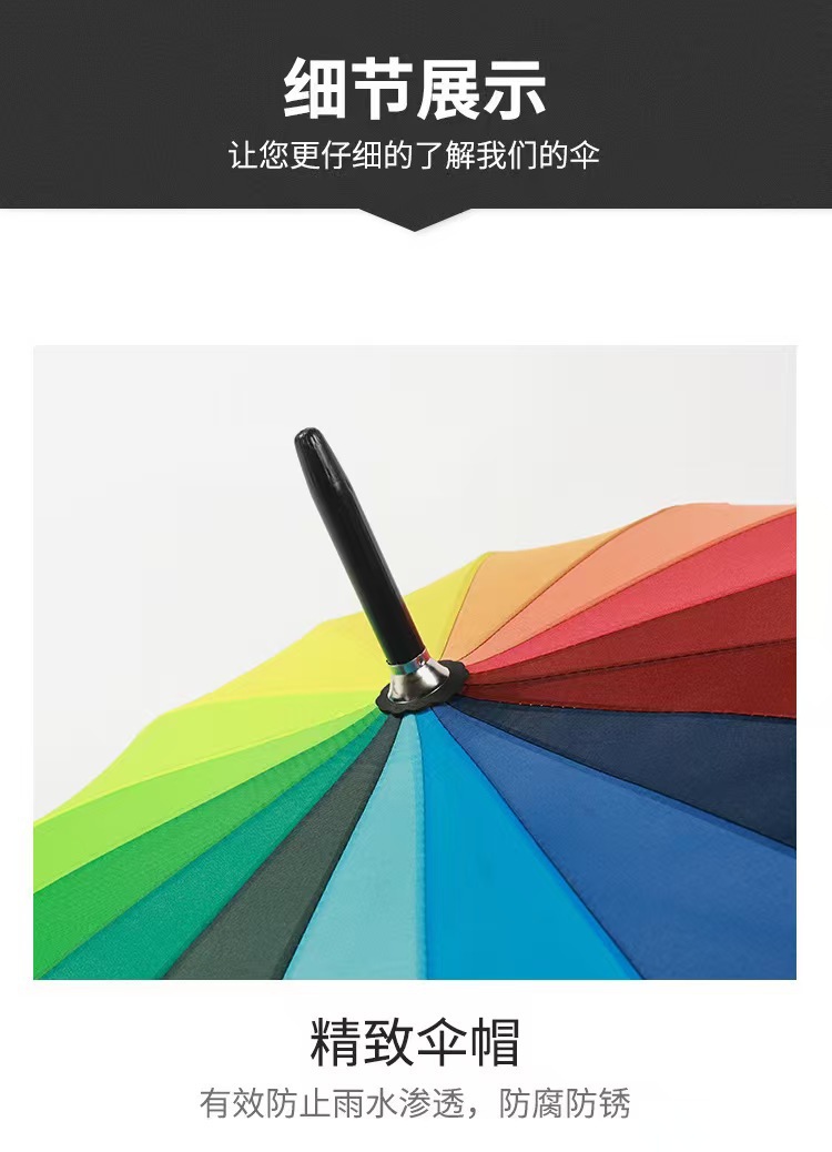 冰价16骨直杆彩虹伞长柄雨伞自动伞珠宝黄金保险广告礼品雨伞