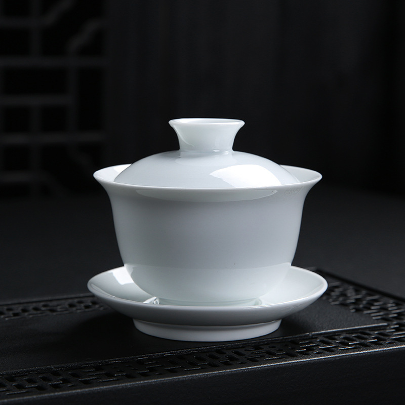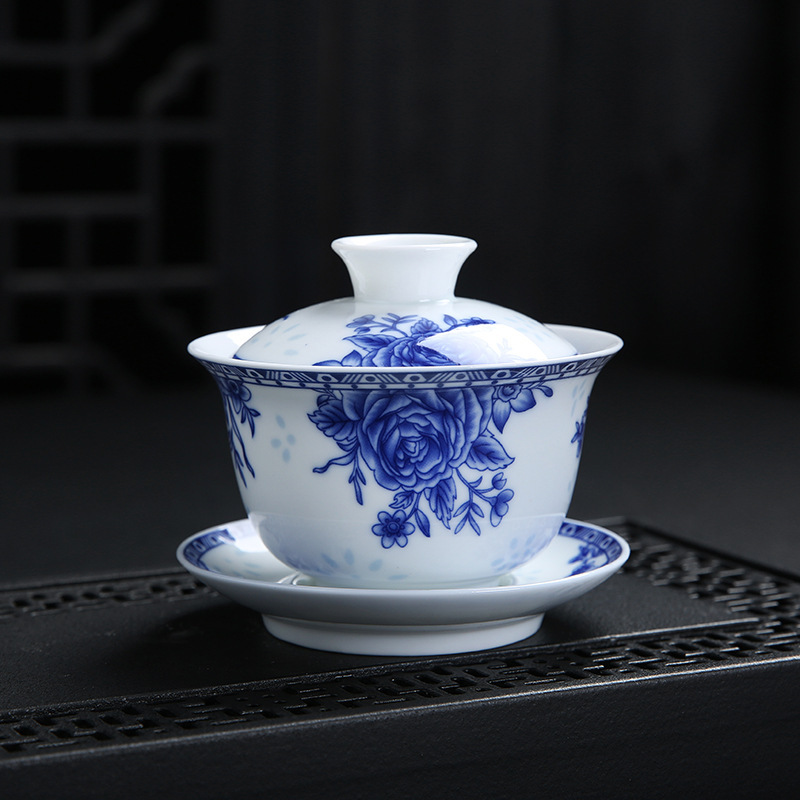 釉中彩盖碗大号高白青花瓷三才碗日式泡茶碗茶杯厂家批发可印logo