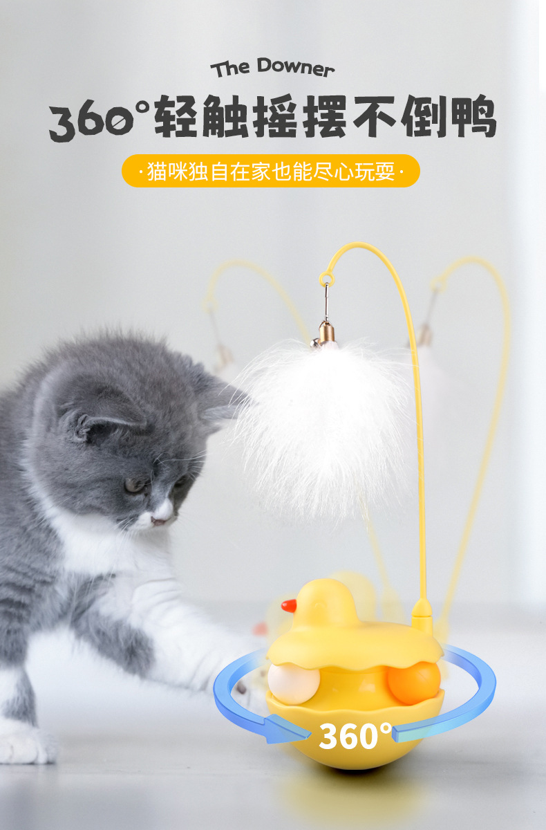 新款不倒翁猫咪逗猫棒猫薄荷羽毛铃铛自动不倒鸭自嗨神器宠物用品