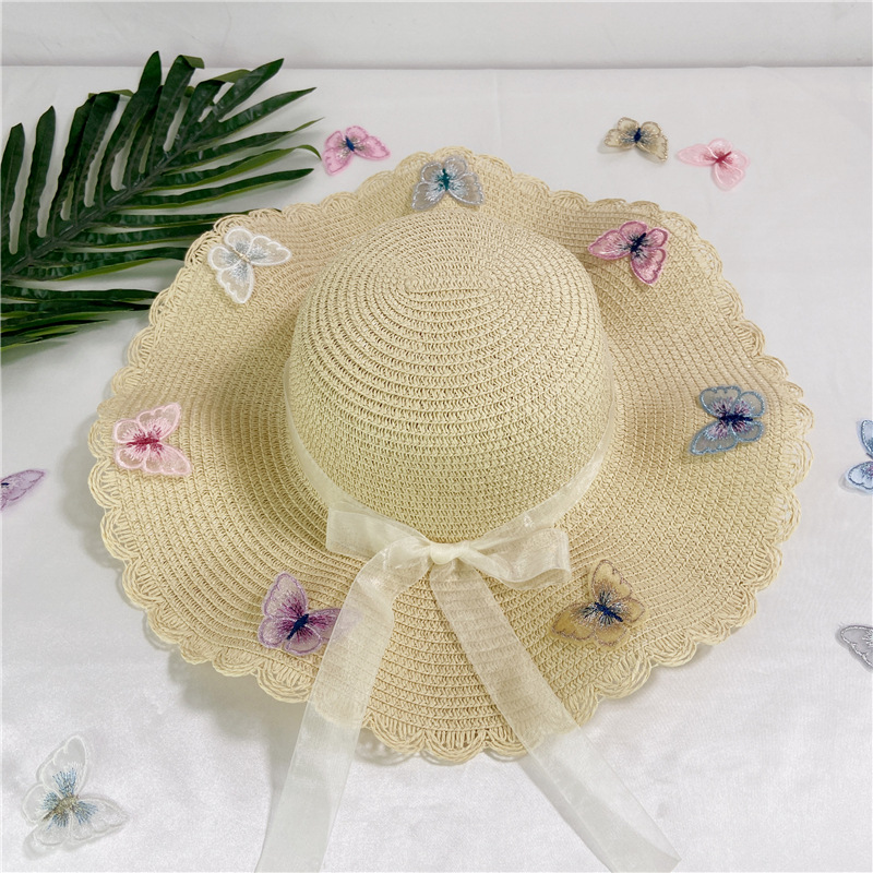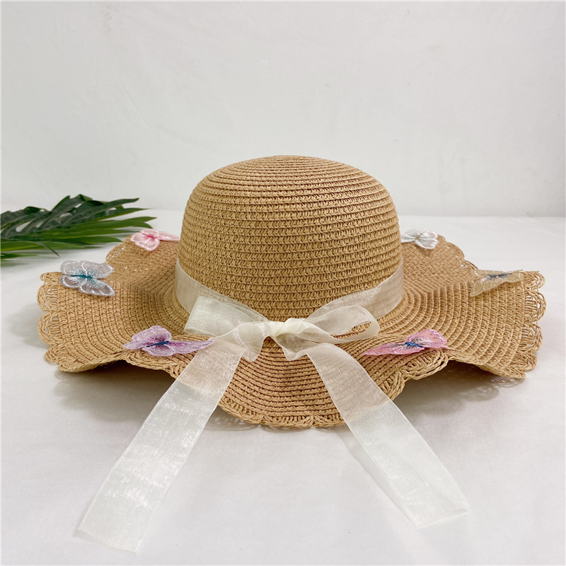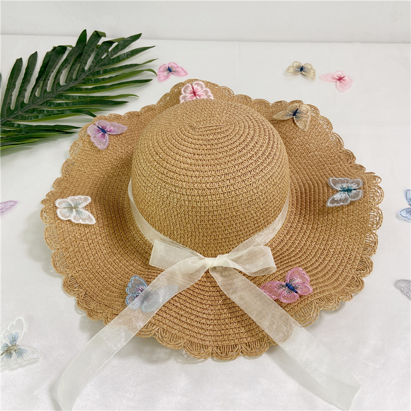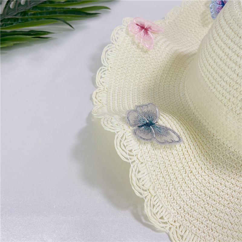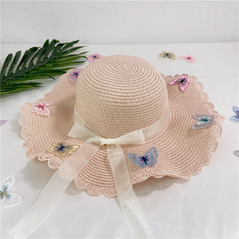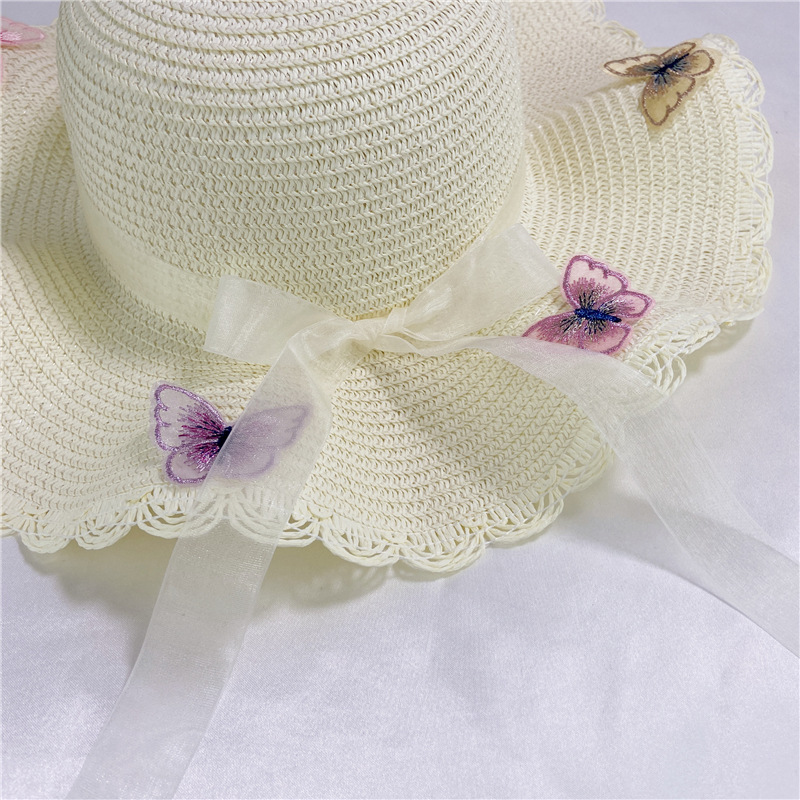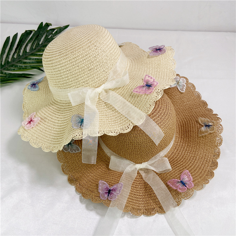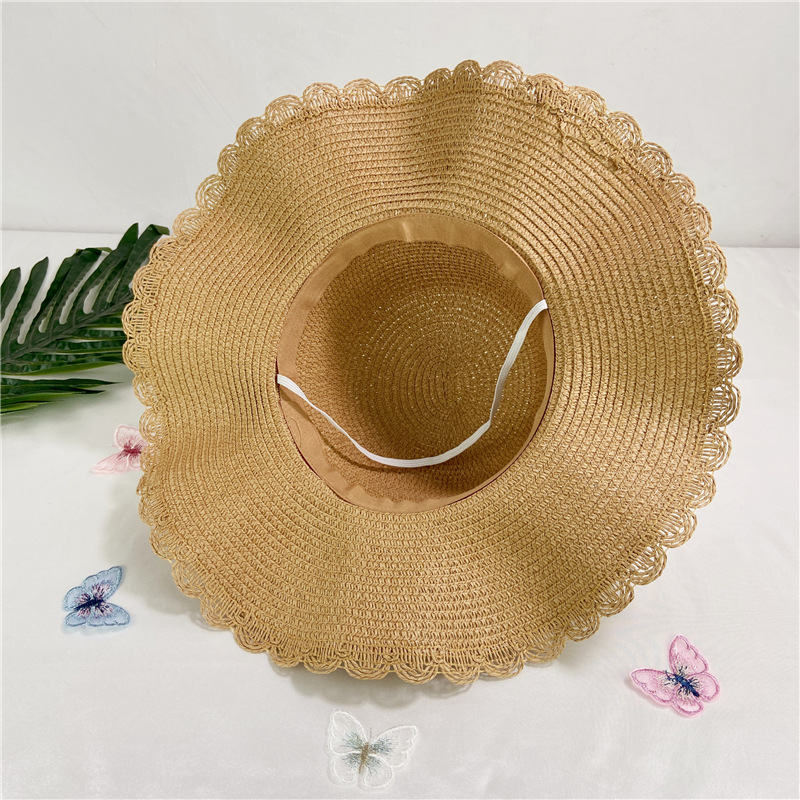 小仙女沙滩帽子蝴蝶女夏天波浪边小清新遮阳草帽出游防晒帽大檐帽