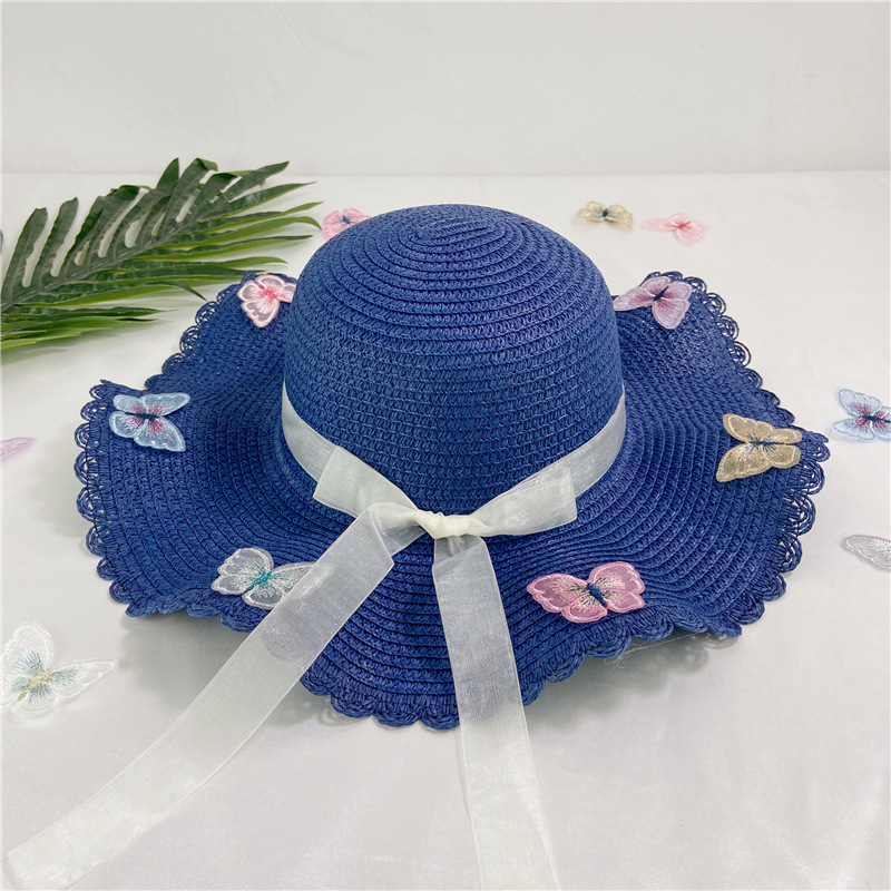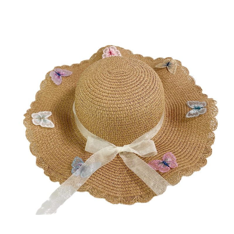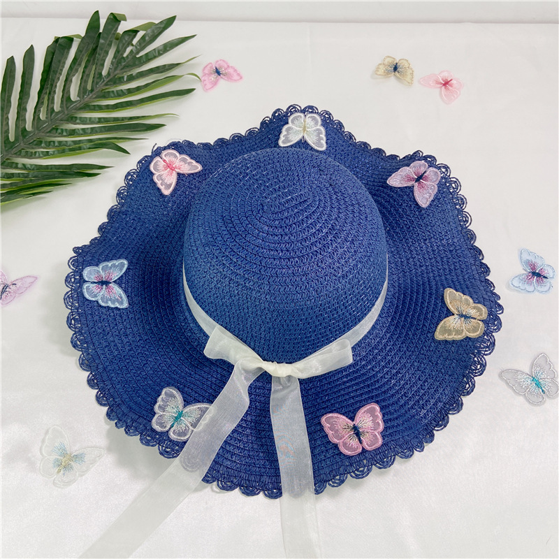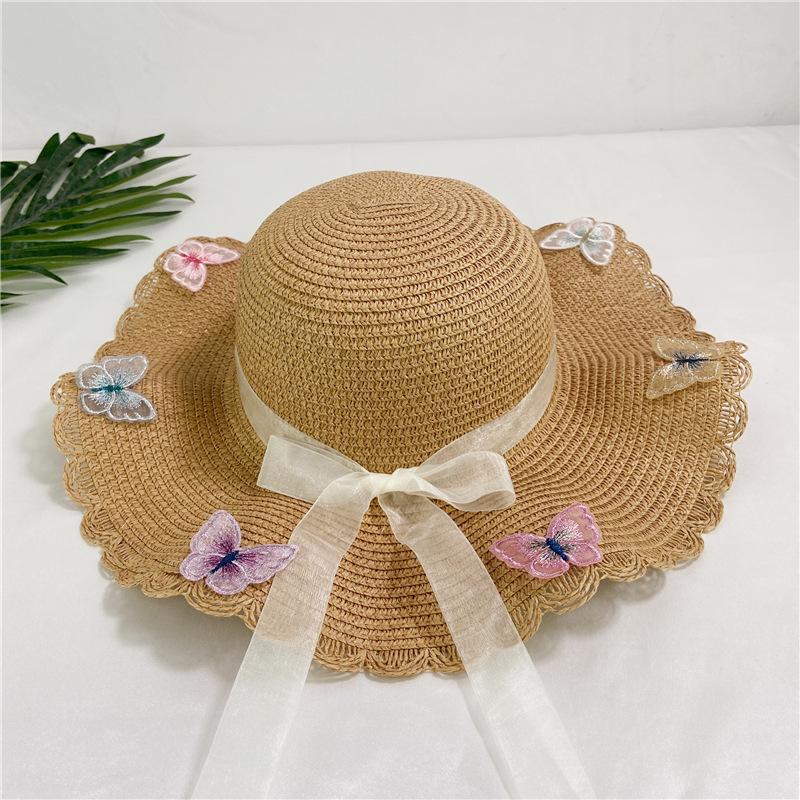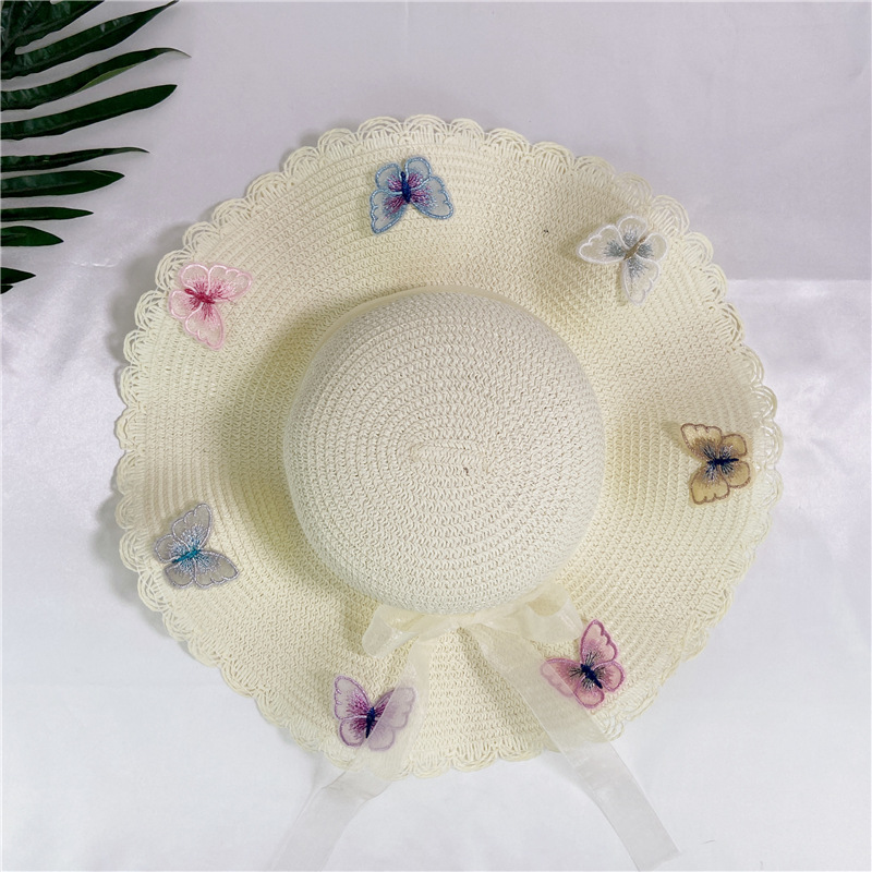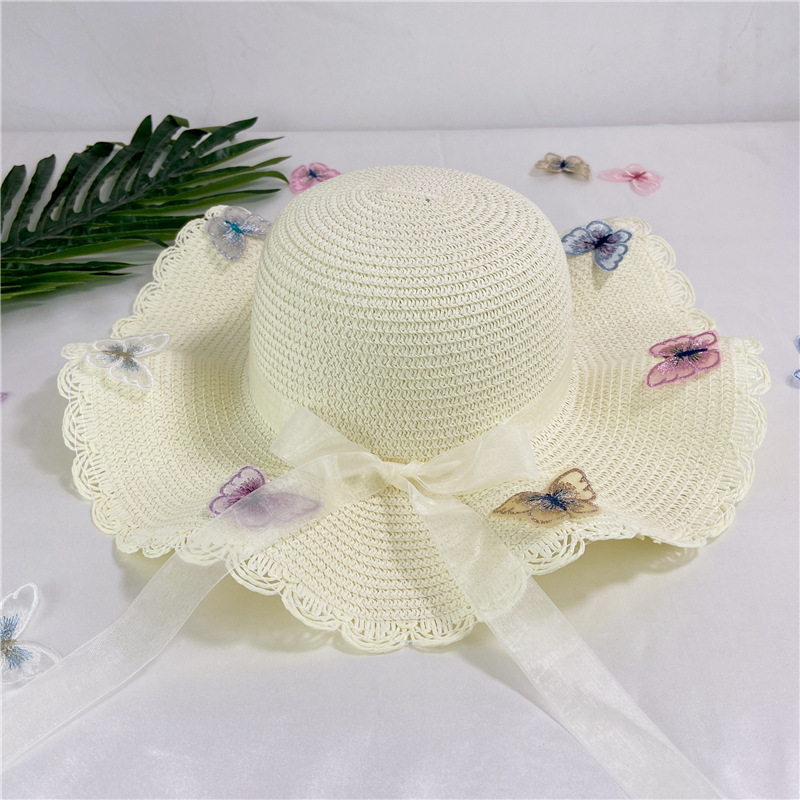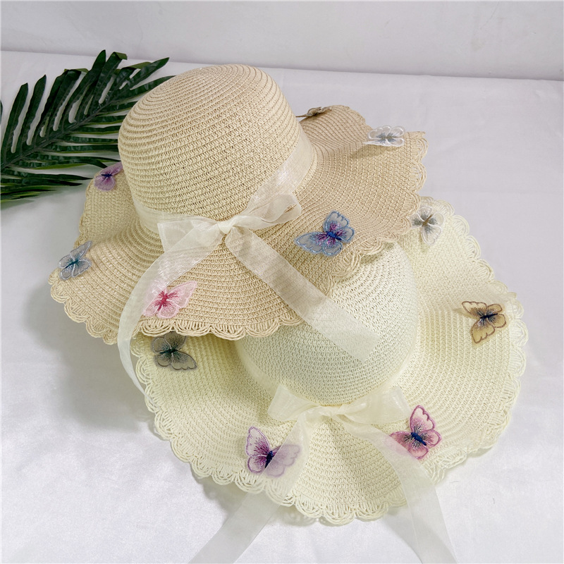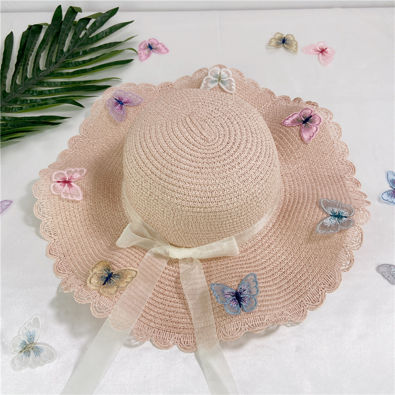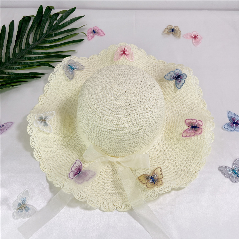 小仙女沙滩帽子蝴蝶女夏天波浪边小清新遮阳草帽出游防晒帽大檐帽