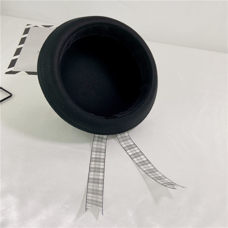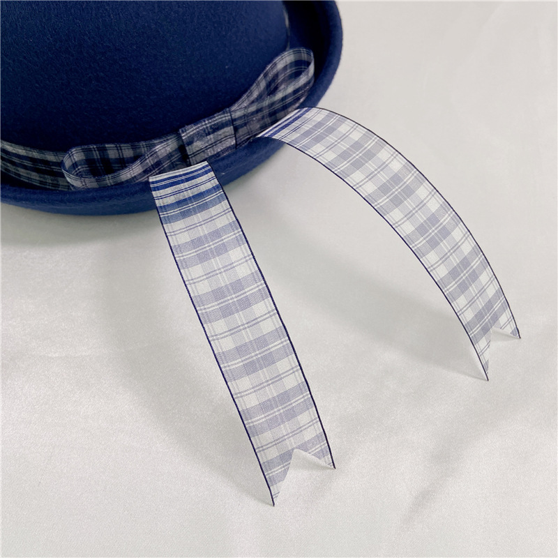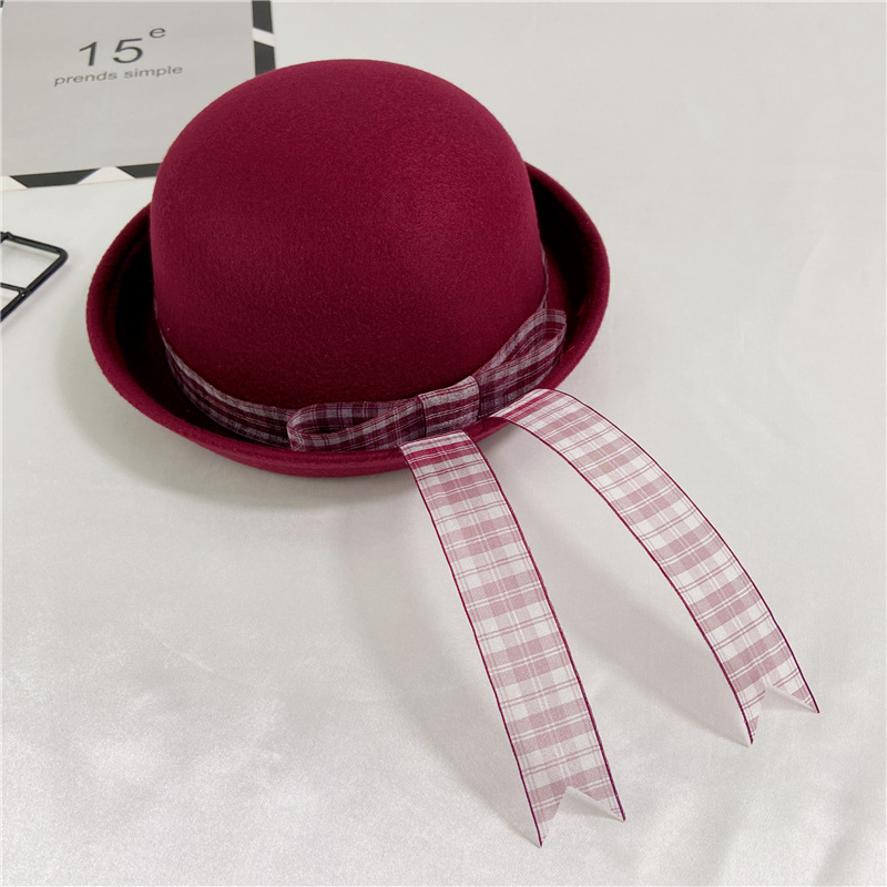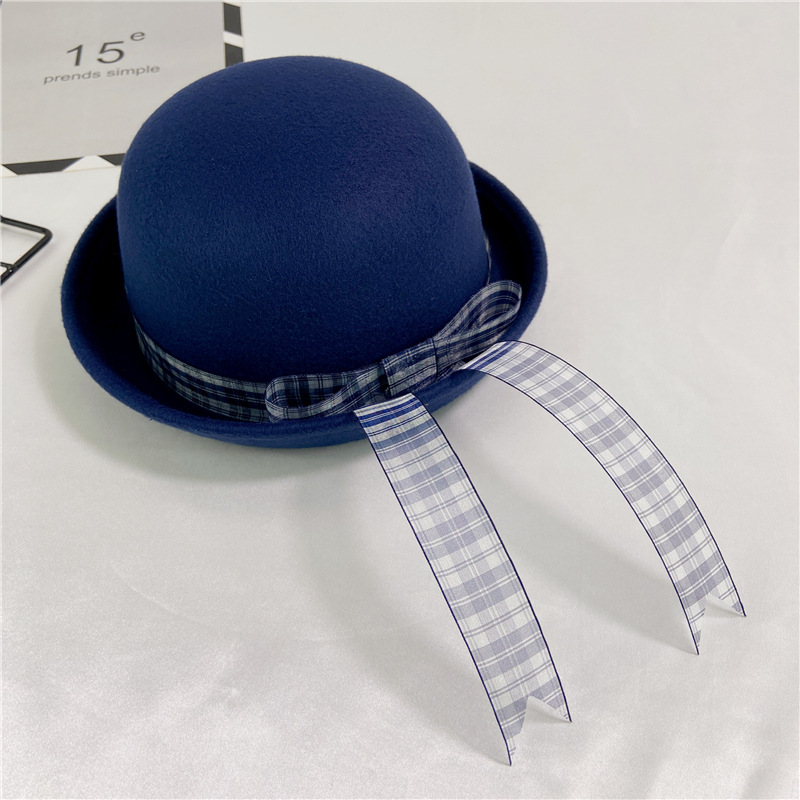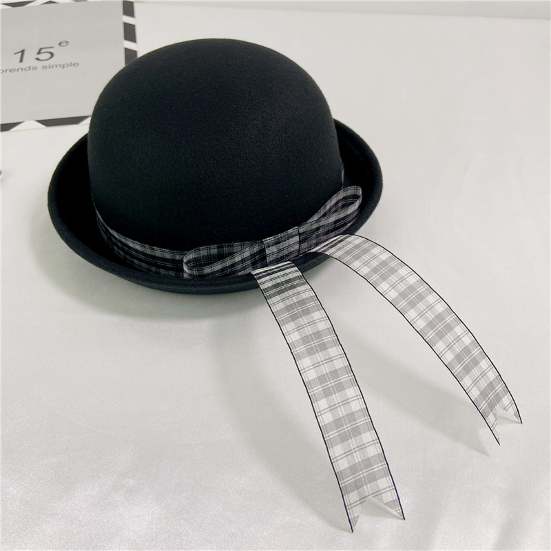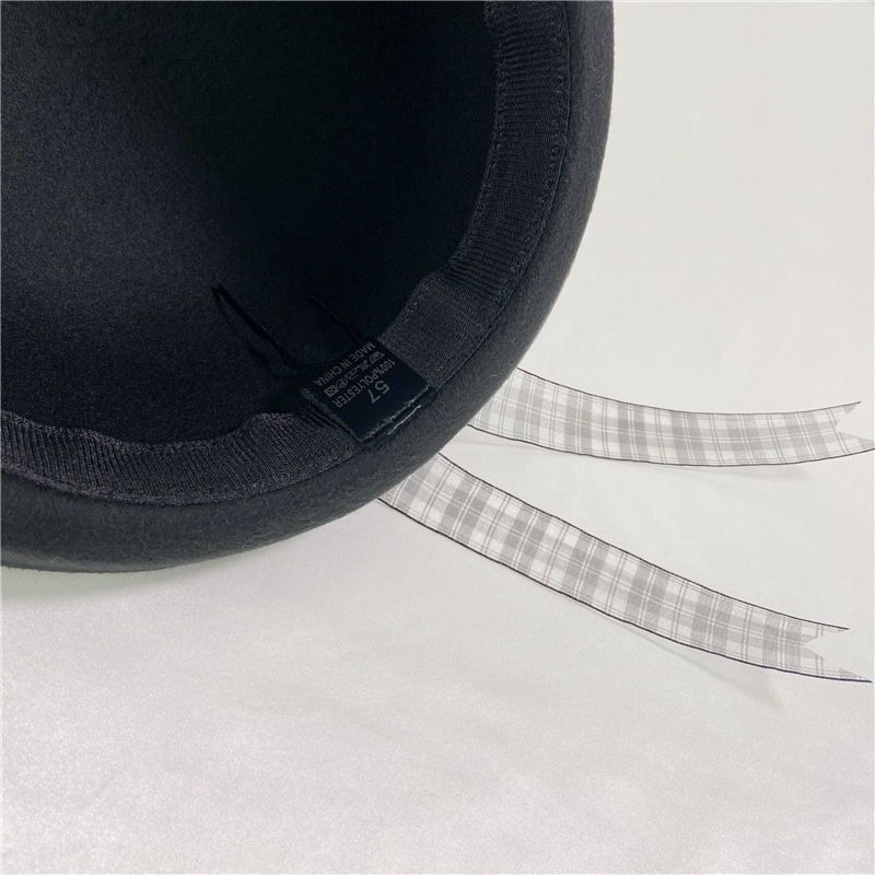 日本校供感手作jkdk制服帽毛呢学院风格子蝴蝶结飘带幼稚园帽子