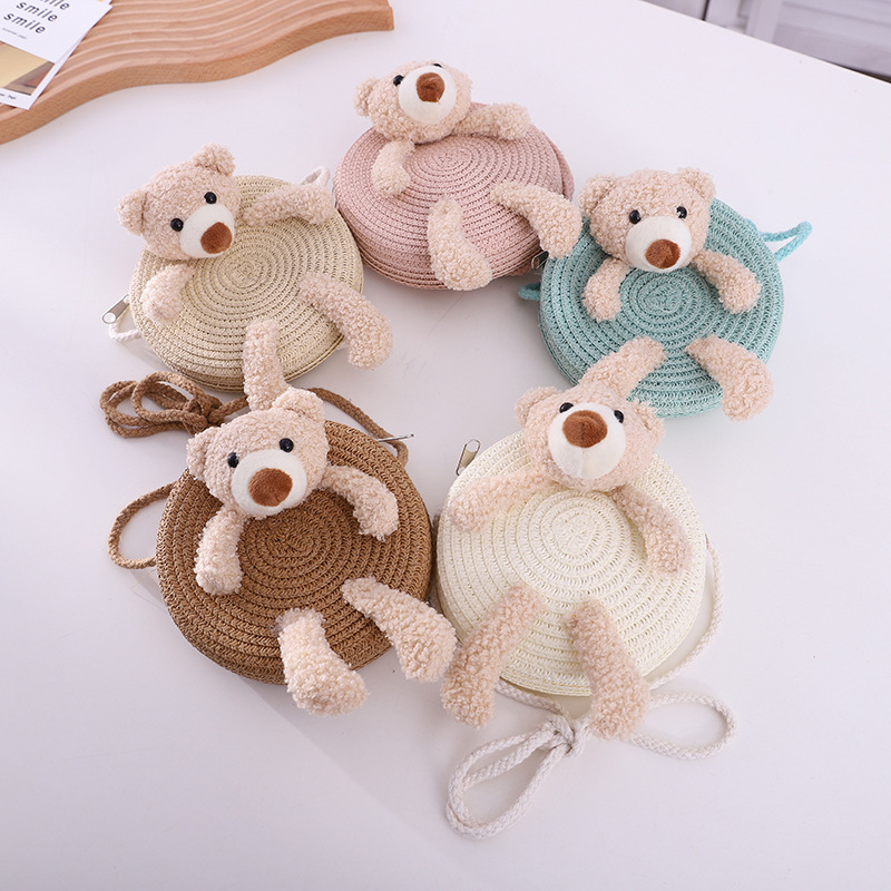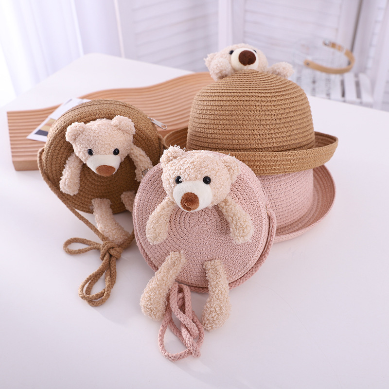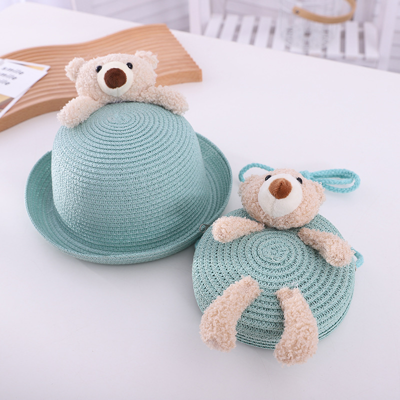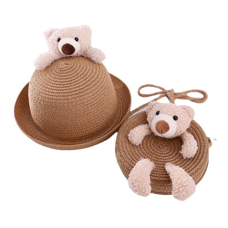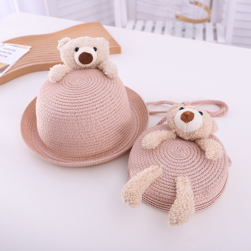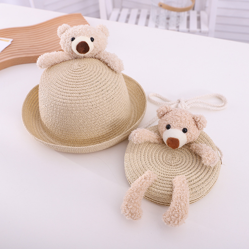 夏季儿童可爱小熊草帽宝宝出游防晒太阳帽韩版女童公主沙滩渔夫帽