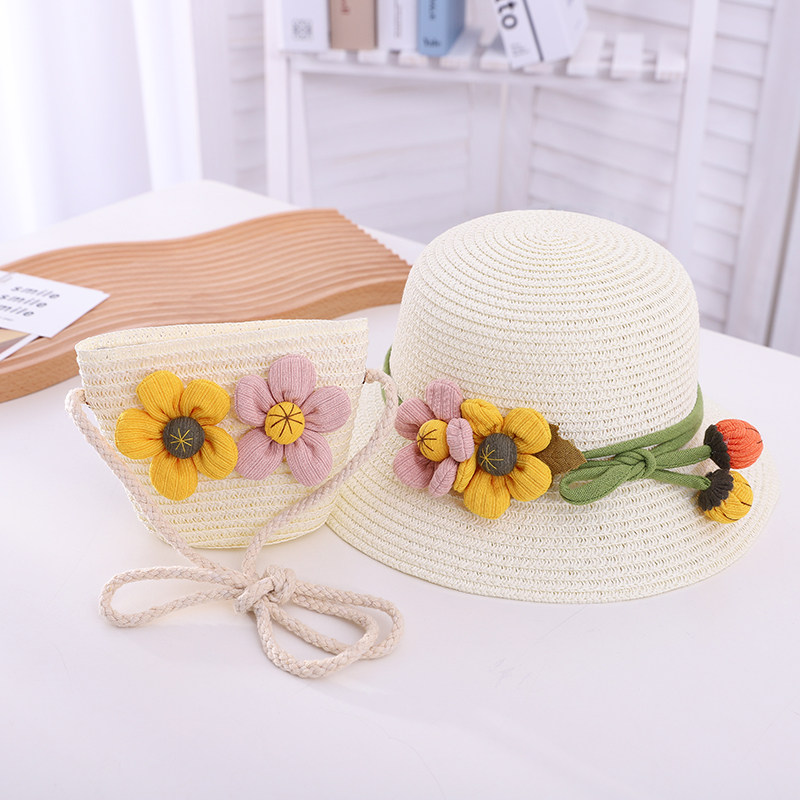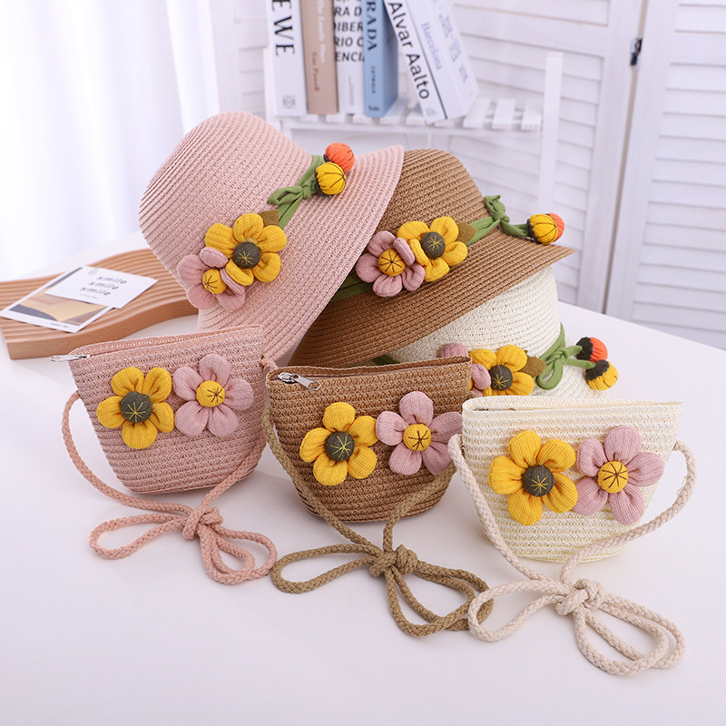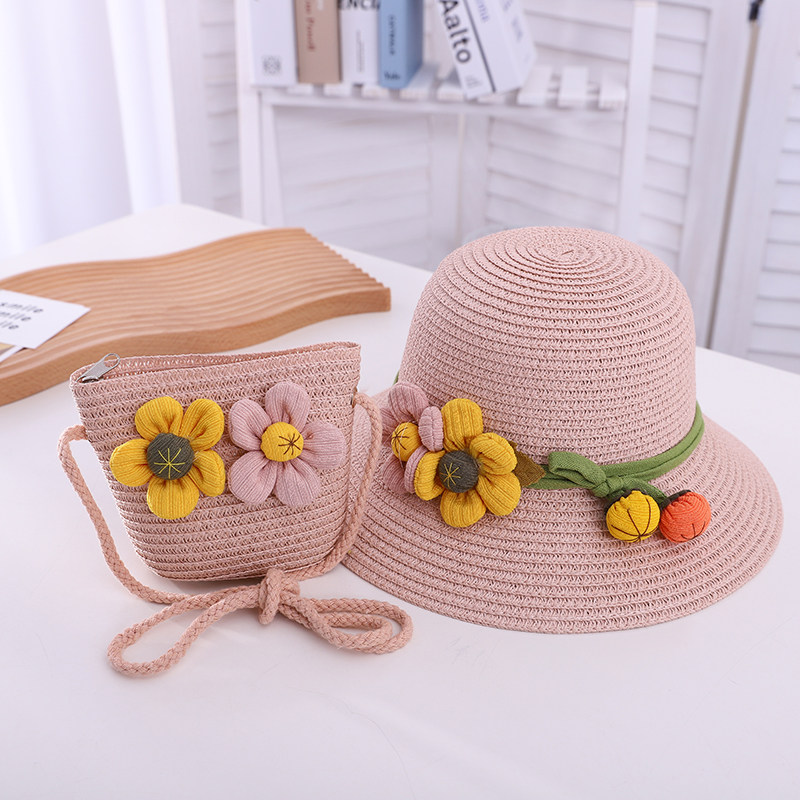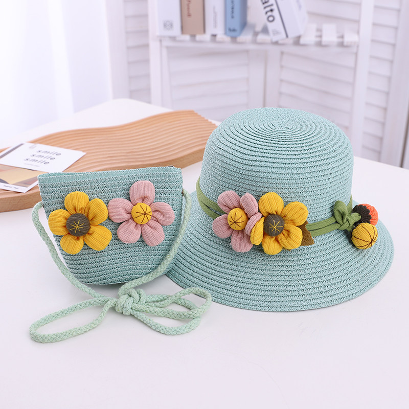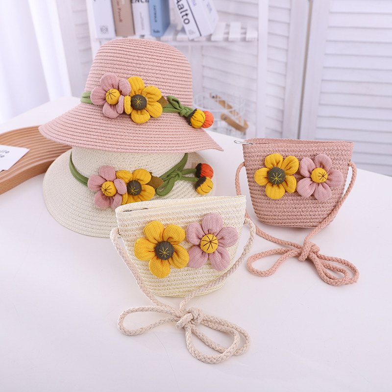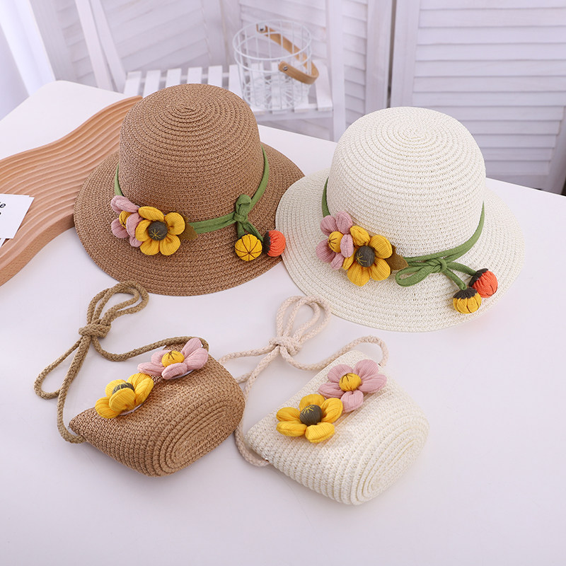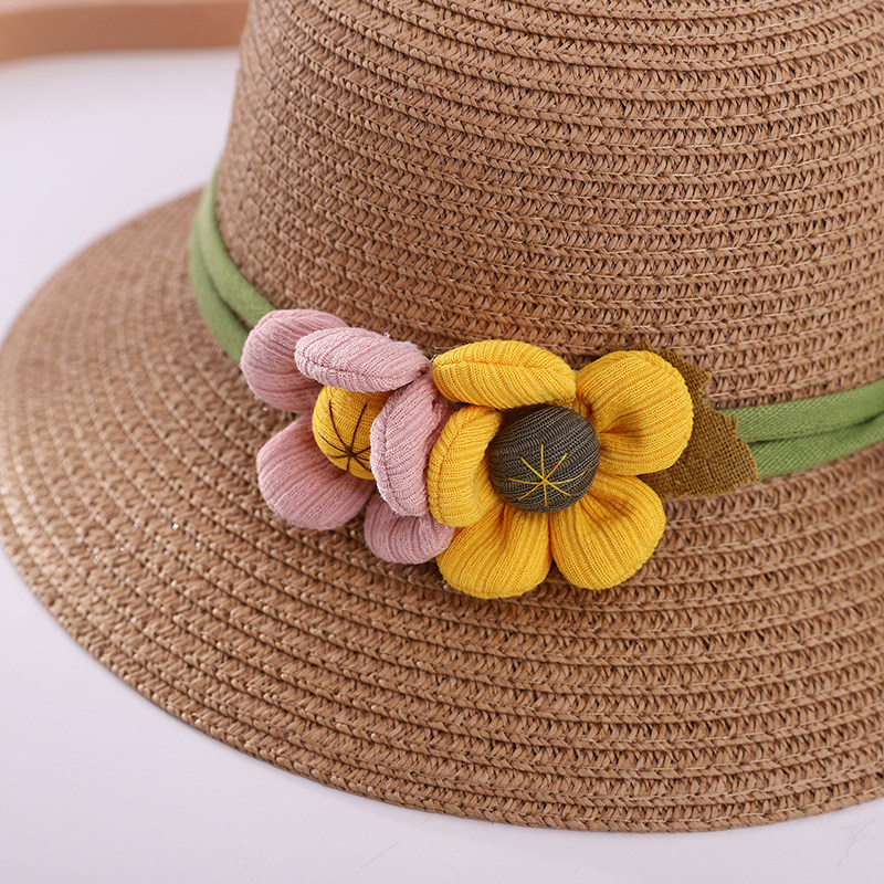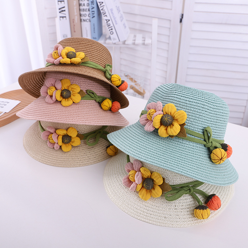 帽子女夏韩版宝宝太阳帽出游沙滩遮阳帽亲子草帽大檐儿童盆帽防晒