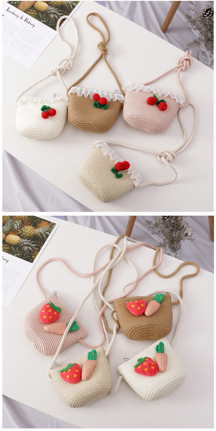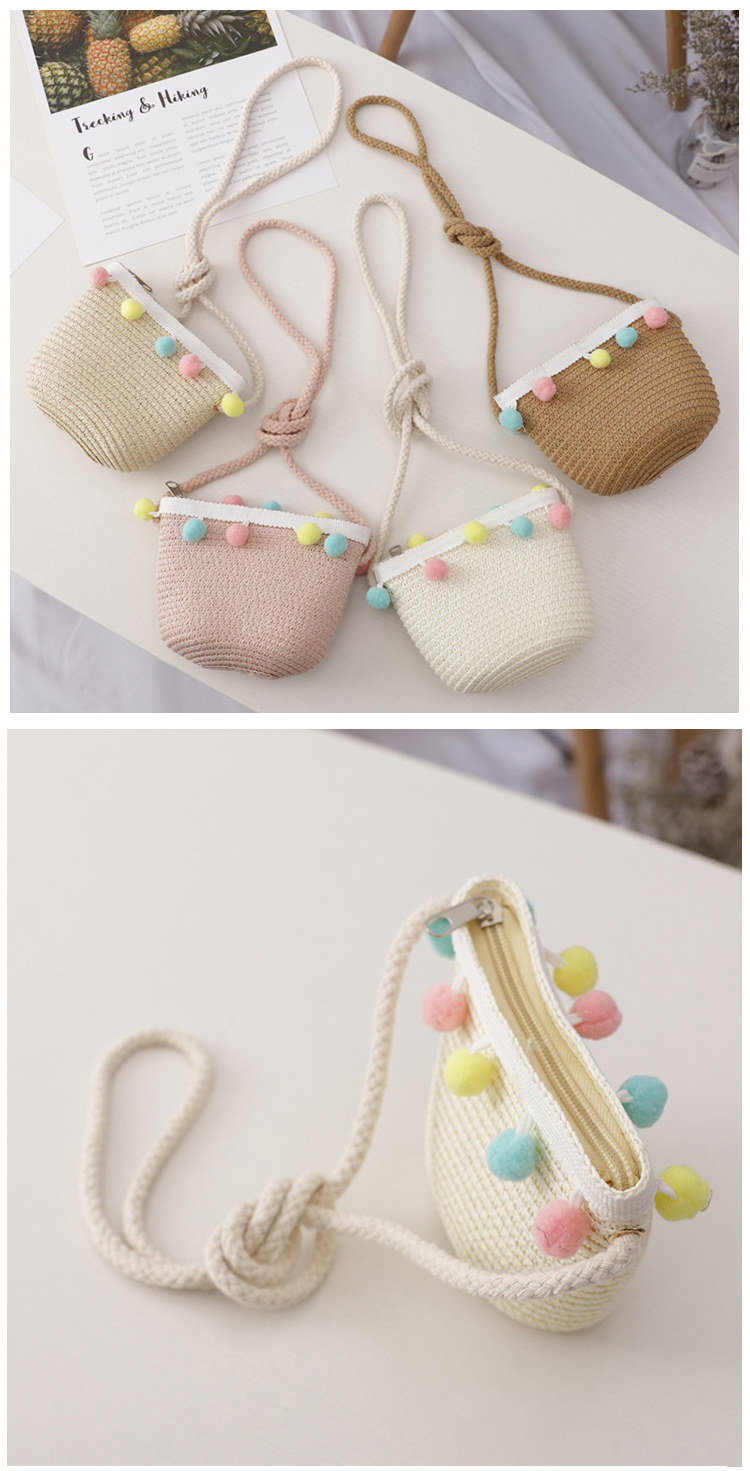 夏季新款儿童手工草编包包斜挎包可爱女童宝宝配饰迷你公主零钱包