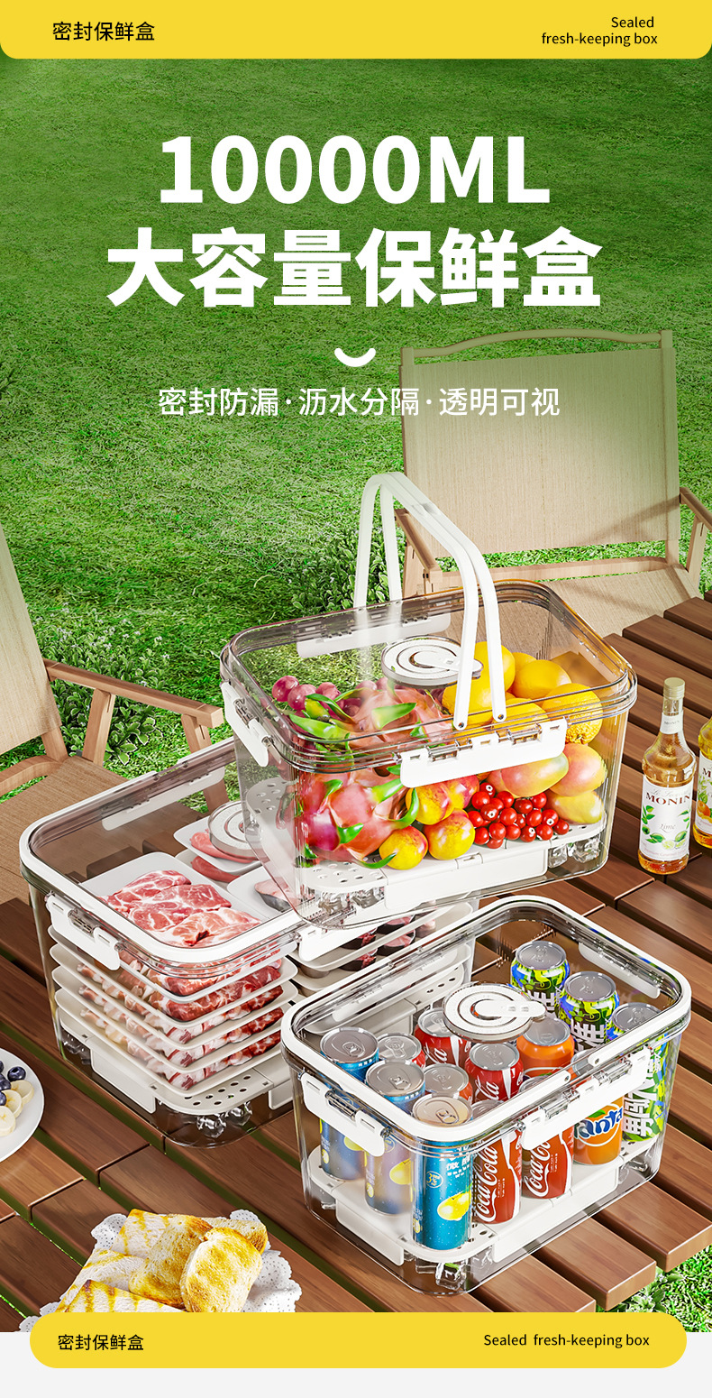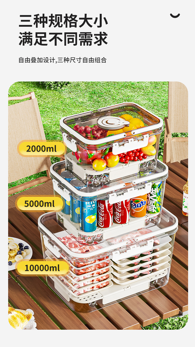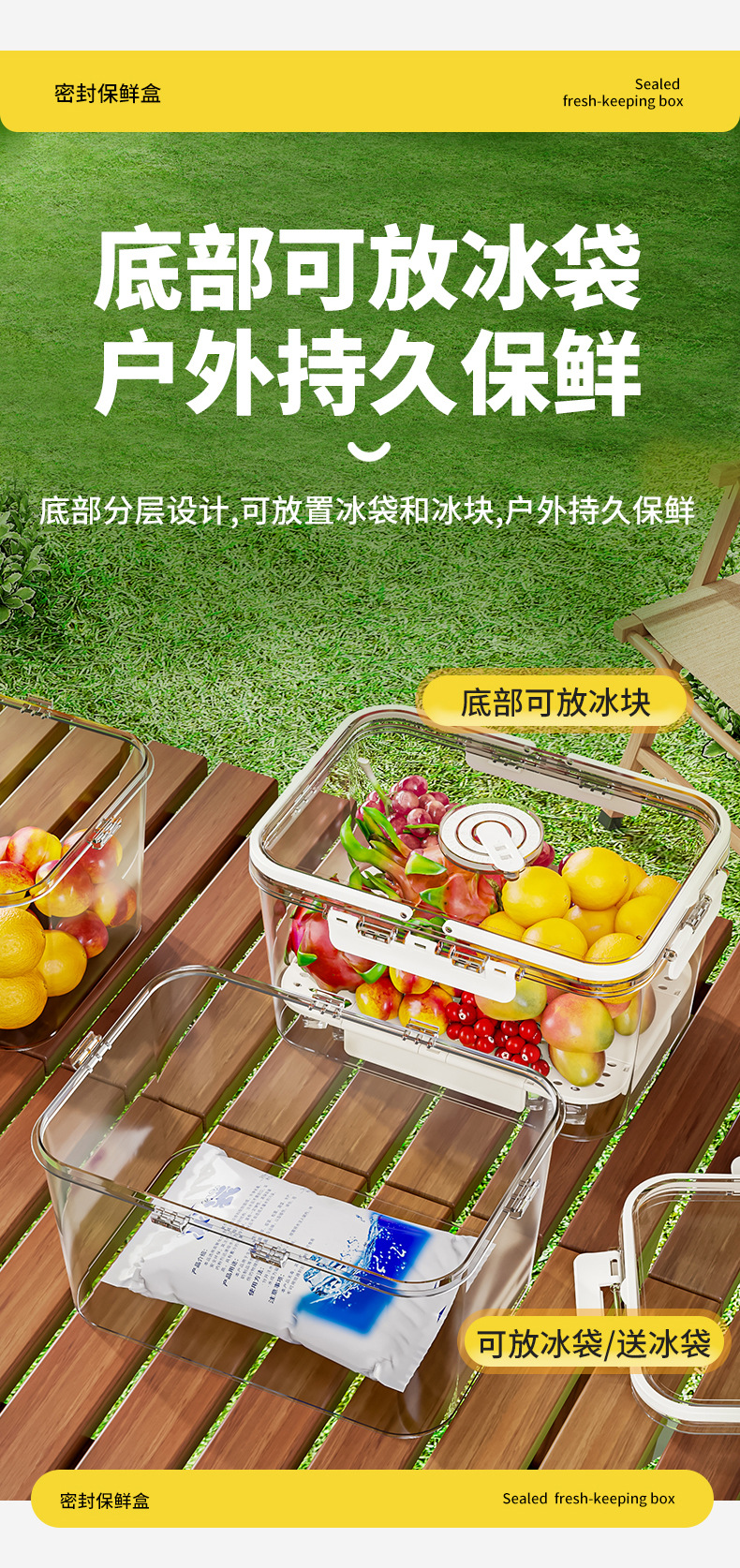 手提保鲜盒便携大容量水果外带盒冷冻食品冰箱收纳盒野餐分装盒