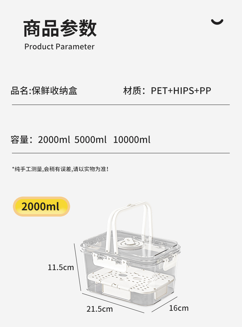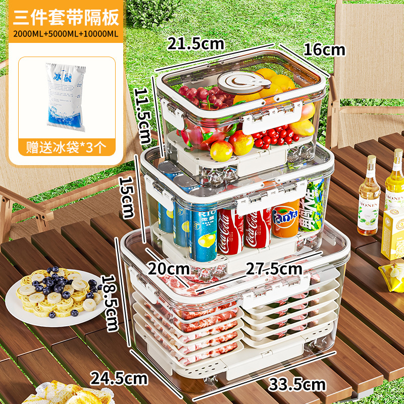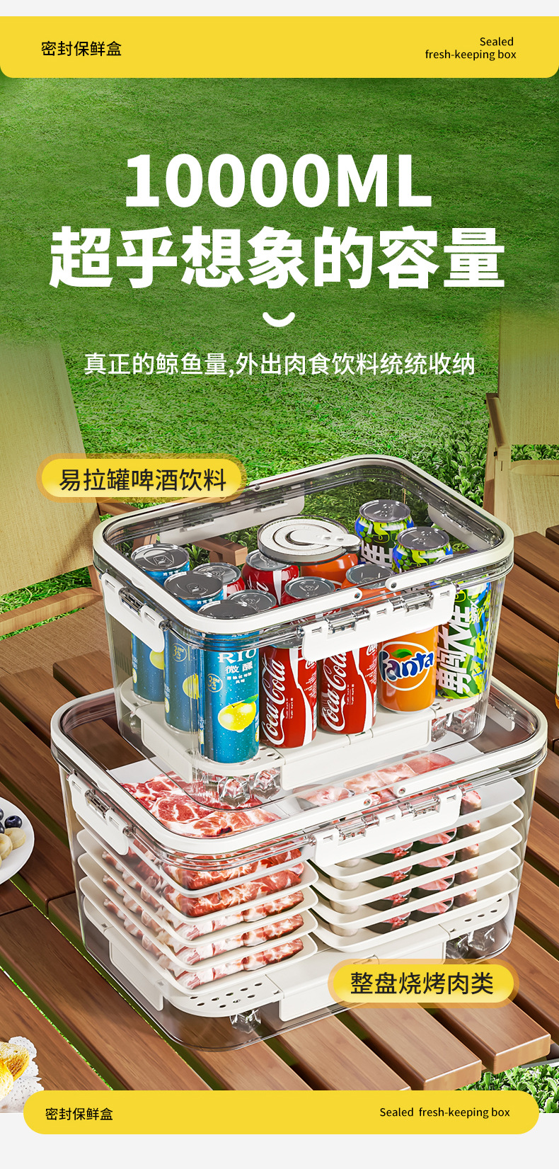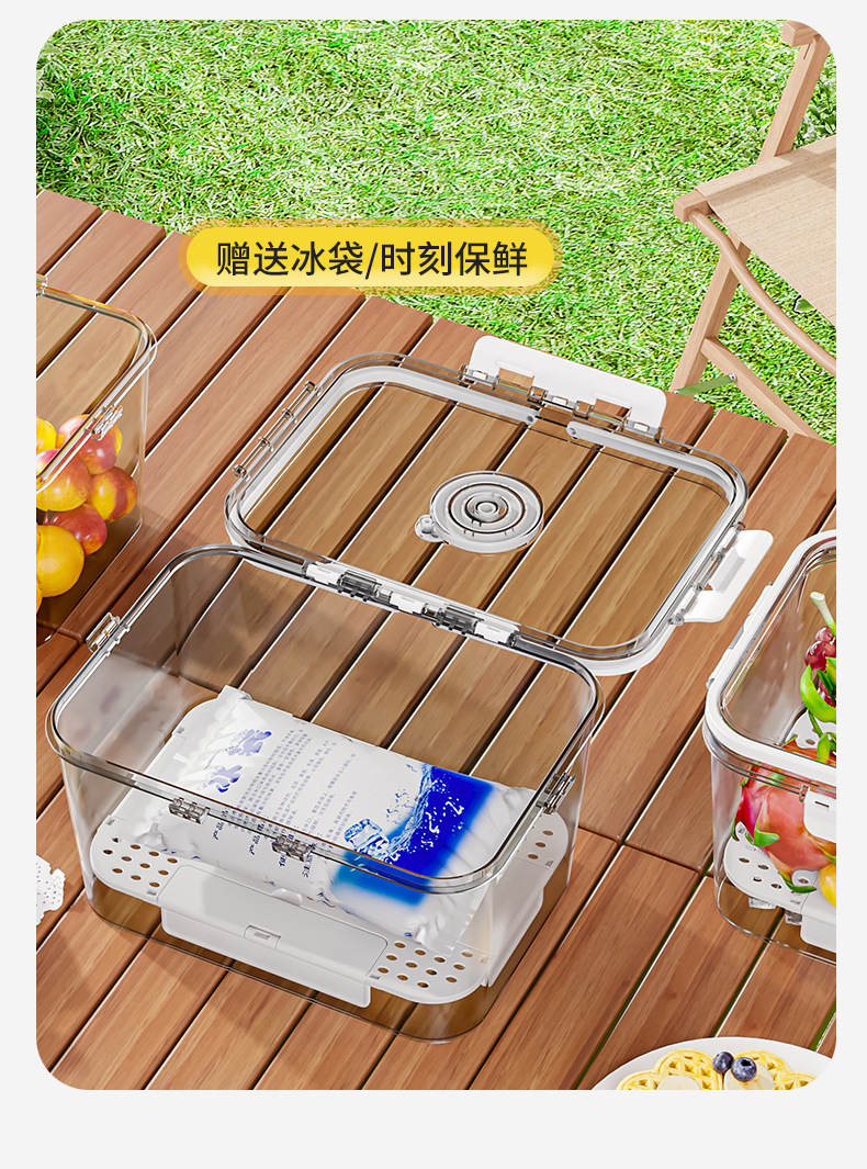 手提保鲜盒便携大容量水果外带盒冷冻食品冰箱收纳盒野餐分装盒