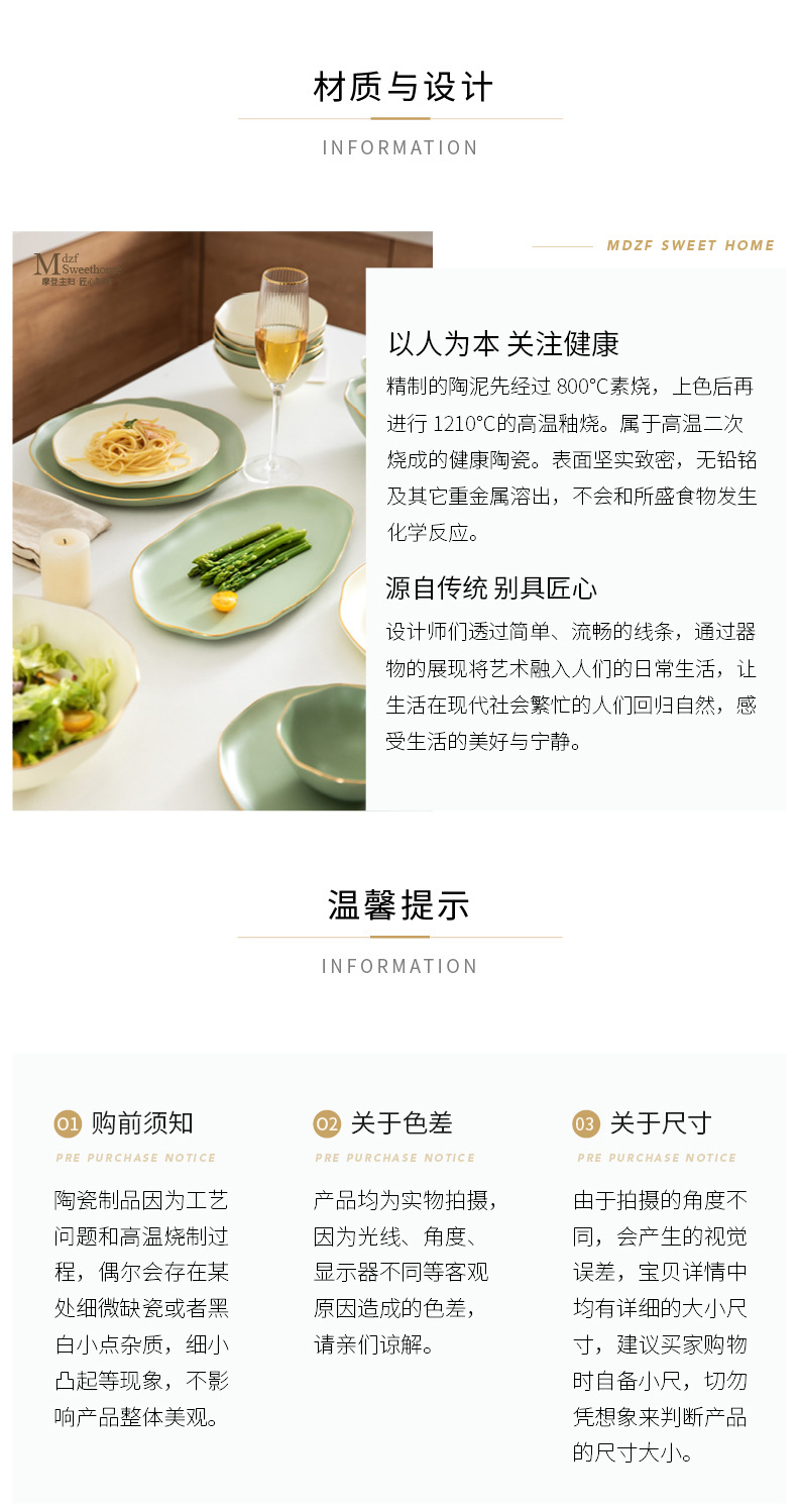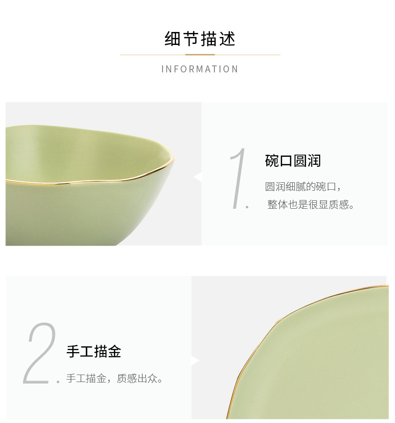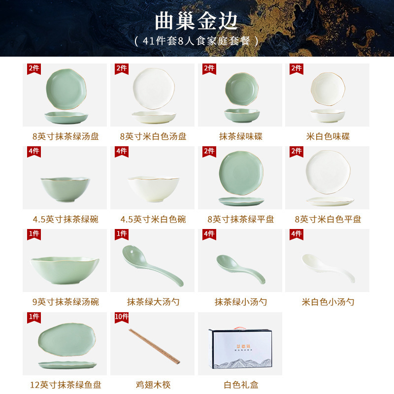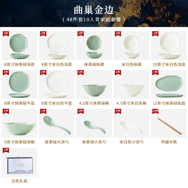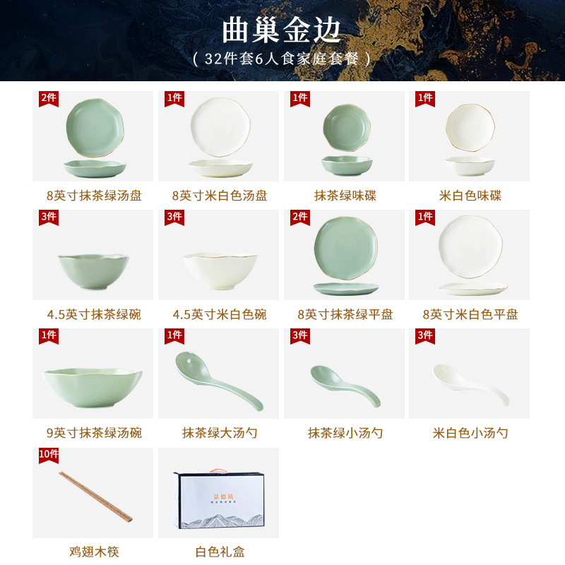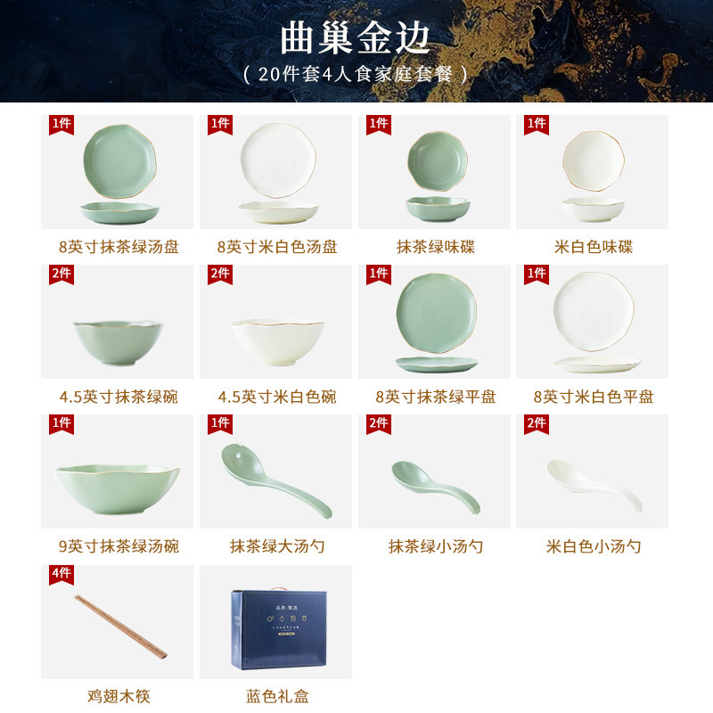 餐具北欧风格碗碟套装家用轻奢饭碗家用碗平盘子菜盘组合曲巢金边