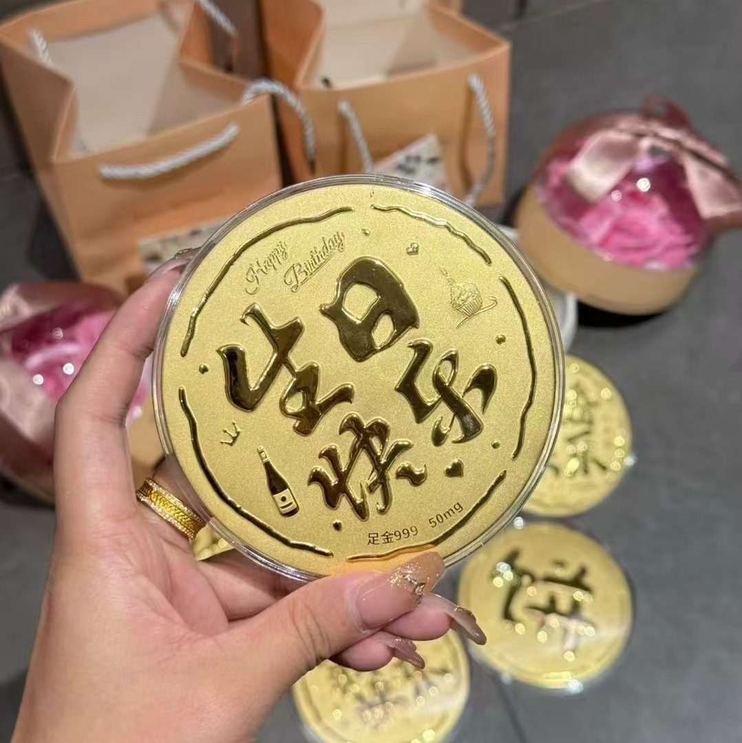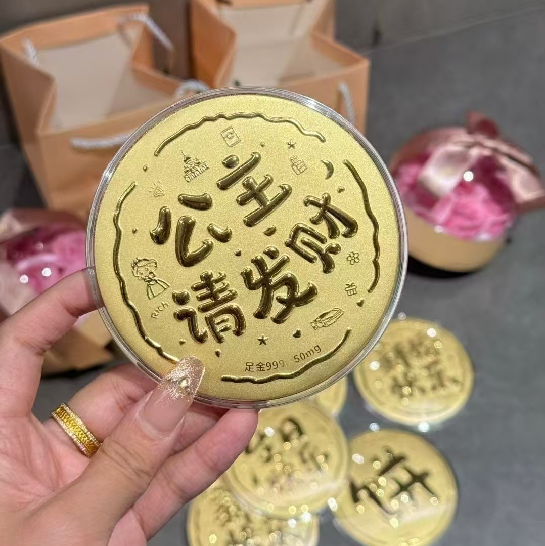 黄金大金饼画饼50mg足金999纯金投资收藏生日金条女神礼物送女友