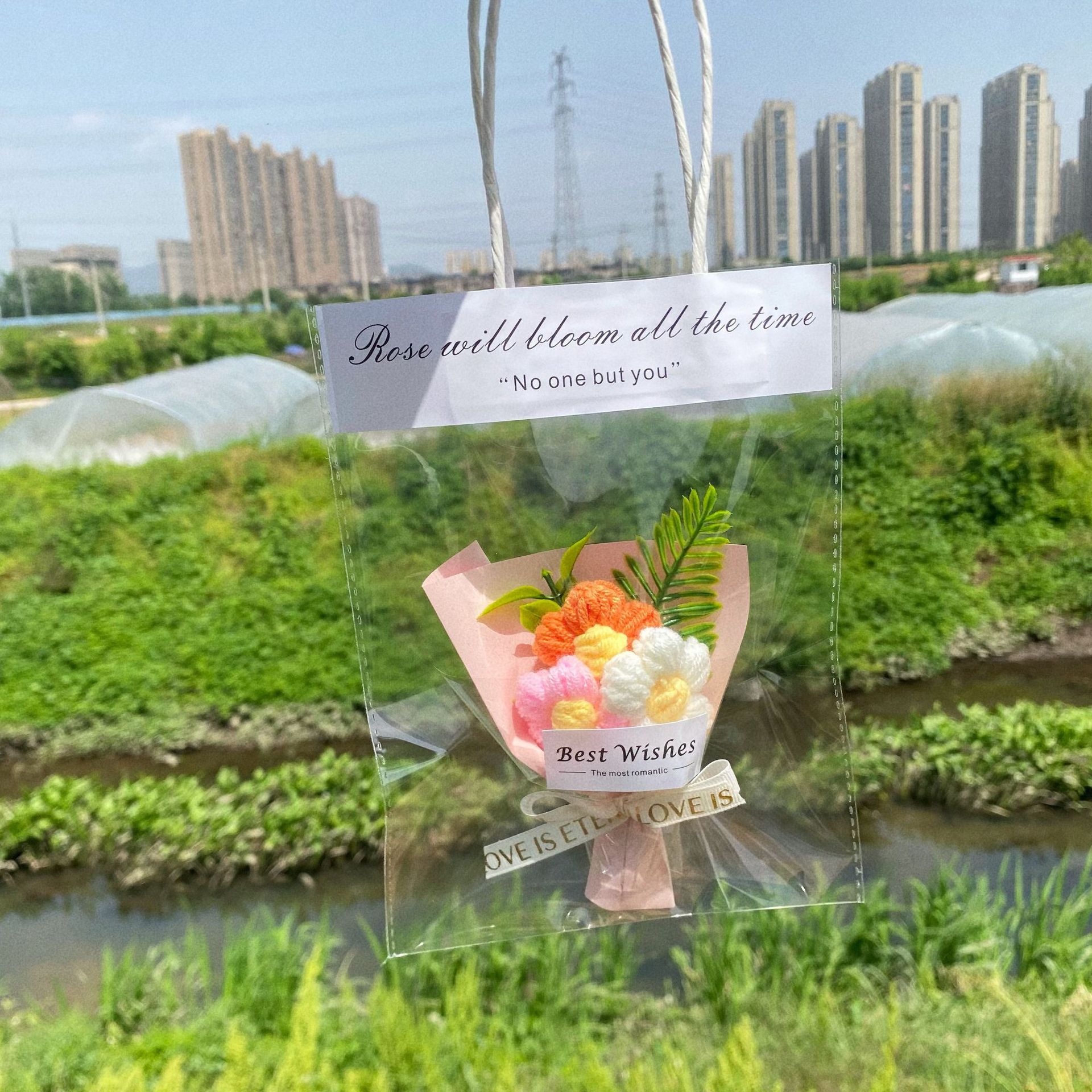 迷你编织毛线花手工小花束口袋见面惊喜礼物教师节创意伴手礼成品