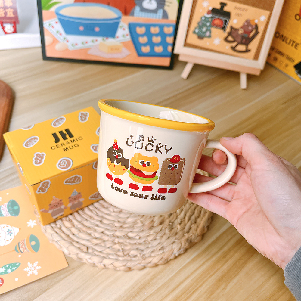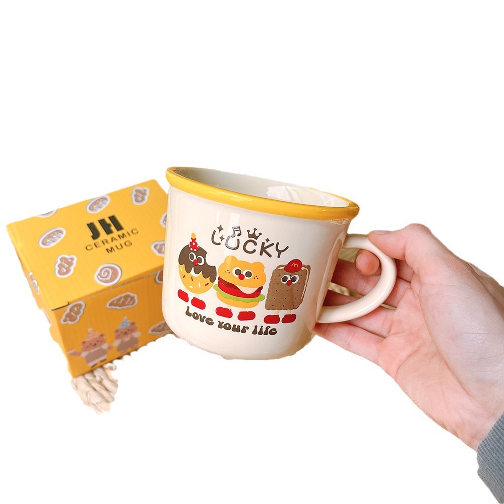 ins可爱韩版汉堡卡通陶瓷杯马克杯儿童早餐杯牛奶杯咖啡杯伴手礼