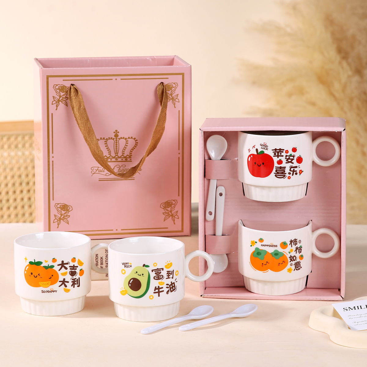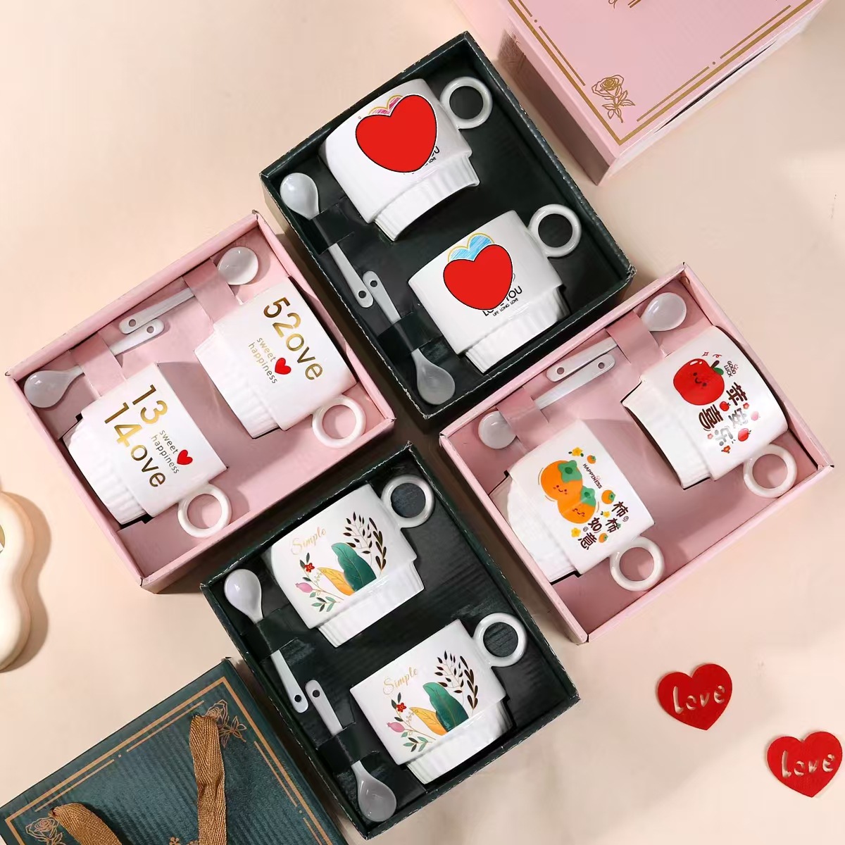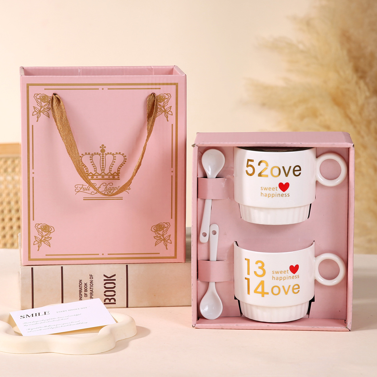 公司团建创意伴手礼陶瓷杯结婚对杯礼盒马克杯印字节日开业礼品