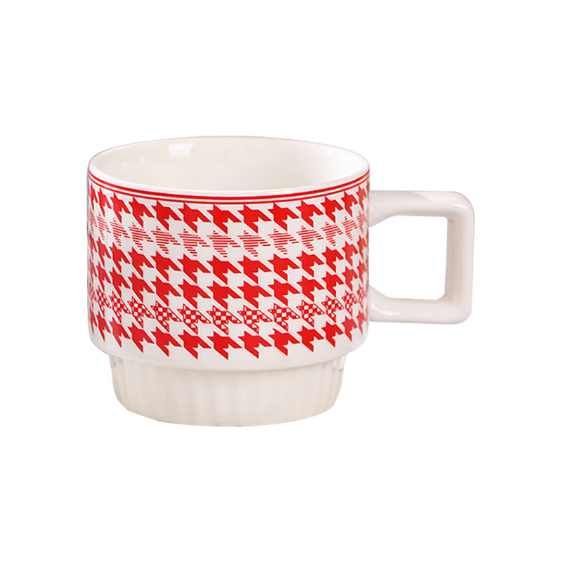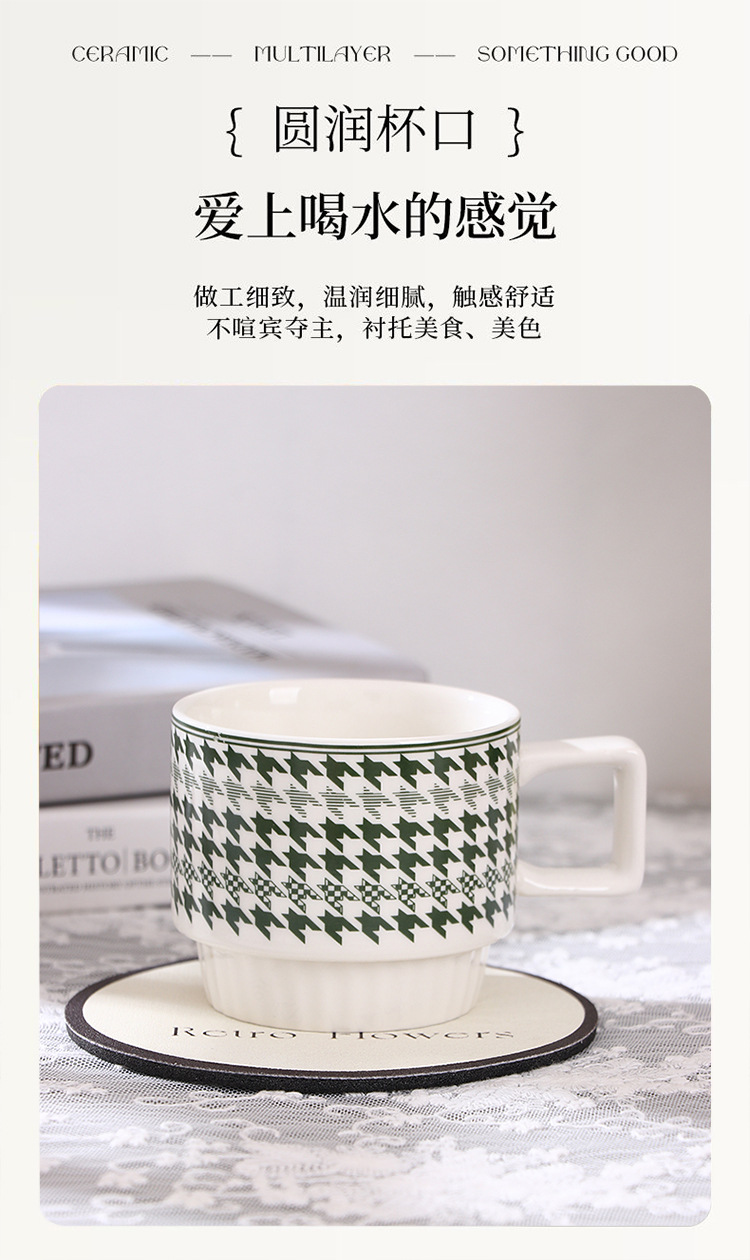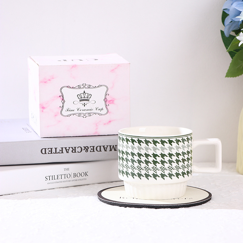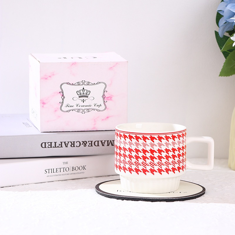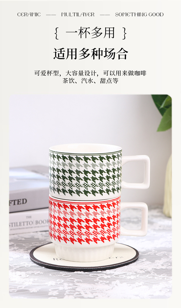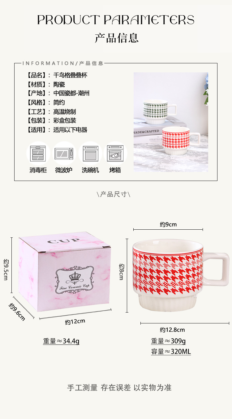 千鸟格叠杯陶瓷杯高颜值马克杯咖啡杯送闺蜜情侣对杯生日礼物批发