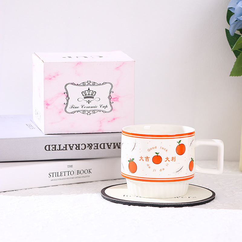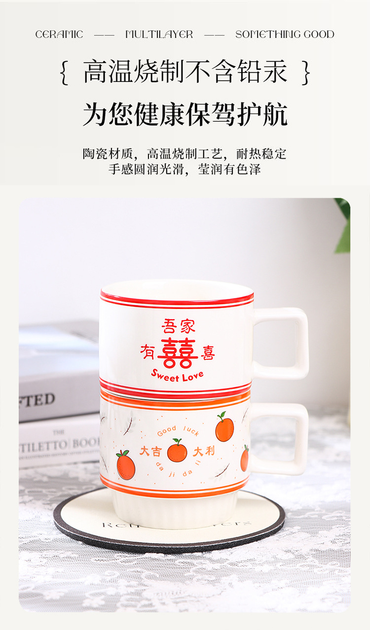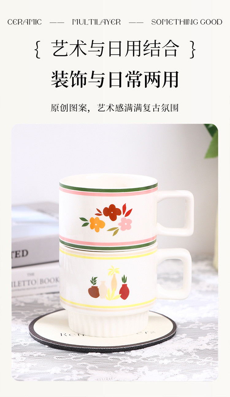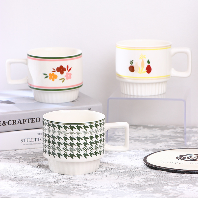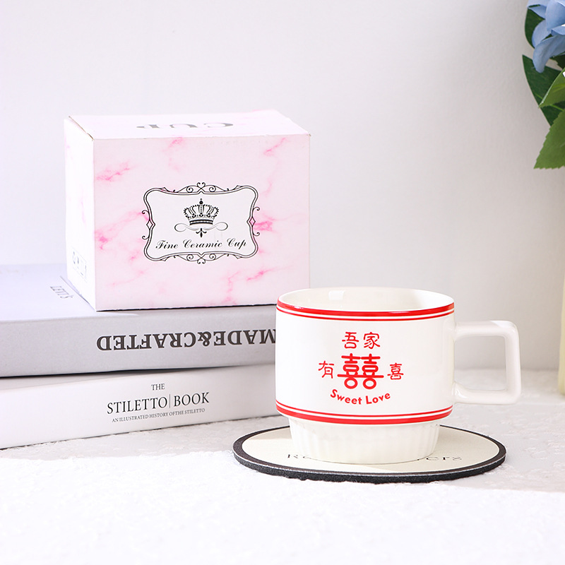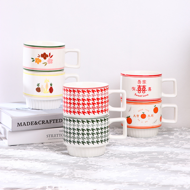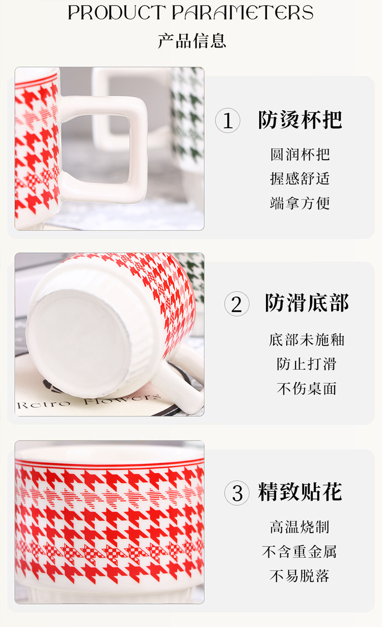 千鸟格叠杯陶瓷杯高颜值马克杯咖啡杯送闺蜜情侣对杯生日礼物批发