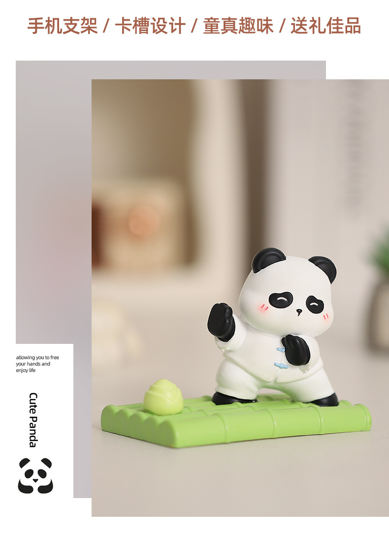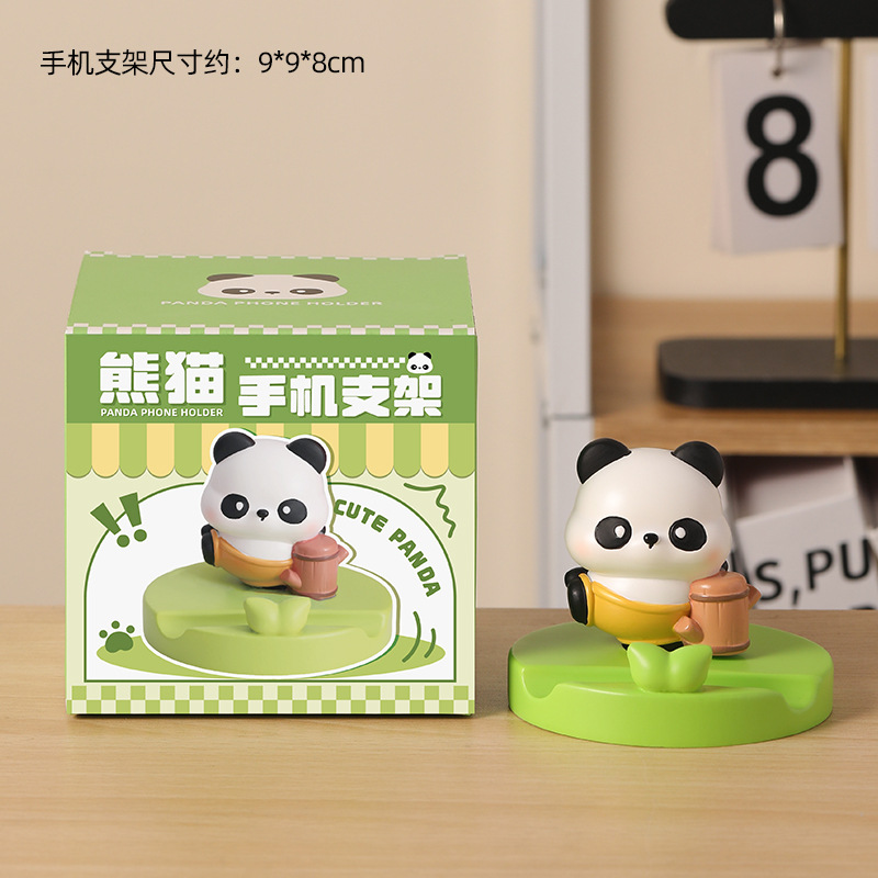 创意国潮熊猫树脂手机支架卡通懒人好物桌面平板支架萌宠摆件礼物