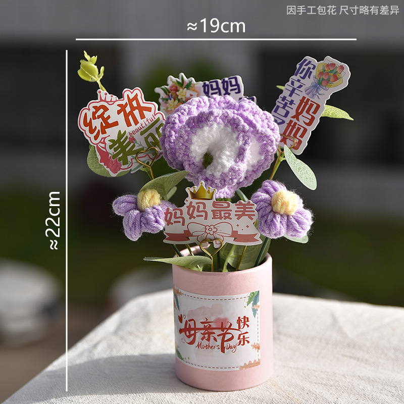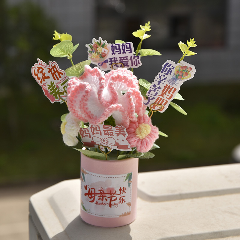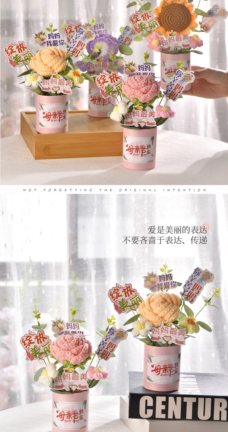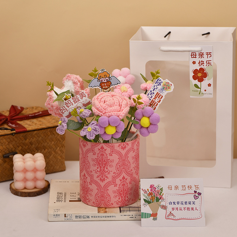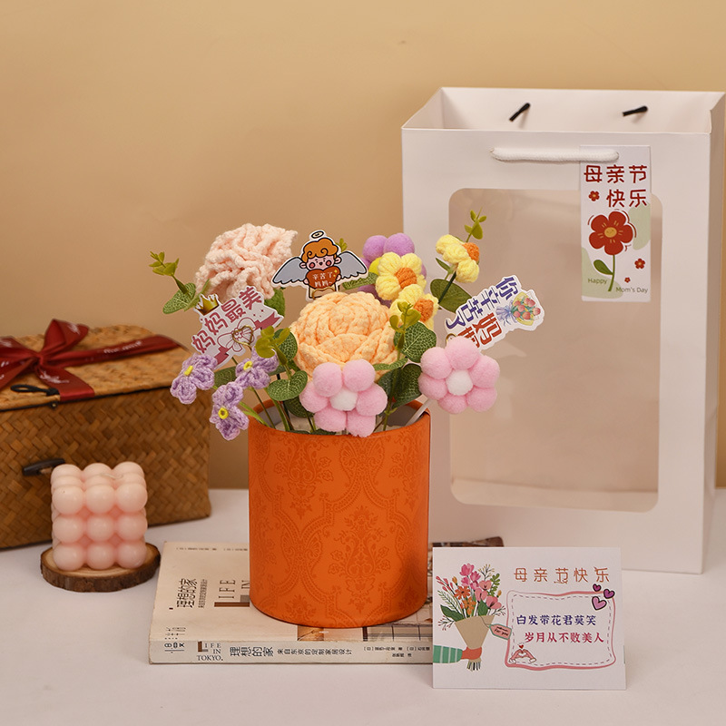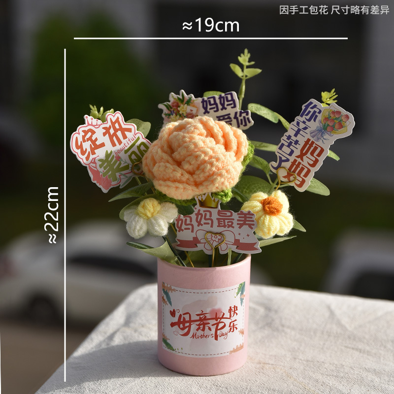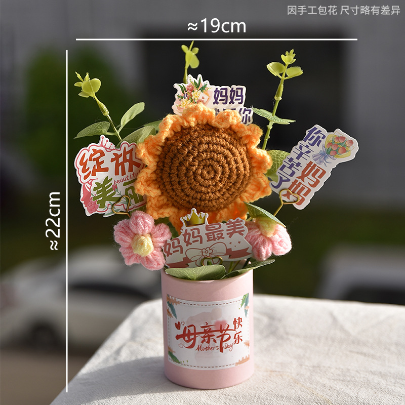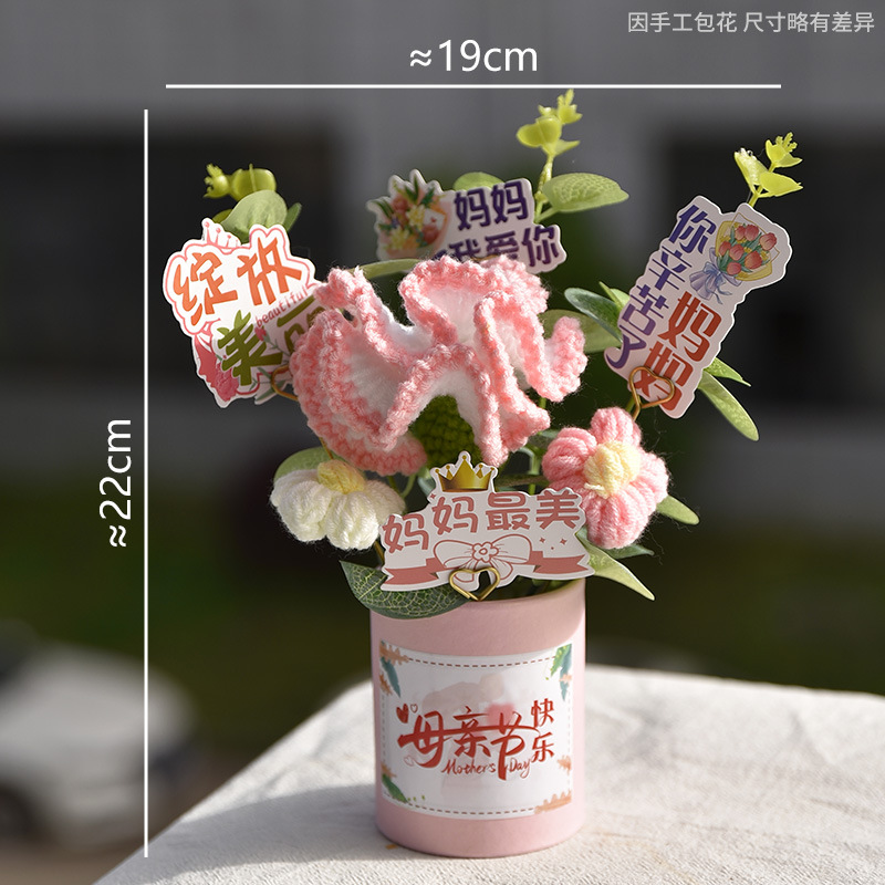 520情人节礼物小雏菊康乃馨花束抱抱桶手工毛线编织成品针织花束