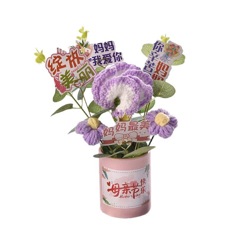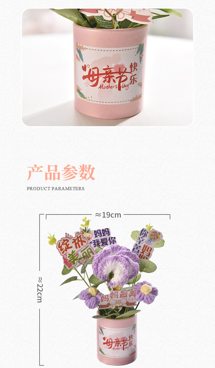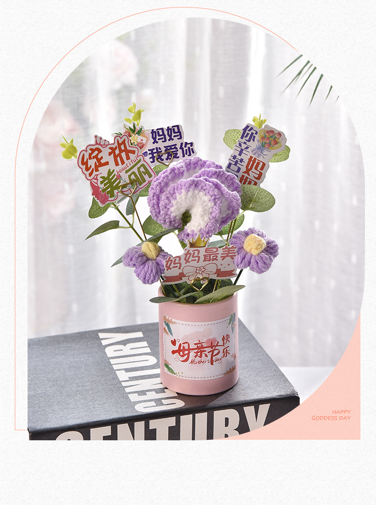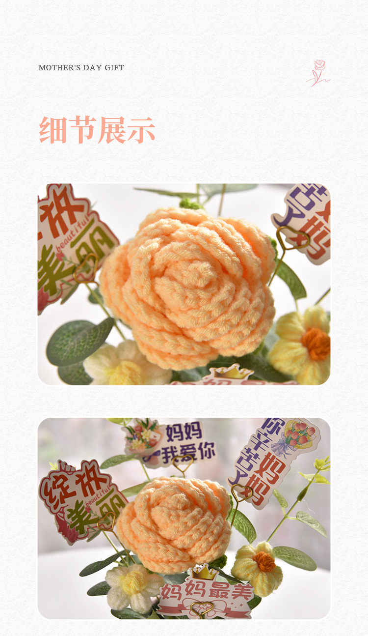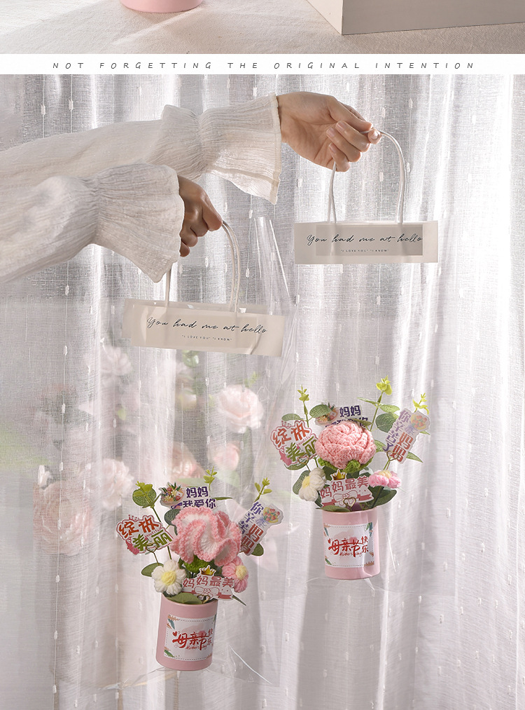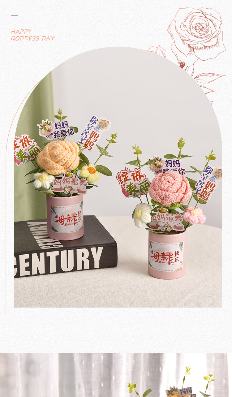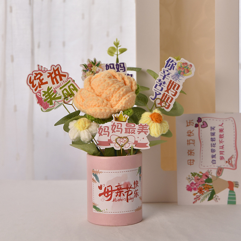 520情人节礼物小雏菊康乃馨花束抱抱桶手工毛线编织成品针织花束