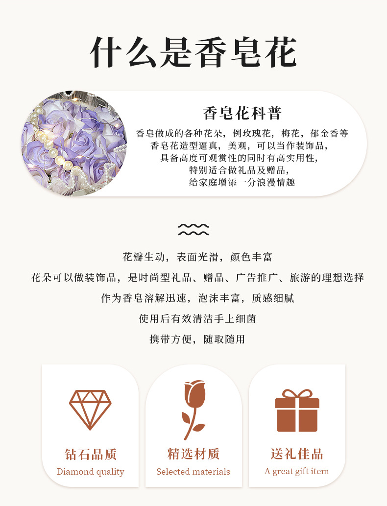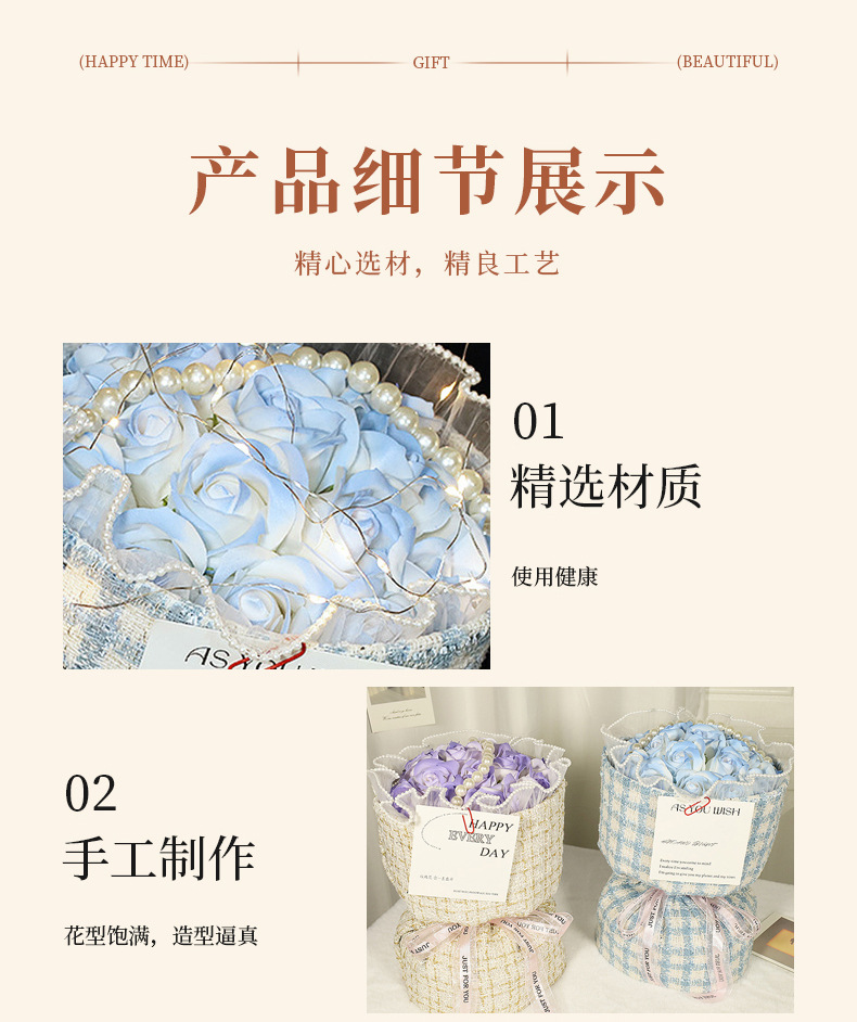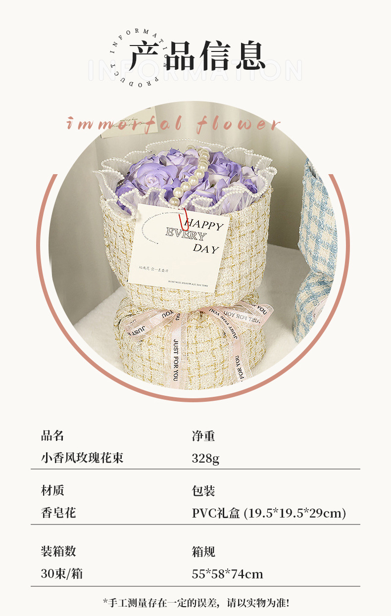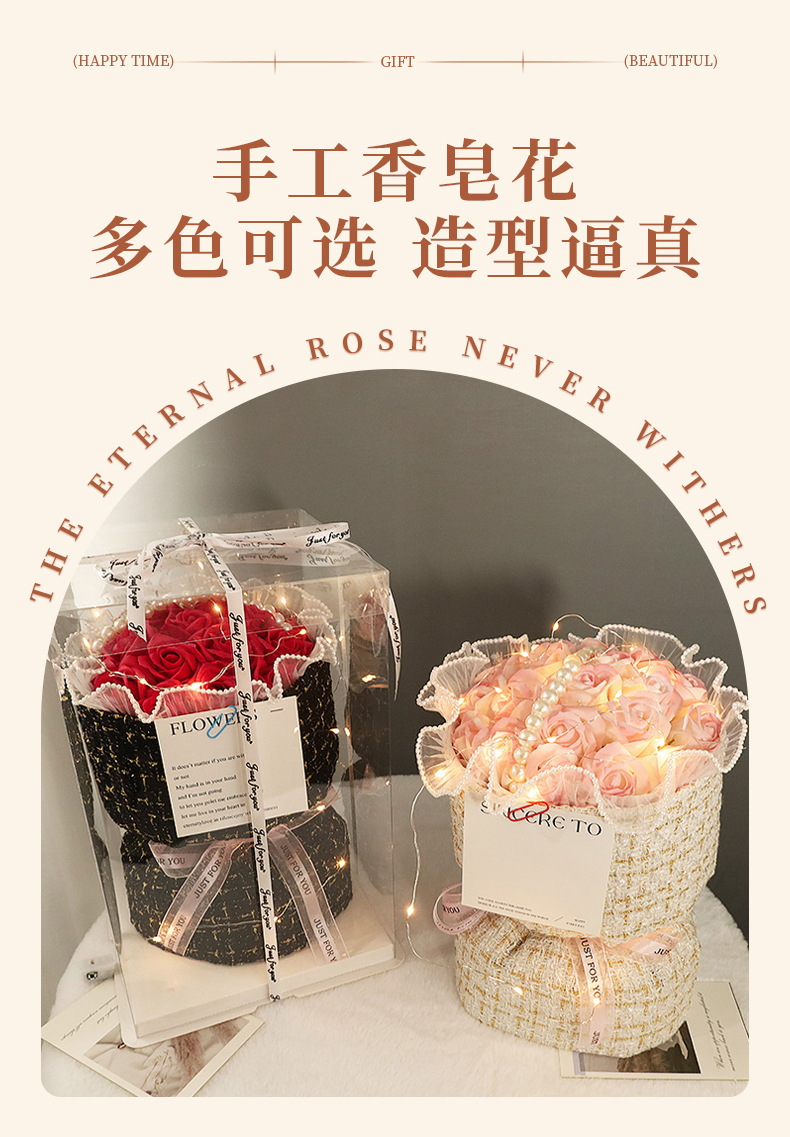 玫瑰香皂花束母情节礼物送女生高级感母亲节礼物小香风永生花花束