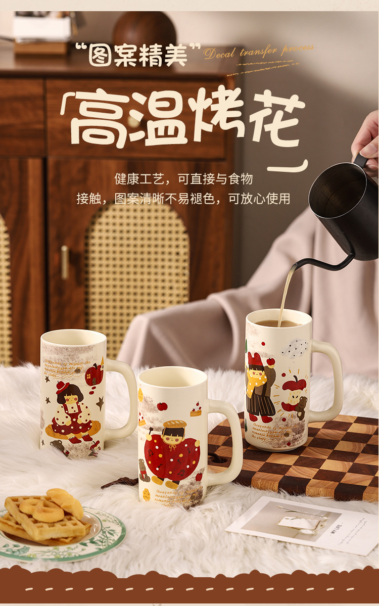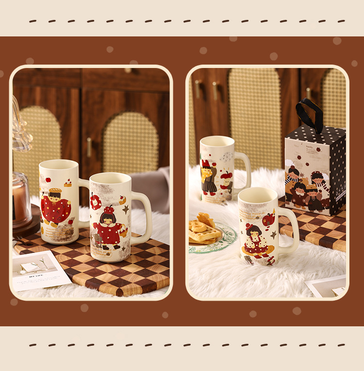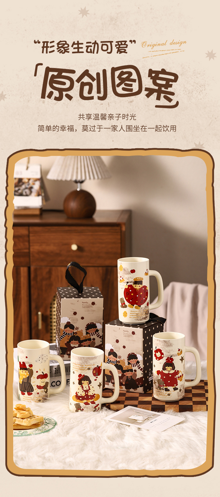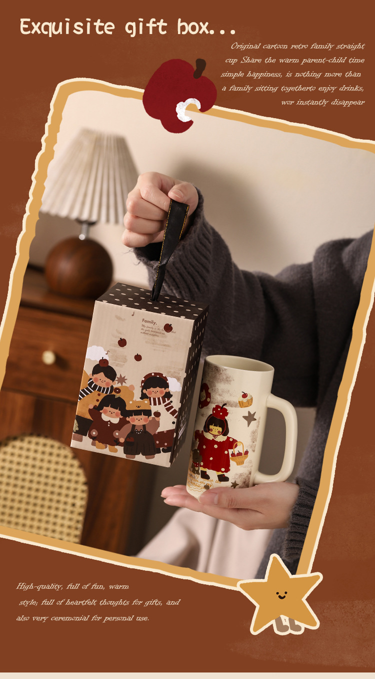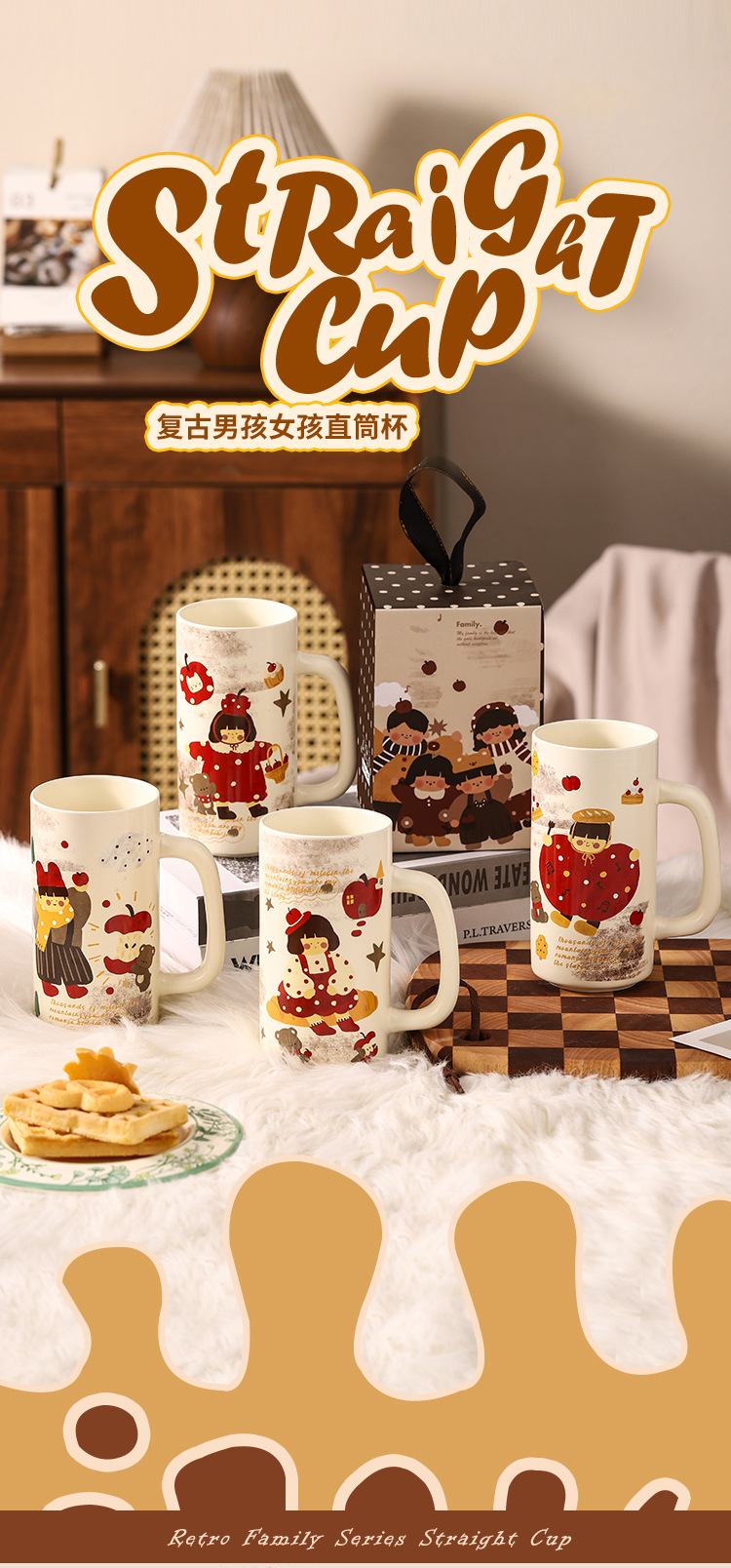 亲子时光复古陶瓷直身杯送女生礼品高颜值大容量水杯马克杯伴手礼