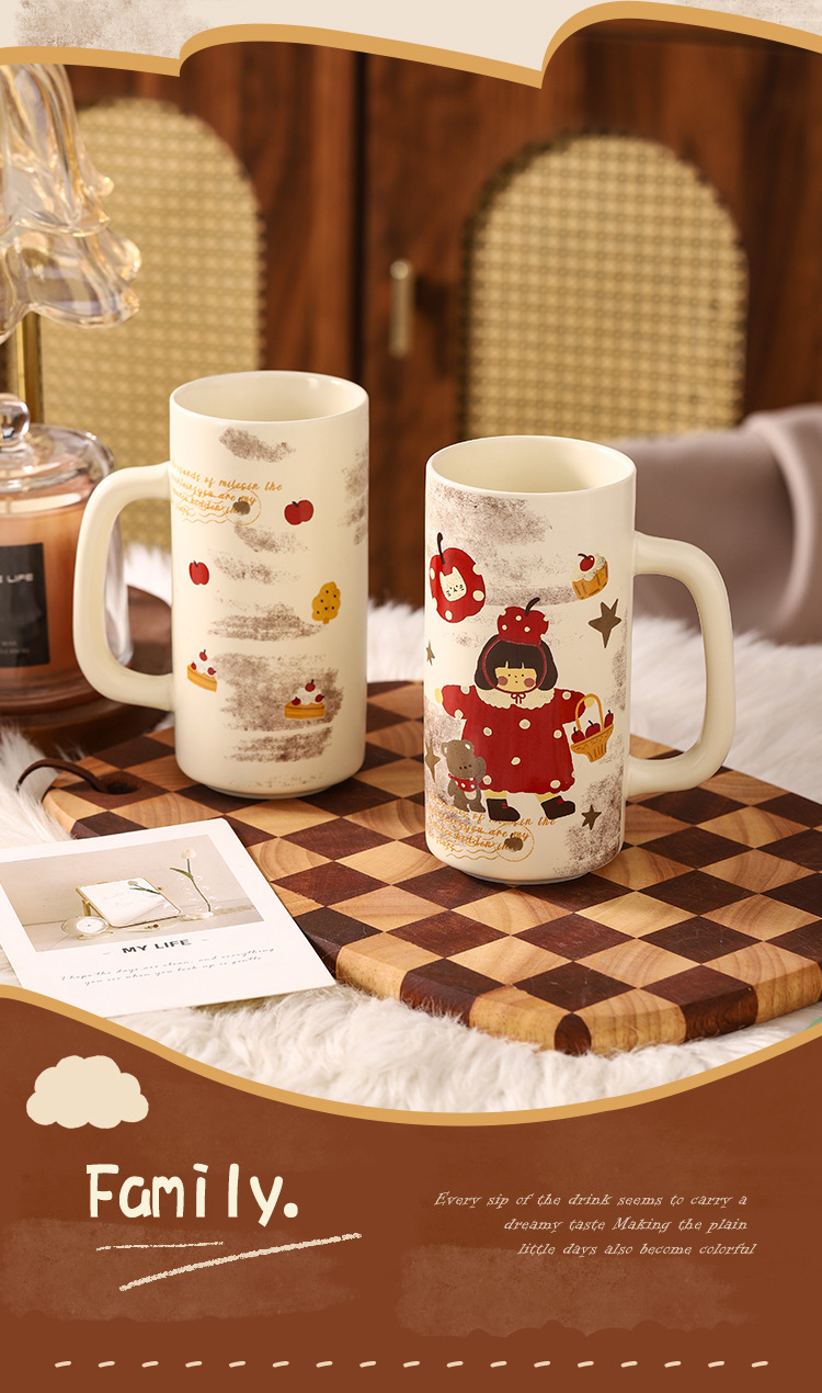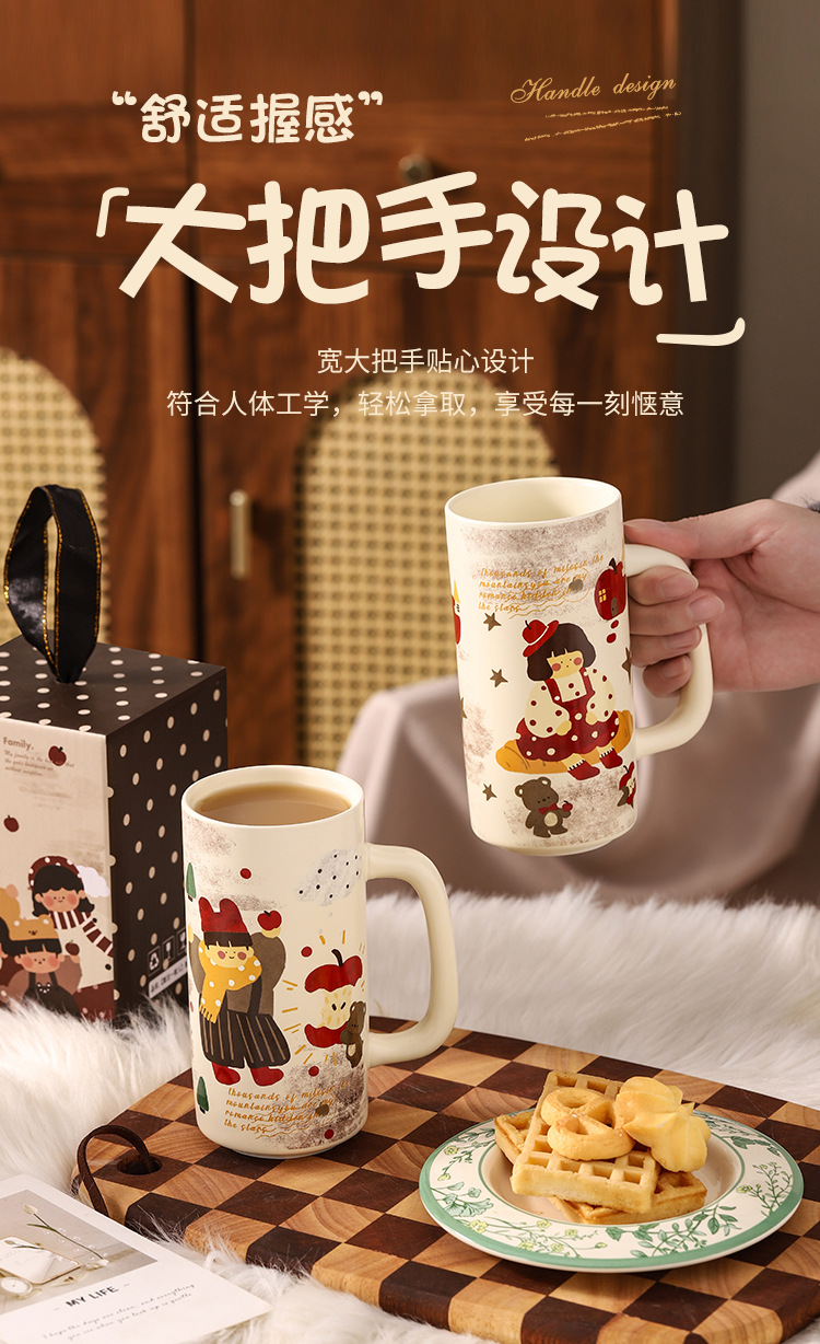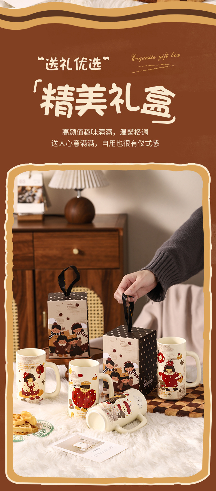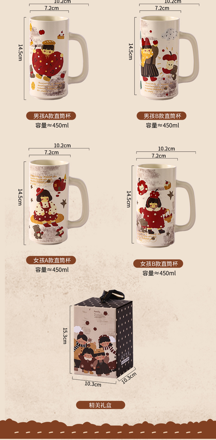 亲子时光复古陶瓷直身杯送女生礼品高颜值大容量水杯马克杯伴手礼