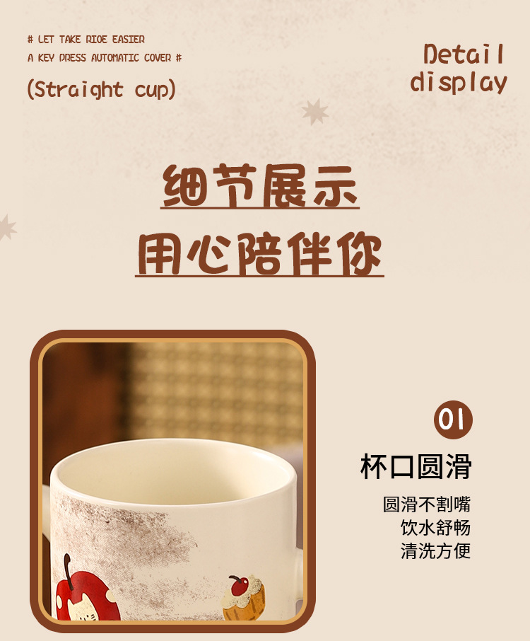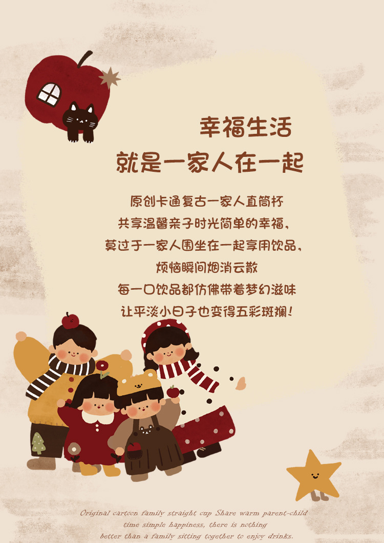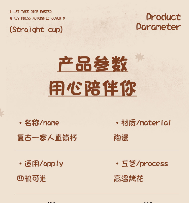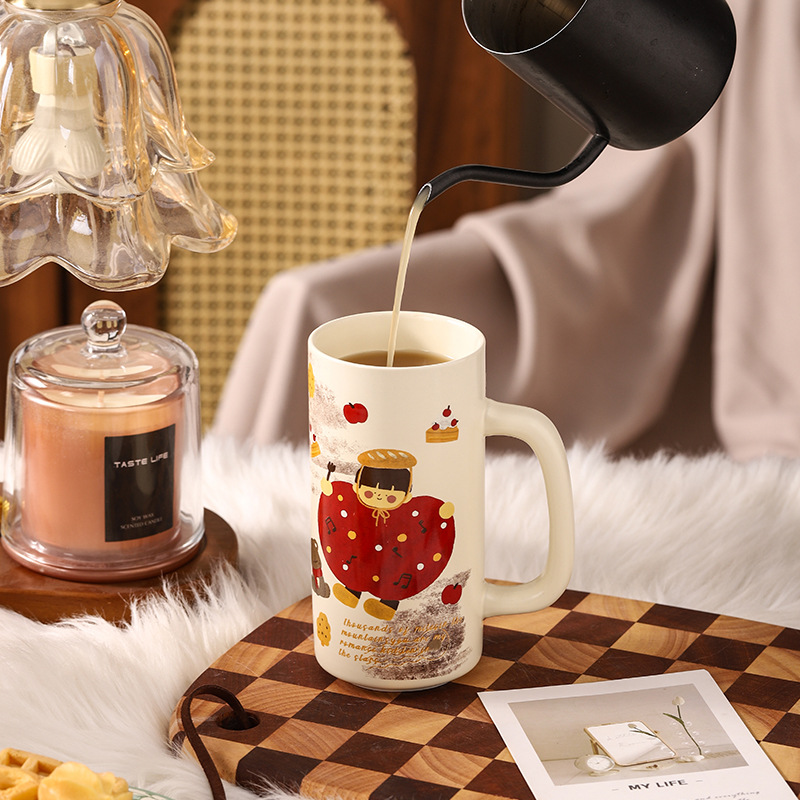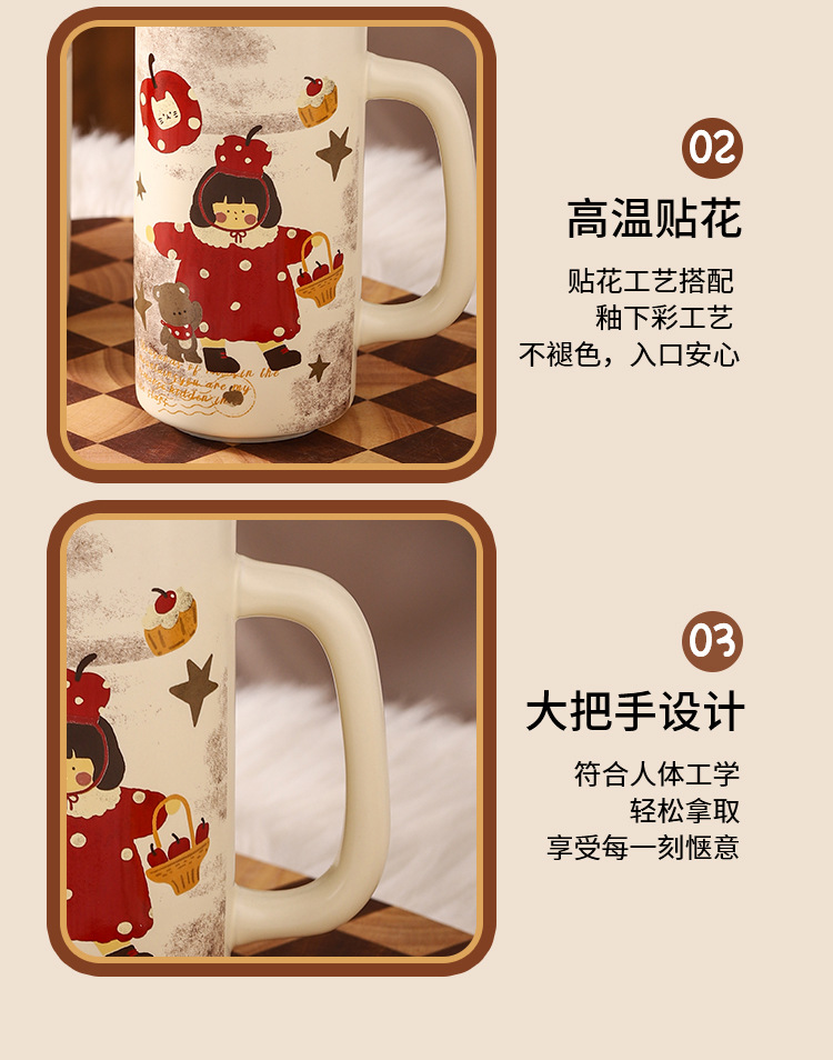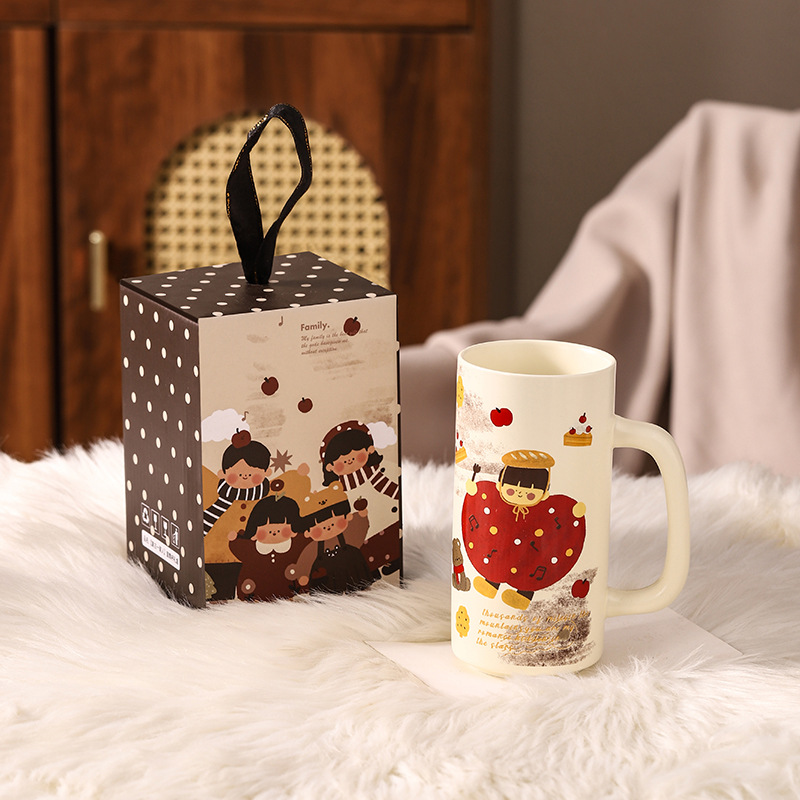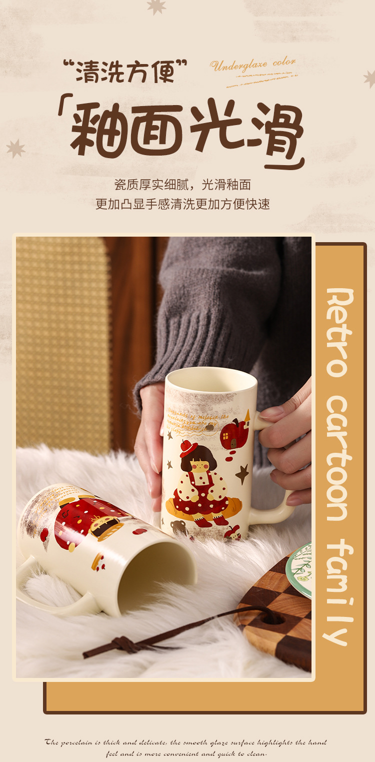 亲子时光复古陶瓷直身杯送女生礼品高颜值大容量水杯马克杯伴手礼