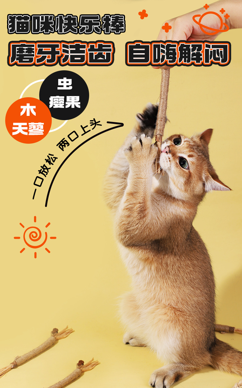 猫咪快乐棒木天蓼拉菲草猫咪玩具磨牙棒逗猫棒猫薄荷猫咪自嗨解闷