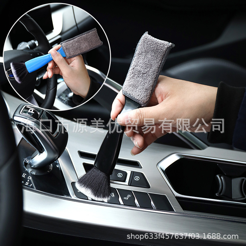 跨境汽车改装出风口清洁刷双头大全车载除尘软毛刷清理尼龙细节刷
