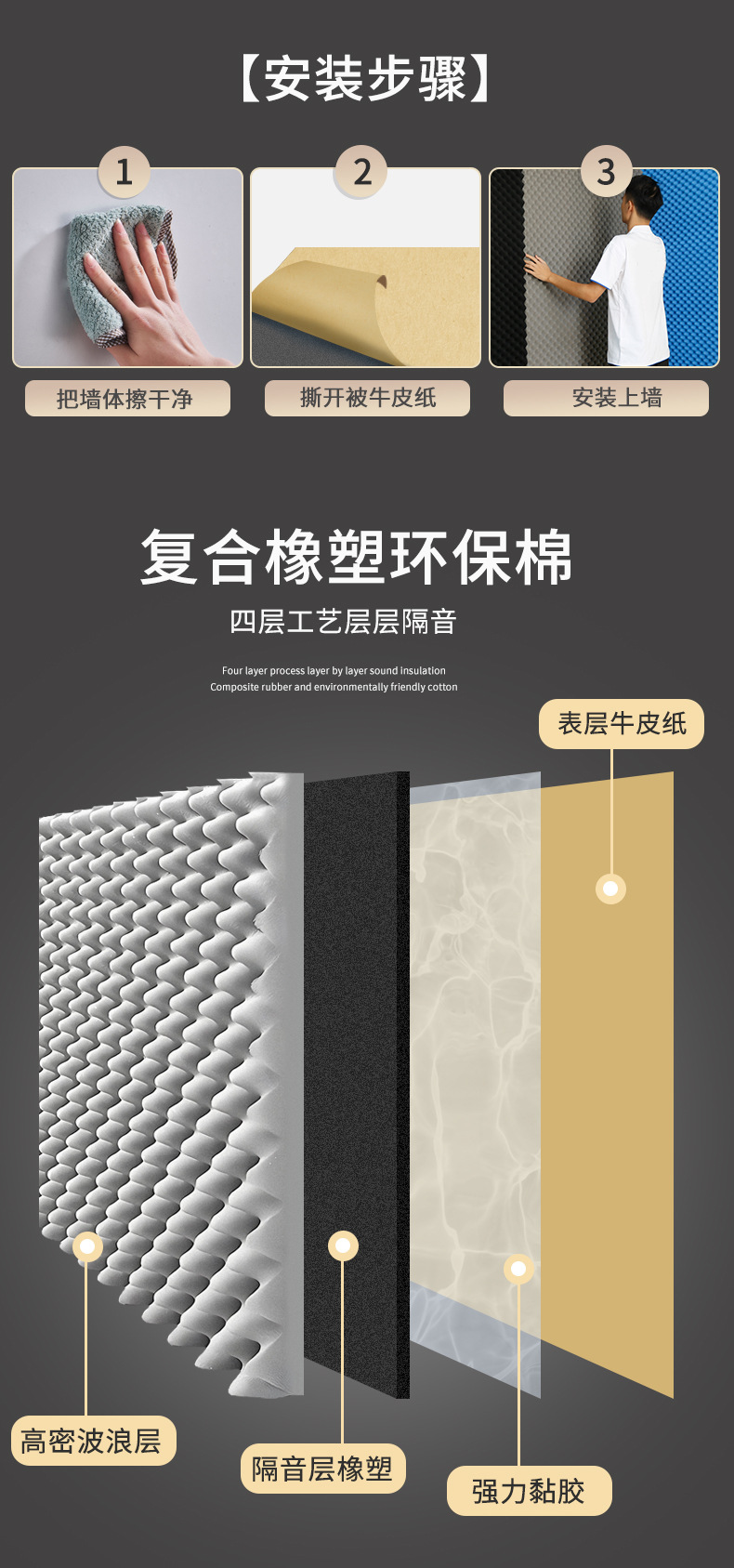 隔音棉自粘墙体超强消音降噪工程墙贴房间隔音板阻燃批发消音材料