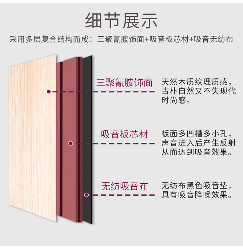槽木环保木质隔音板墙面装饰吸音防火会议室体育馆吊顶ktv吸音板