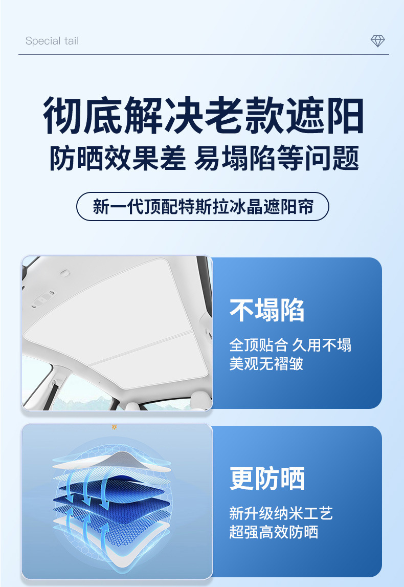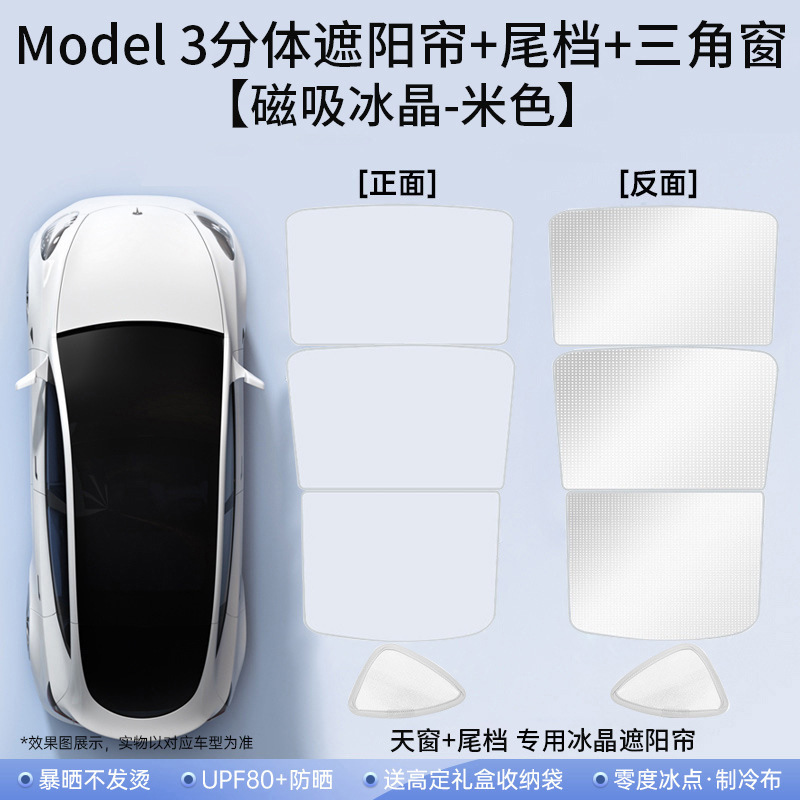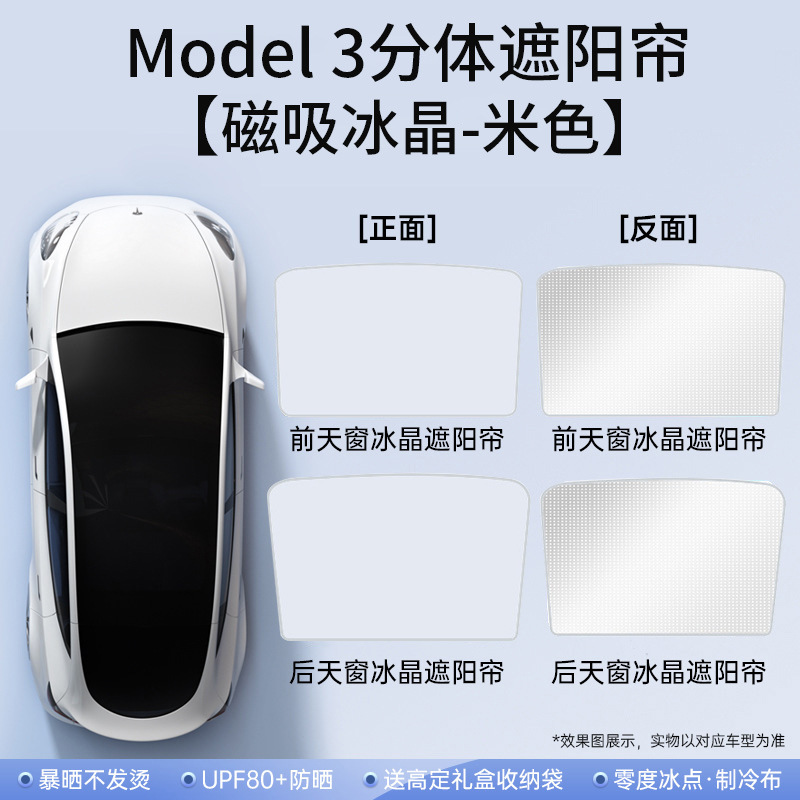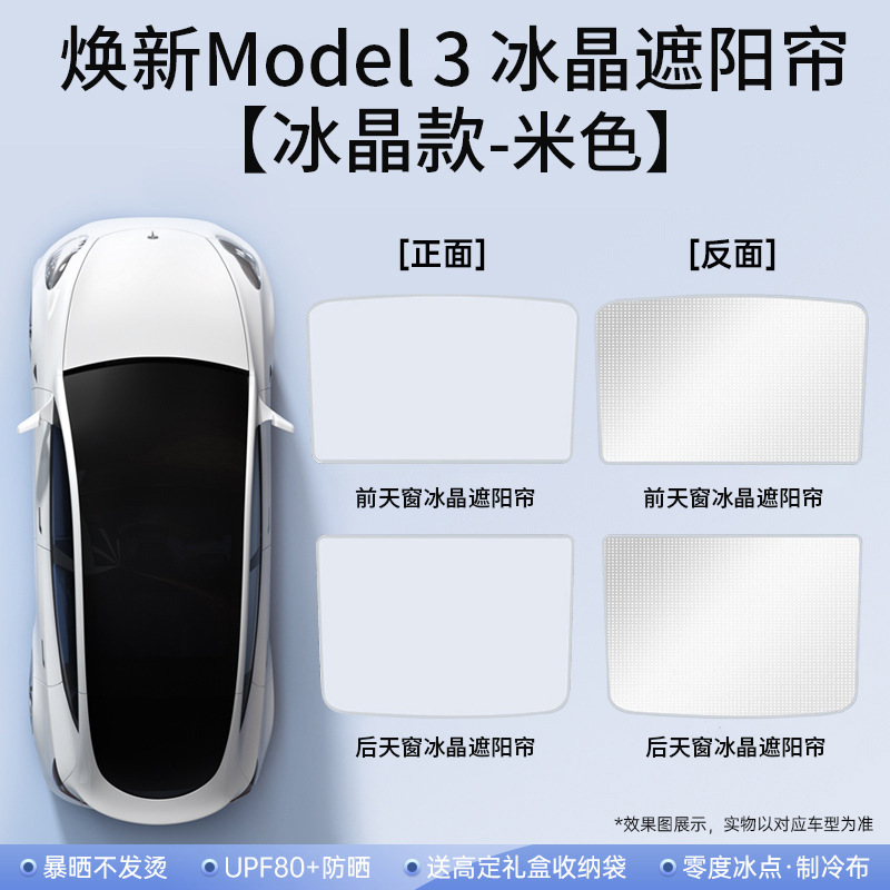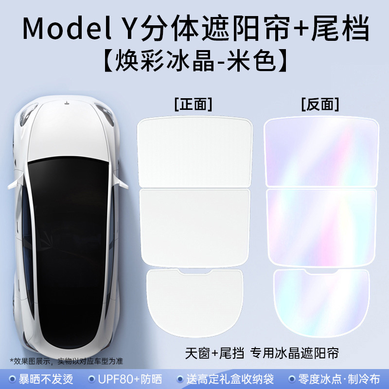 适用特斯拉焕新y冰晶遮阳帘model3天窗分体遮阳伞车顶防晒伞批发