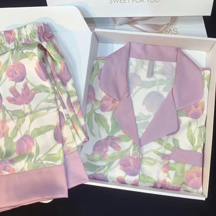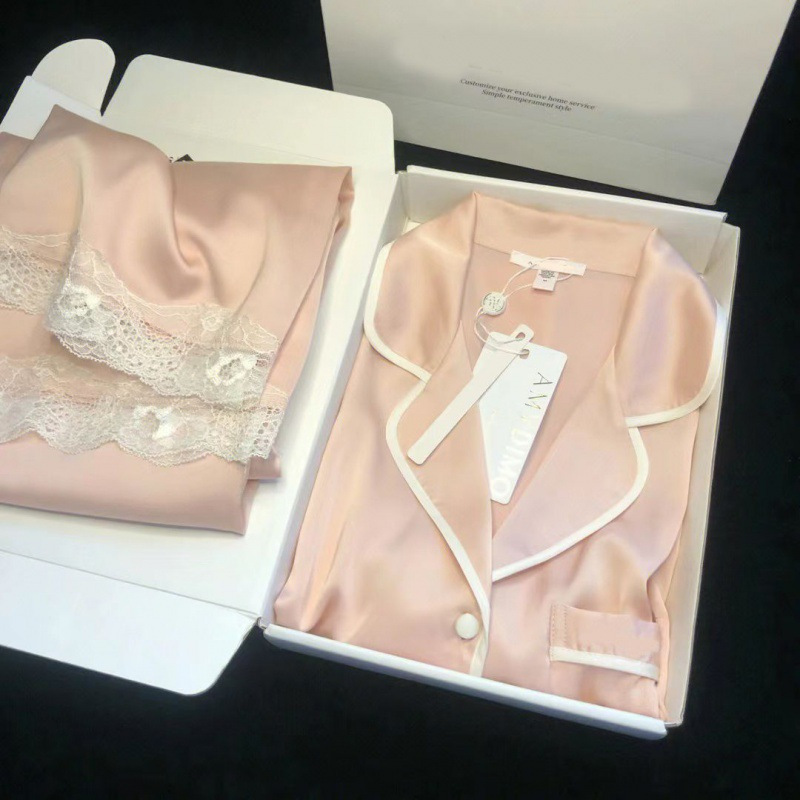 外贸抖音睡衣女冰丝春秋冰丝长袖薄款轻奢学生ins可外穿家居服套