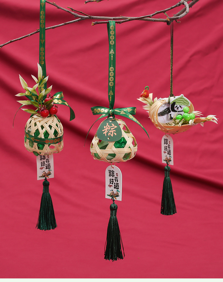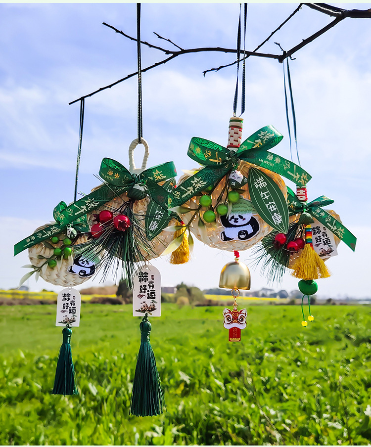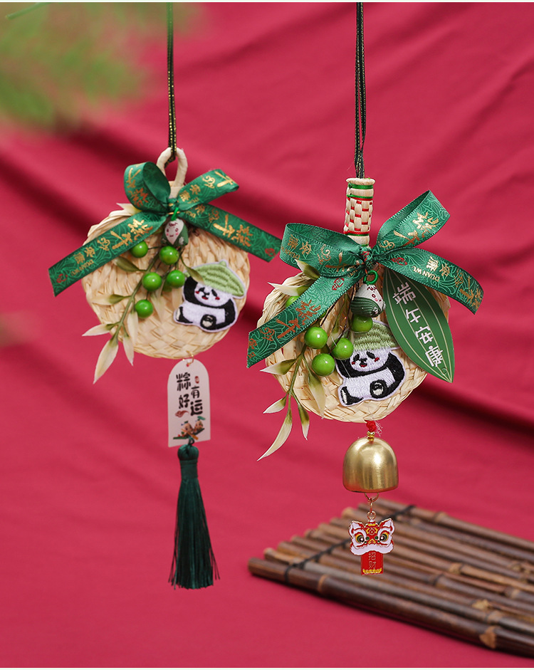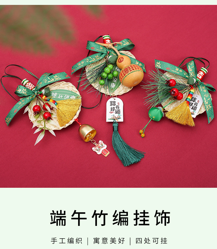 端午节装饰手工草编团扇挂件民族风插花葫芦熊猫民间工艺挂饰批发