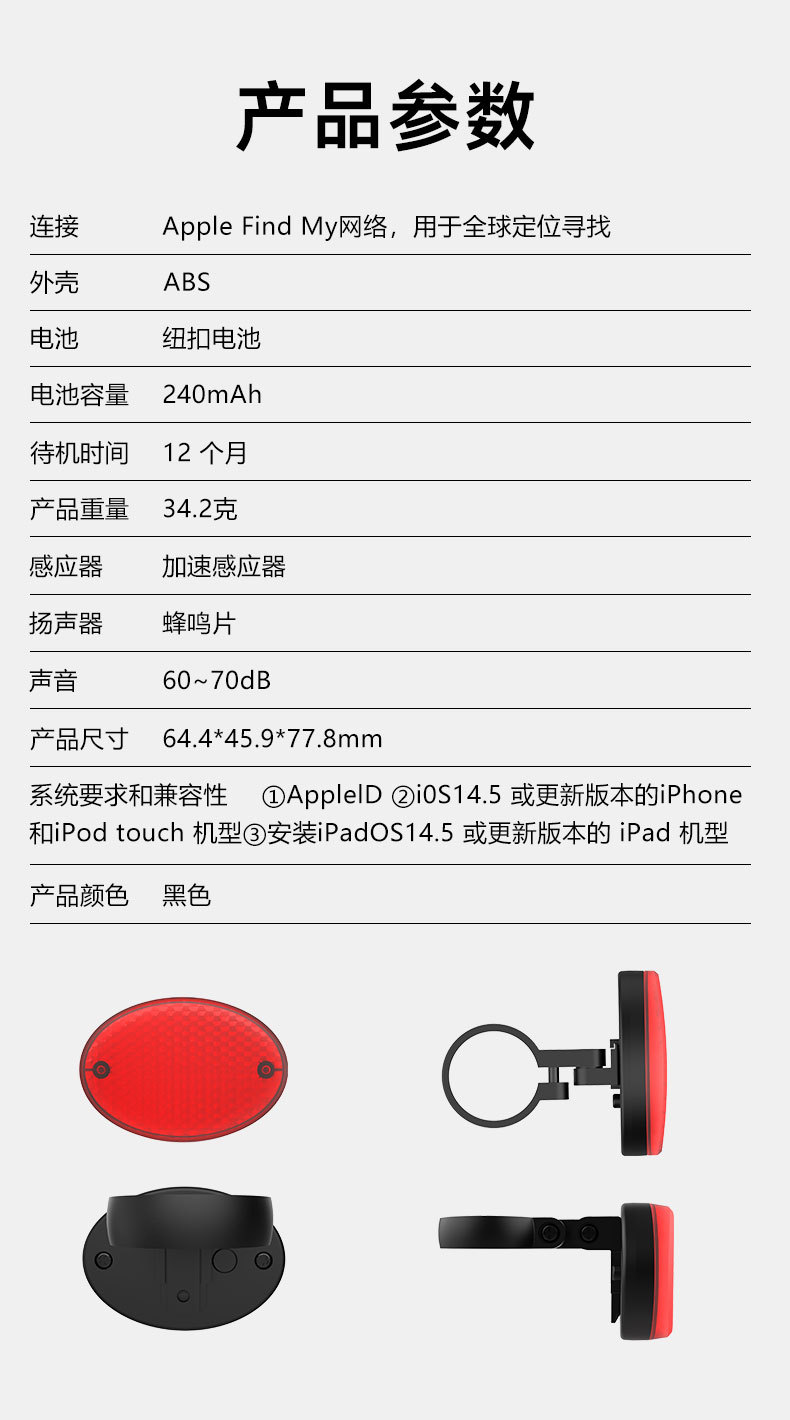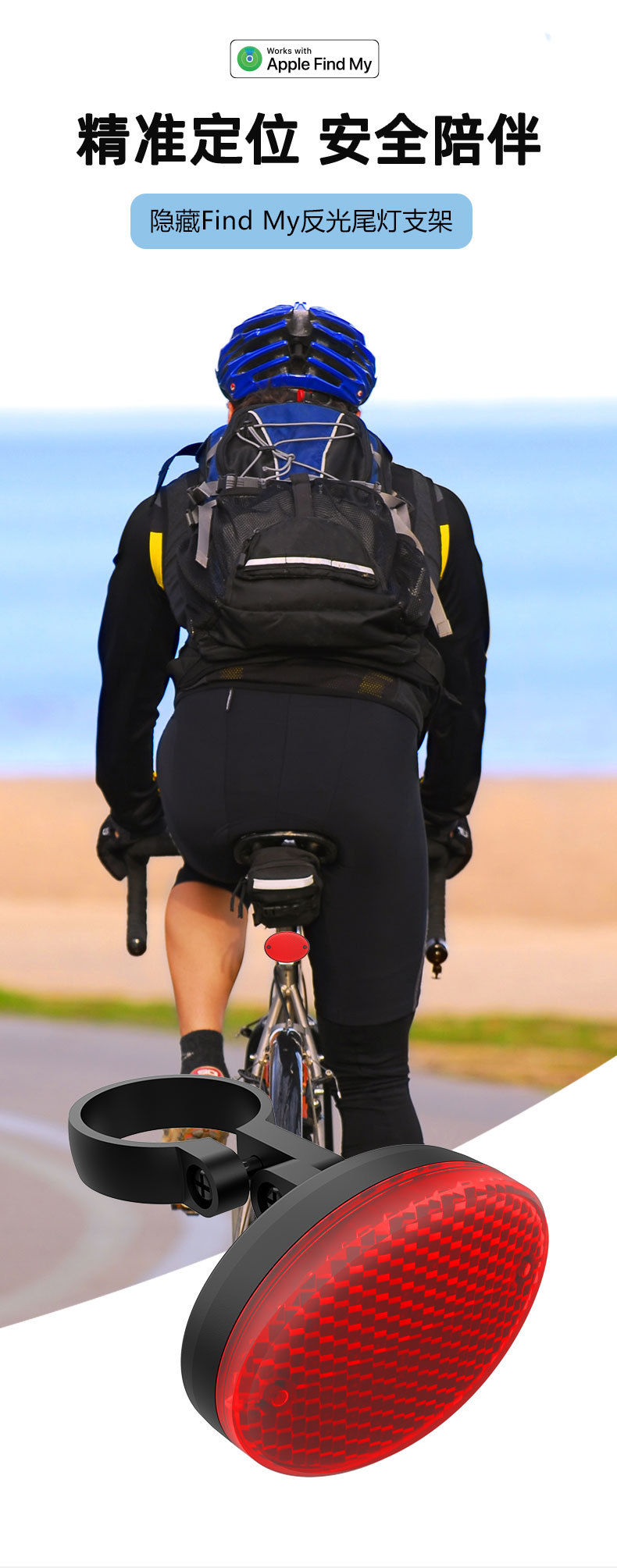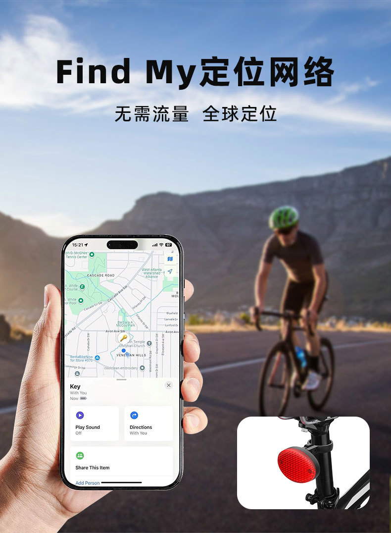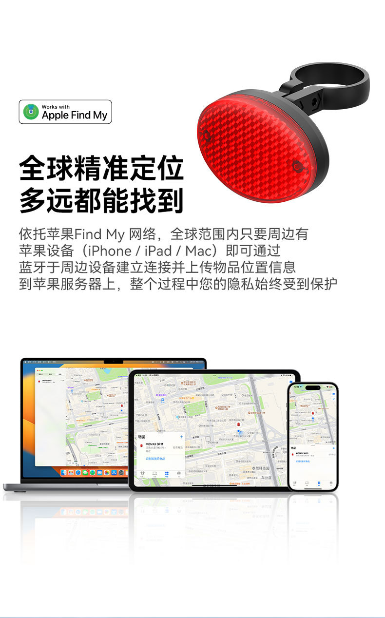 ios系统Find My 防丢器定位器车尾灯款自行车查找防丢长续航便携