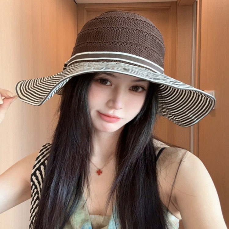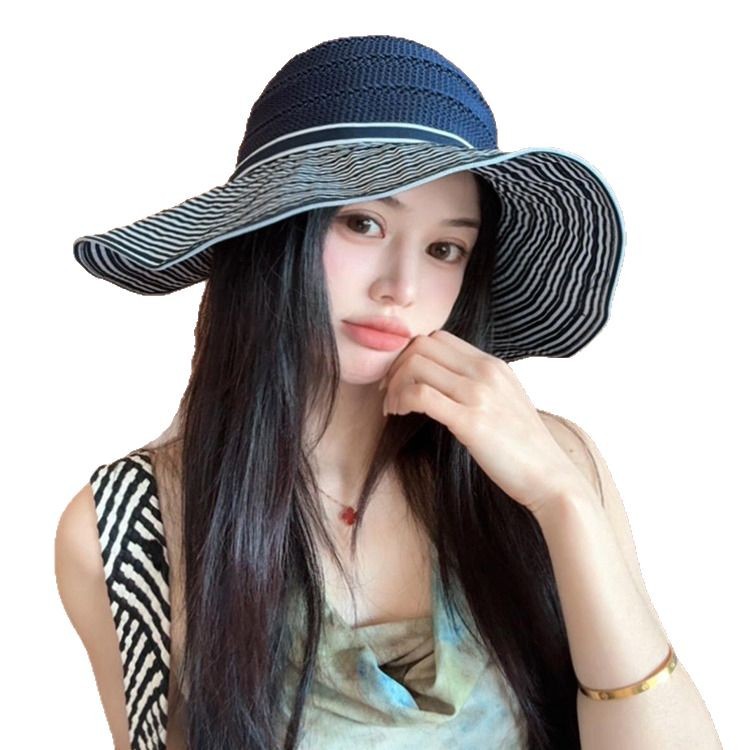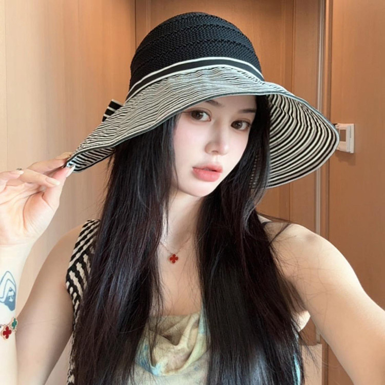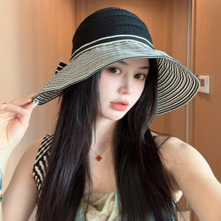 可扎马尾空顶渔夫帽女2025新款夏季可折叠透气太阳帽户外遮阳帽女