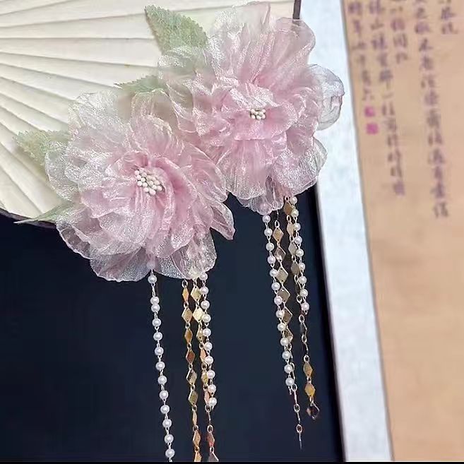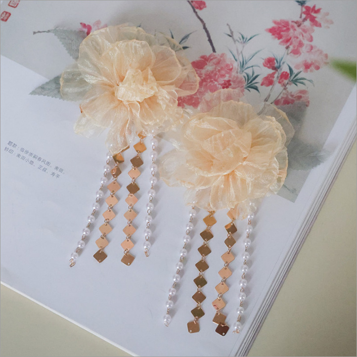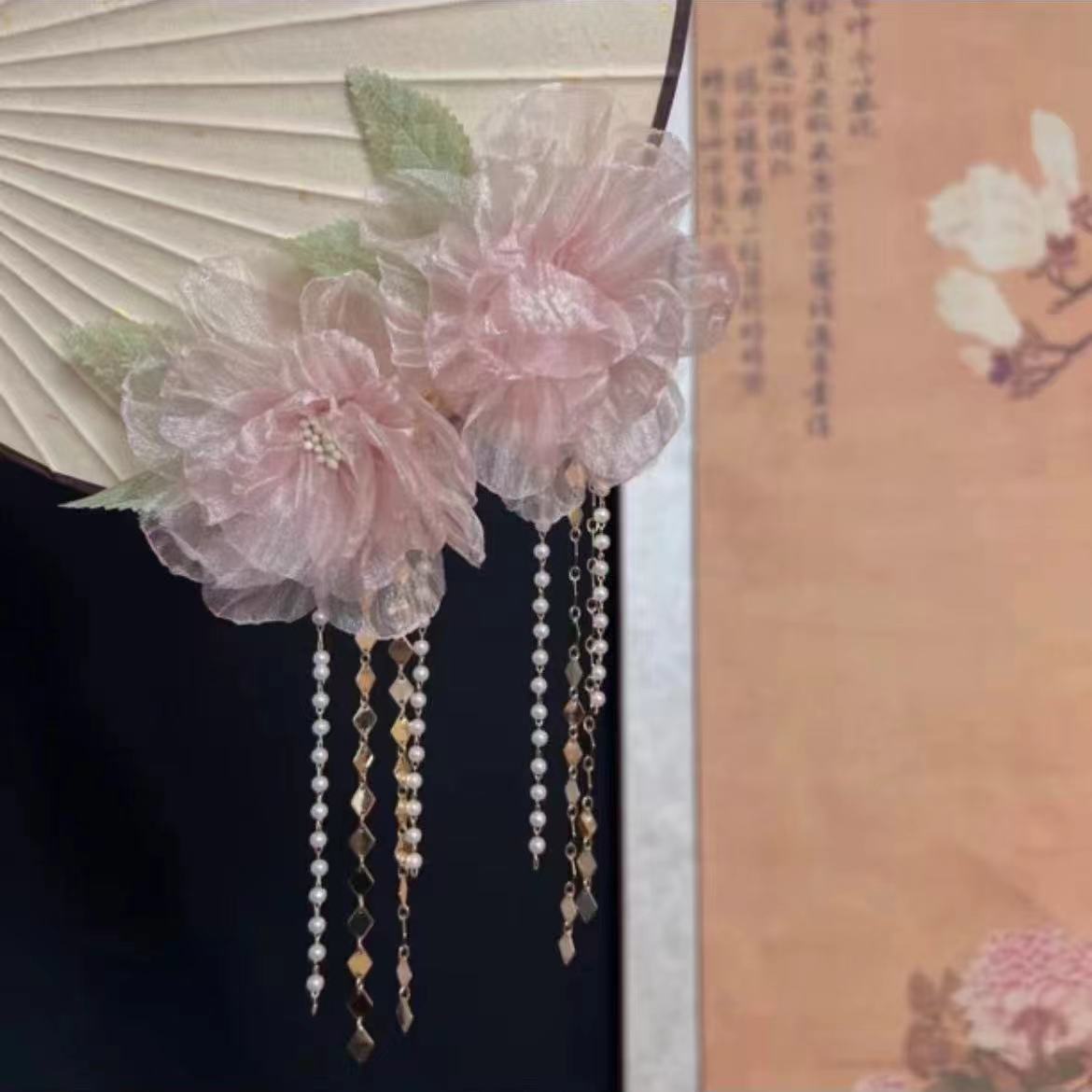 绢花头饰古风汉服仿真花长流苏步摇花朵发夹超仙对夹夹子古装配饰