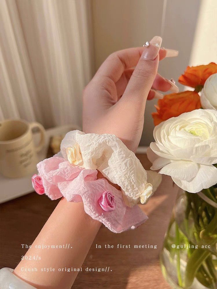 小清新夏季超仙甜美蕾丝花边大肠发圈地摊新款高颜值碎蝴蝶结发饰