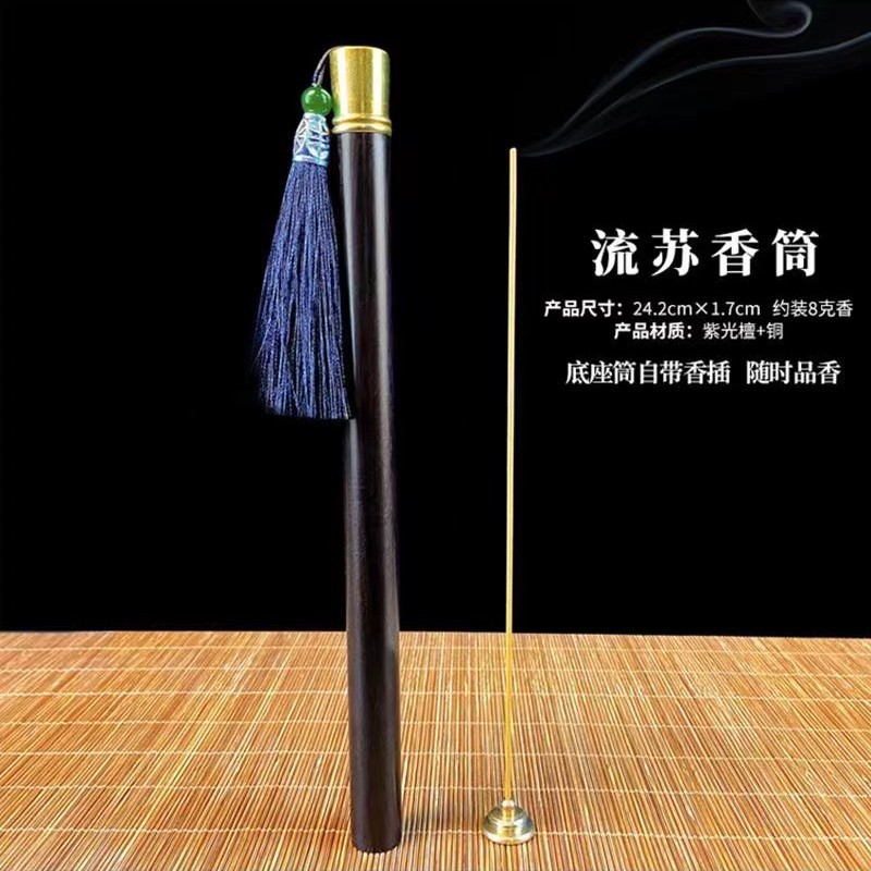 黑檀木铜件线香桶长款拔口木质线香管香道香炉新国风工艺品线香盒
