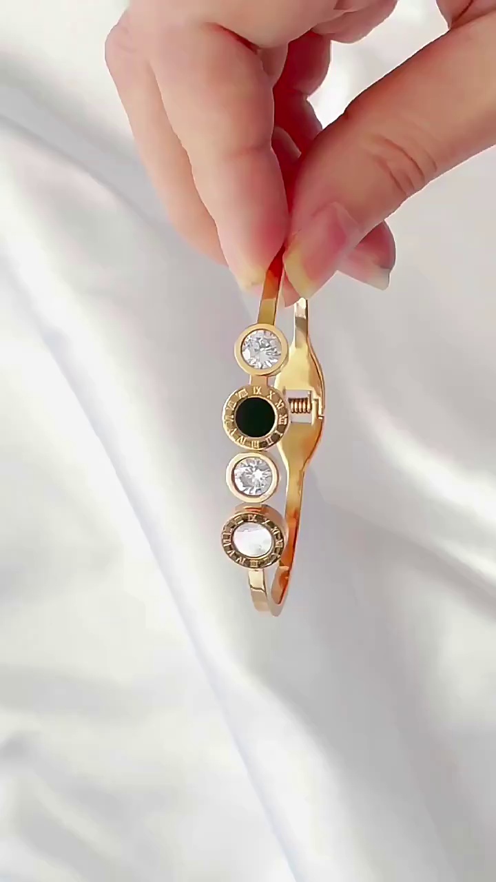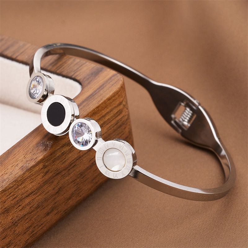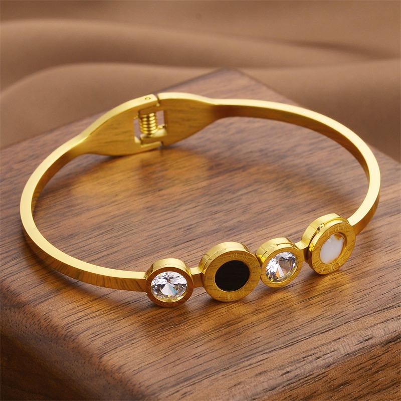 欧美跨境新款钛钢罗马镶钻手镯女不掉色嘻哈INS风简约真空电镀18K