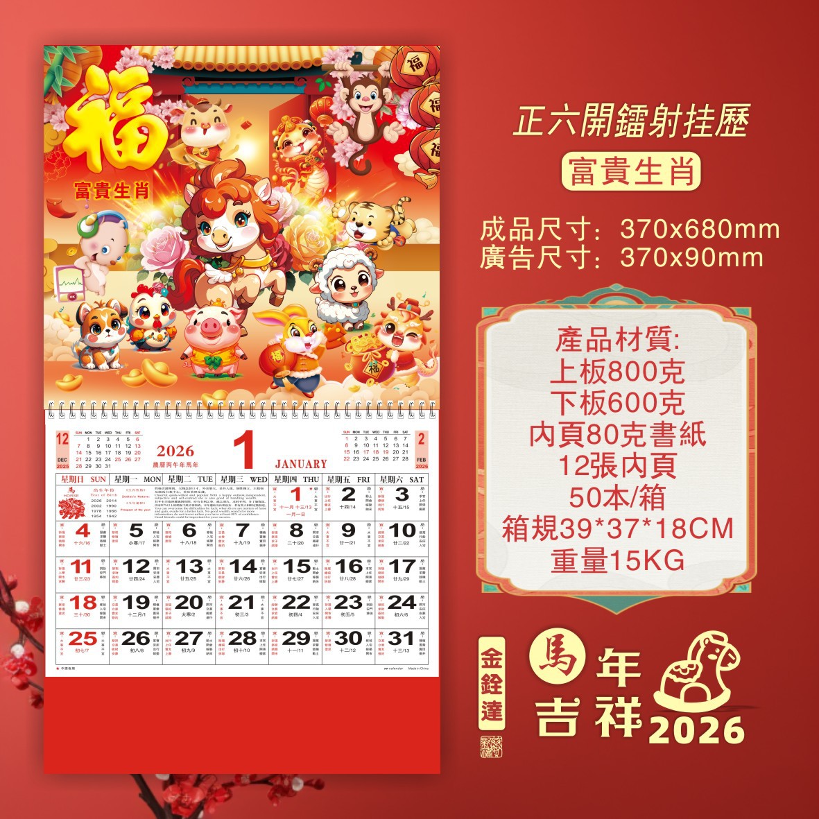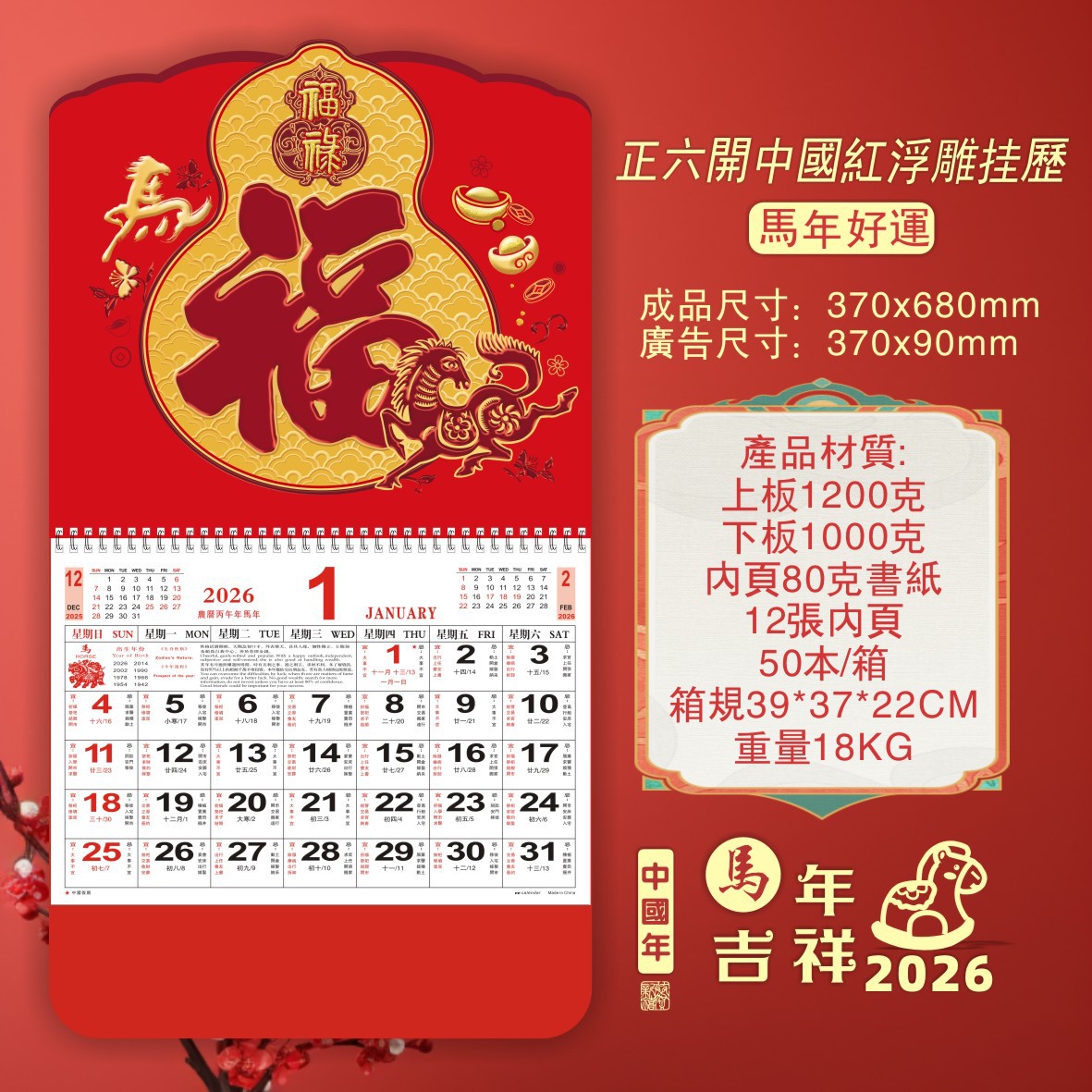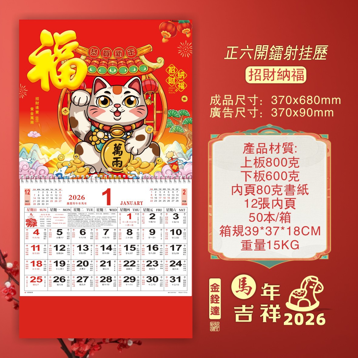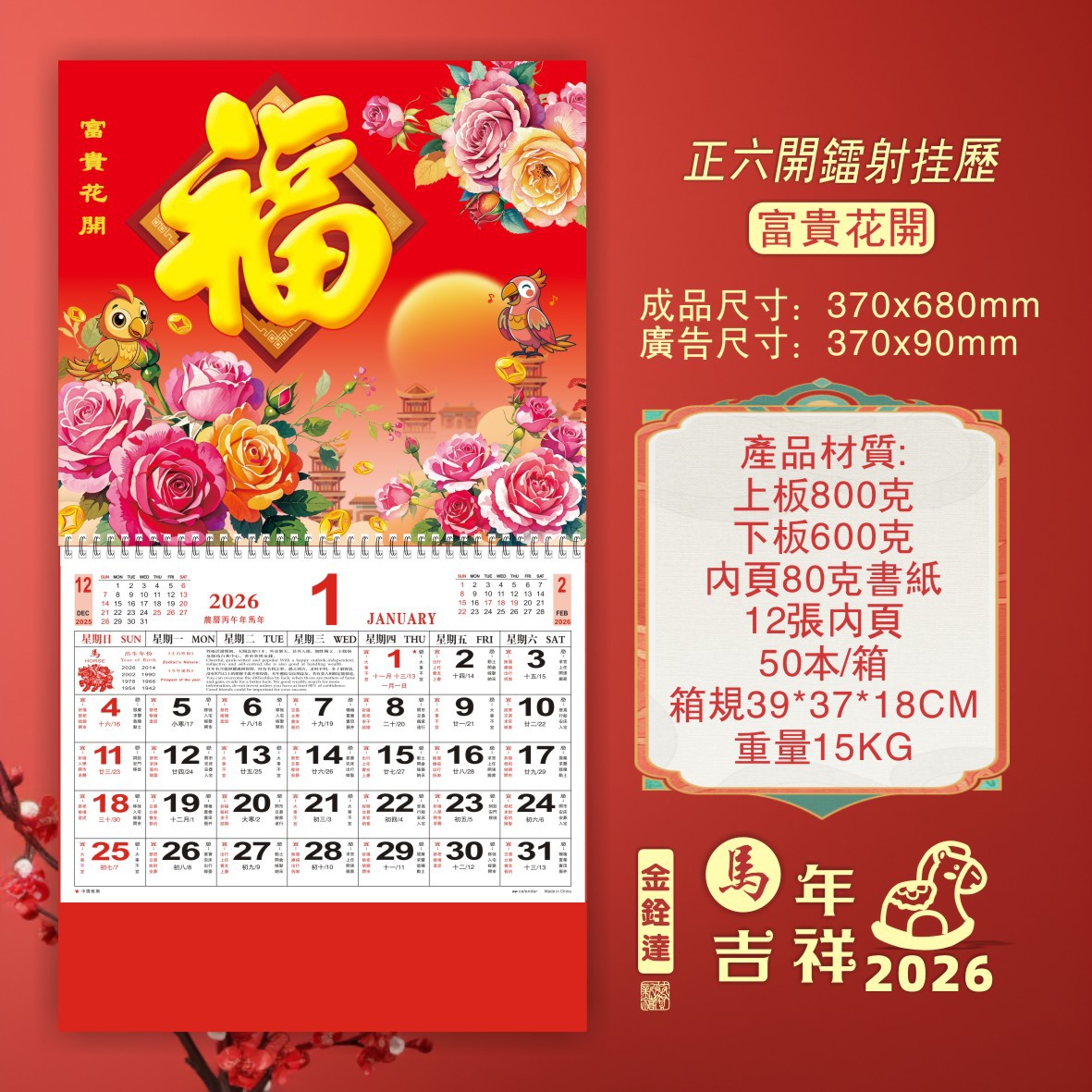 挂历2026马年新款创意英文日历国际美国香港假期挂墙日历跨境月历